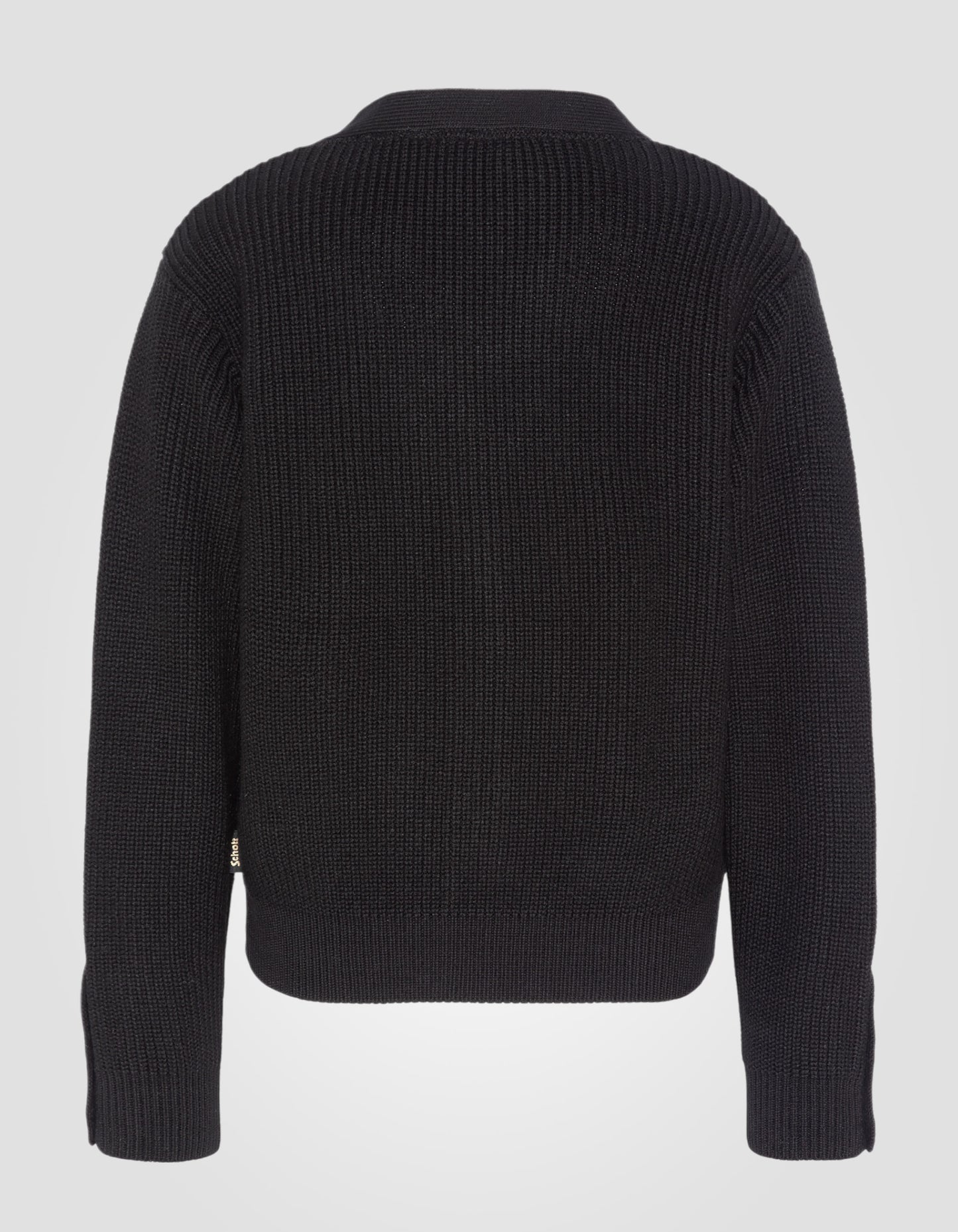 Cardigan court noir en maille côtelée, grande taille - NOIR