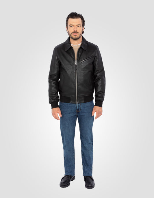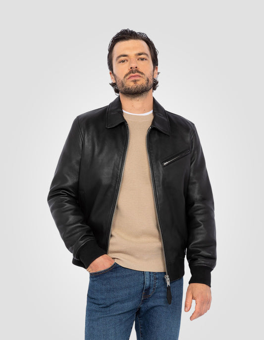 Blouson casual noir, cuir d'agneau
