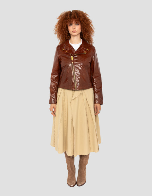 Depuis près d’un siècle, nous façonnons des vestes cuir femme à la fois robustes, élégantes et ancrées dans une histoire forte. Avec son allure affirmée, le blouson perfecto reste un incontournable du vestiaire féminin.