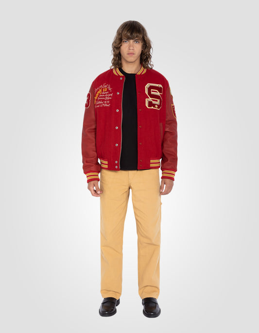 Blouson teddy bicolore vert et blanc, cuir d'agneau