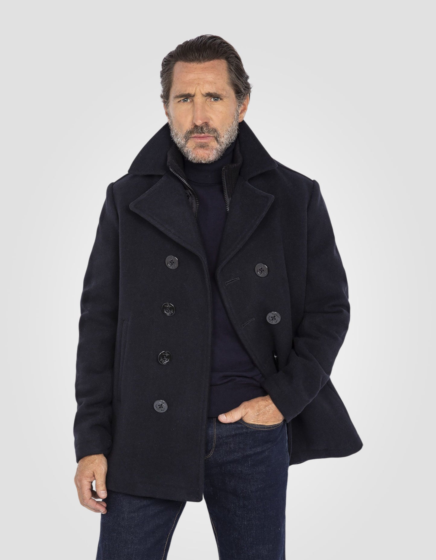 Dark Navy Birne in Wolle gemischt mit abnehmbarem Plastron - DUNKLE MARINE