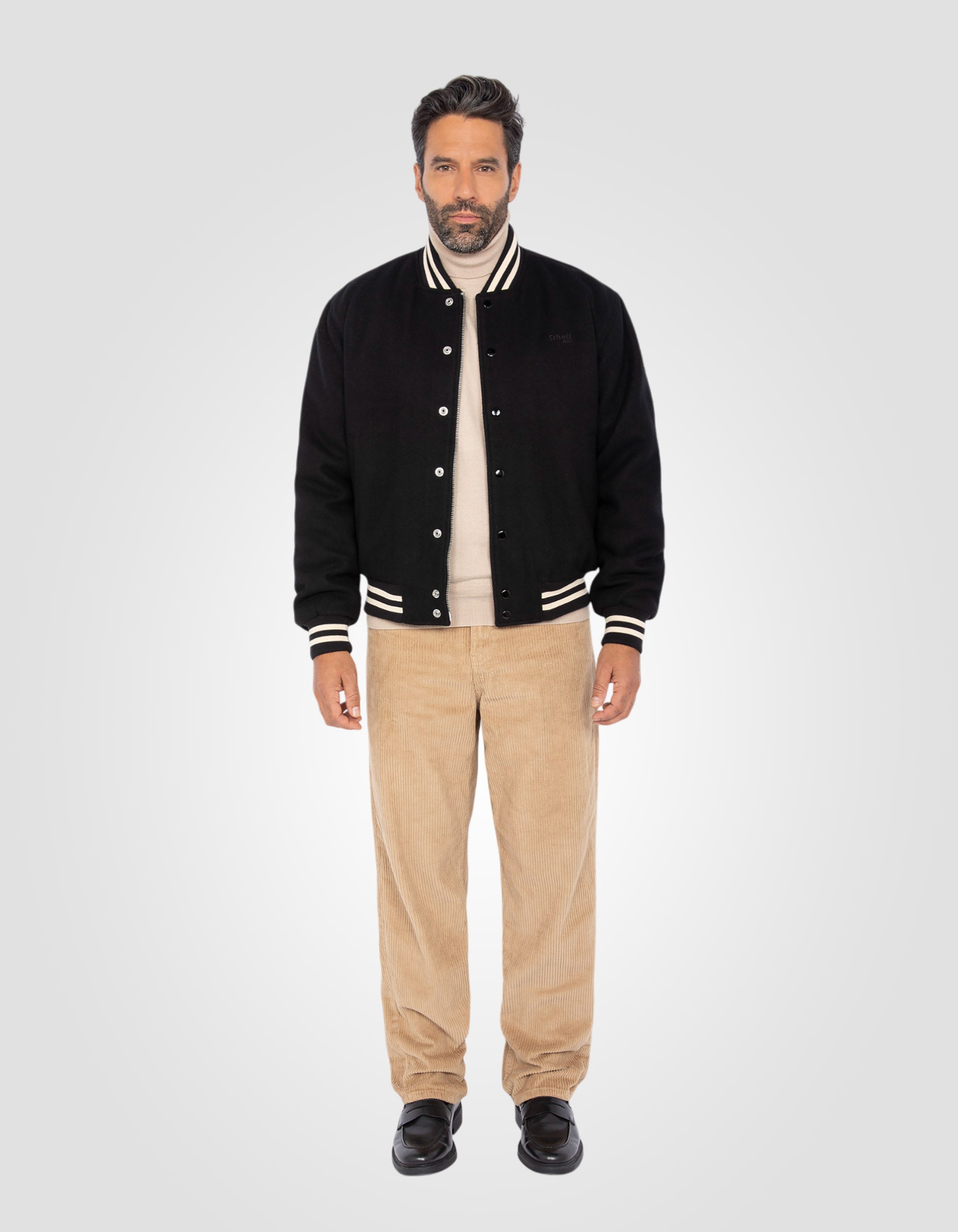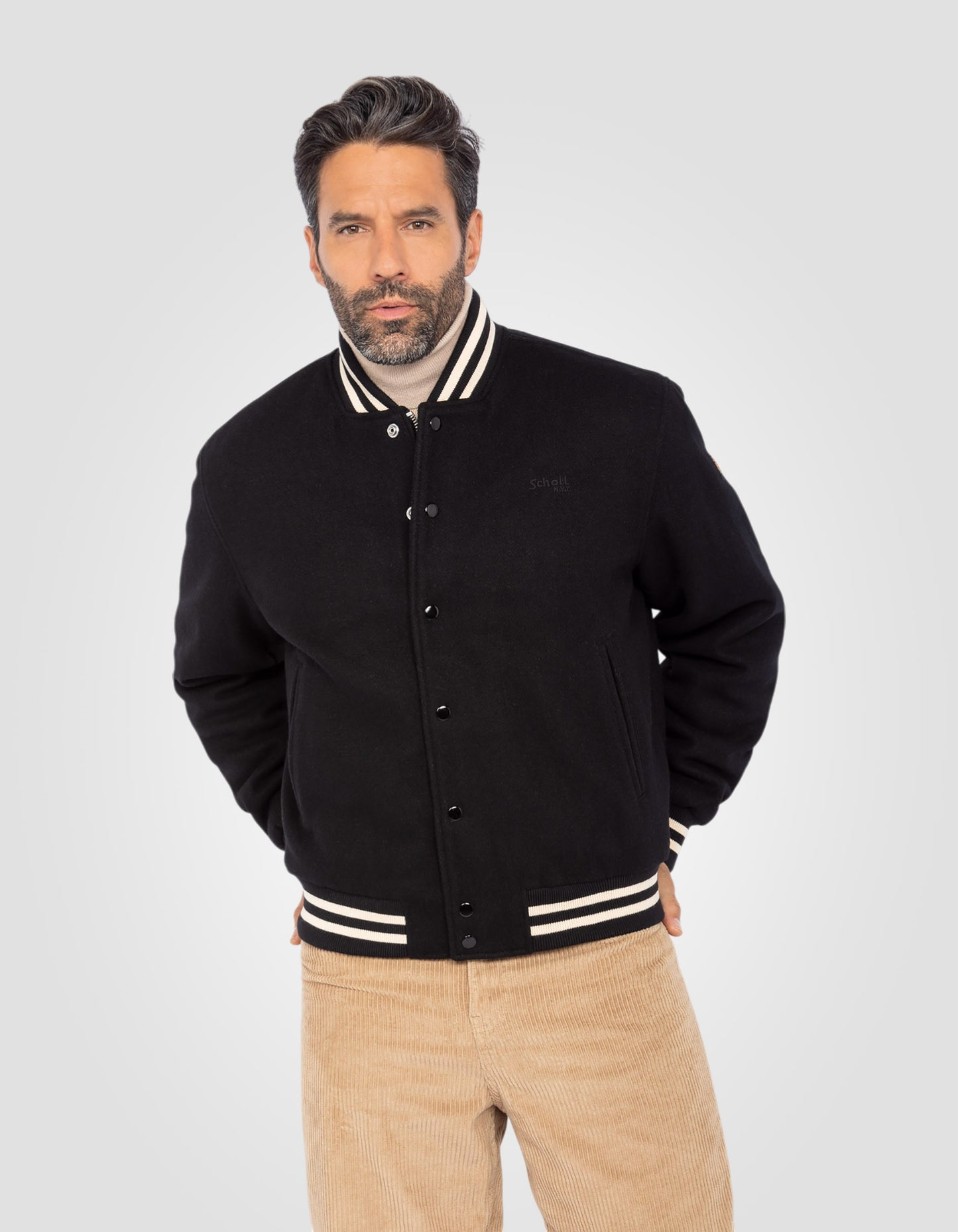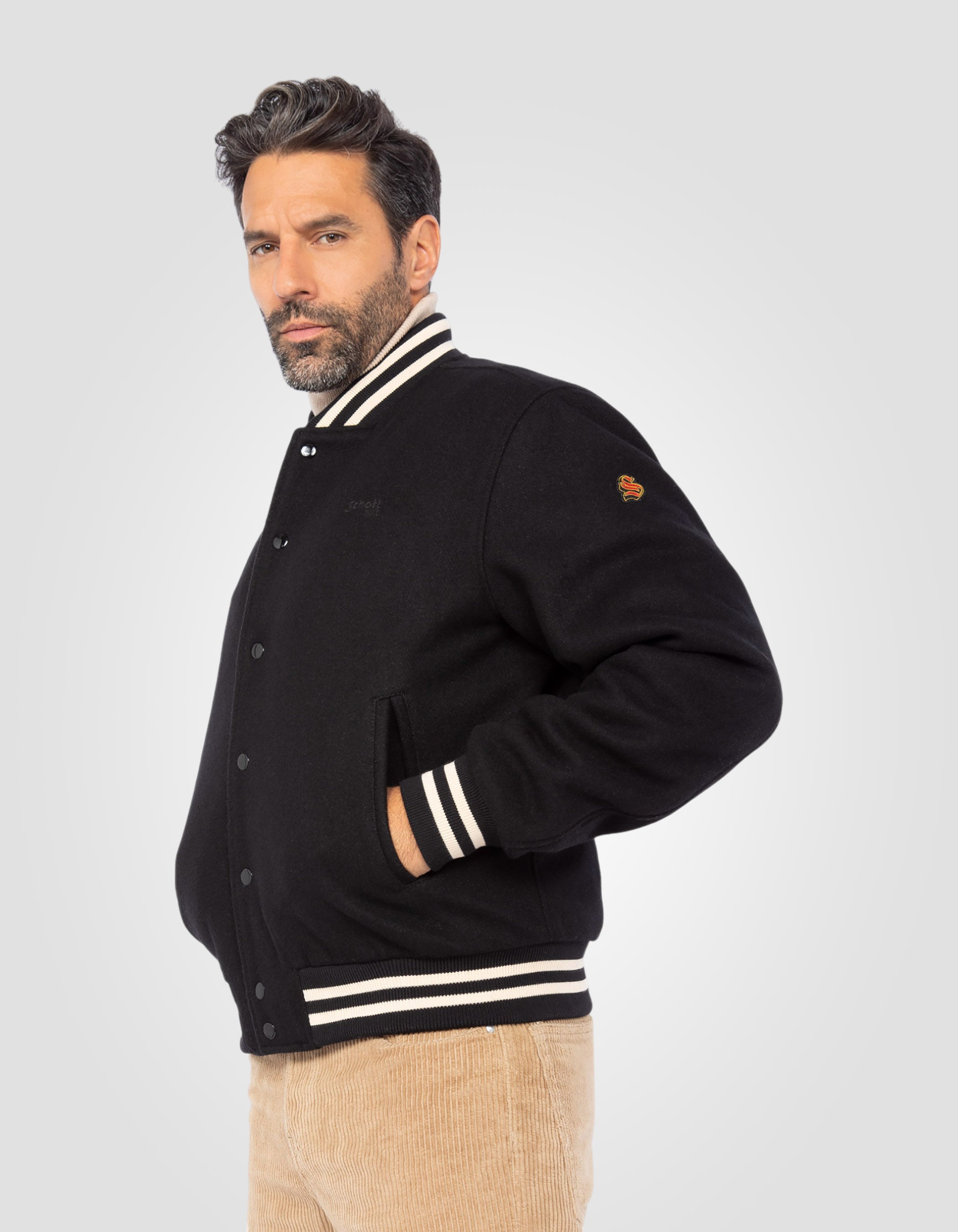 Entscheiden Sie sich für diese Uni -Jacke, die die Codes der amerikanischen Garderobe einnimmt.
