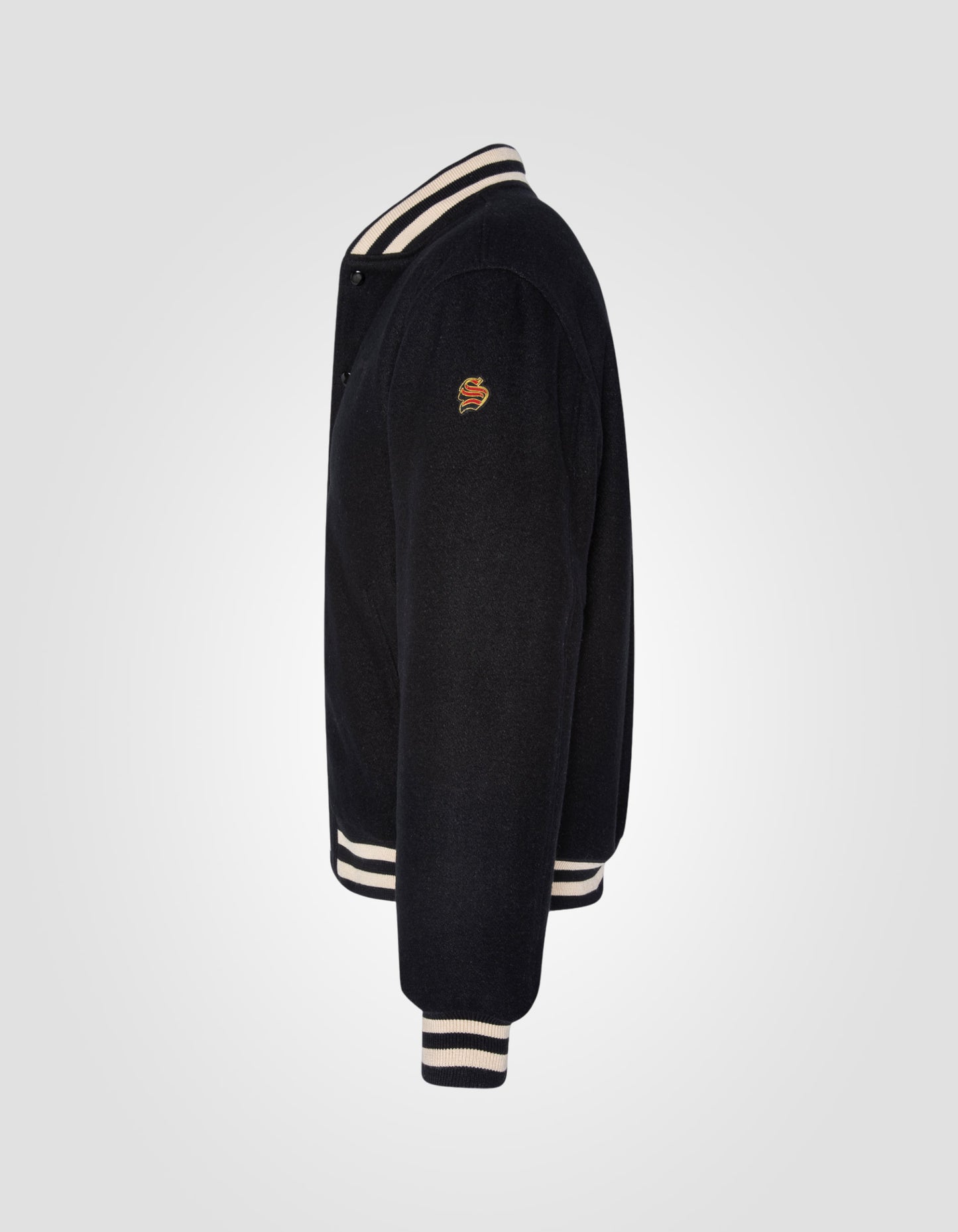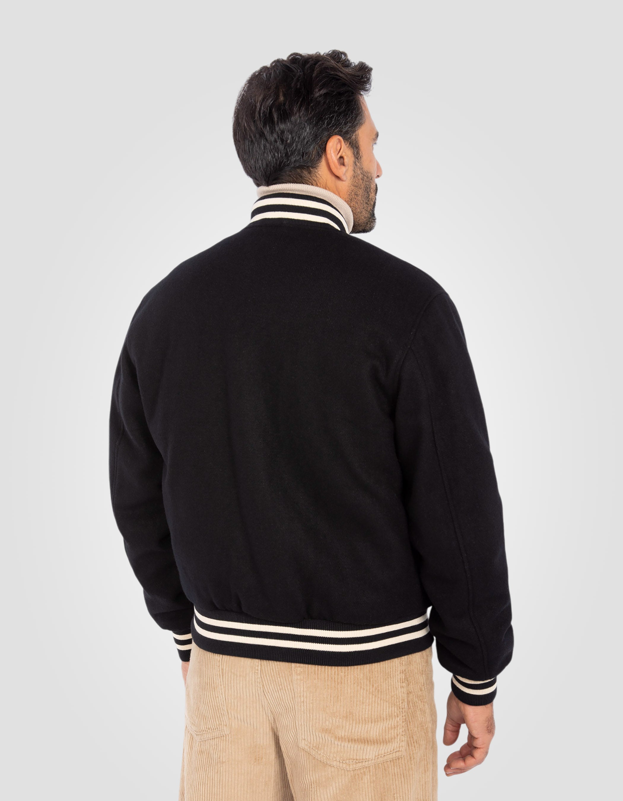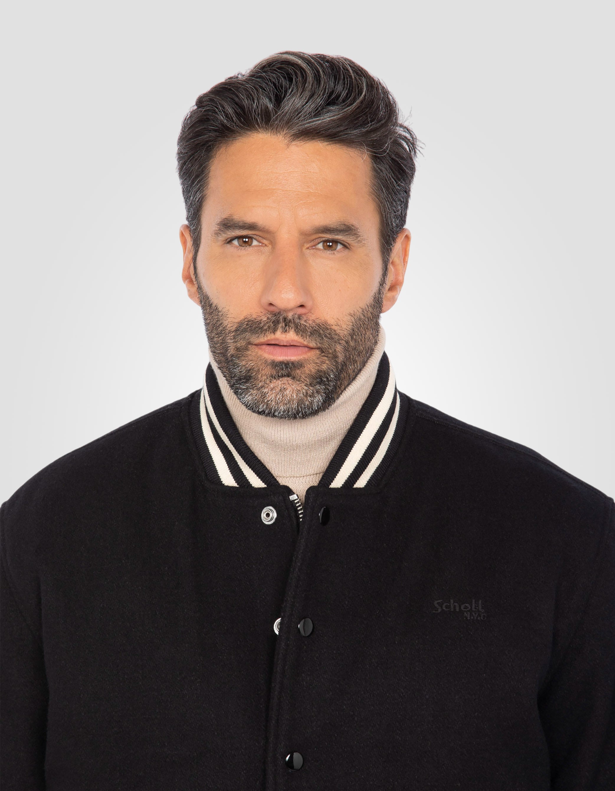 Entscheiden Sie sich für diese Uni -Jacke, die die Codes der amerikanischen Garderobe einnimmt.
