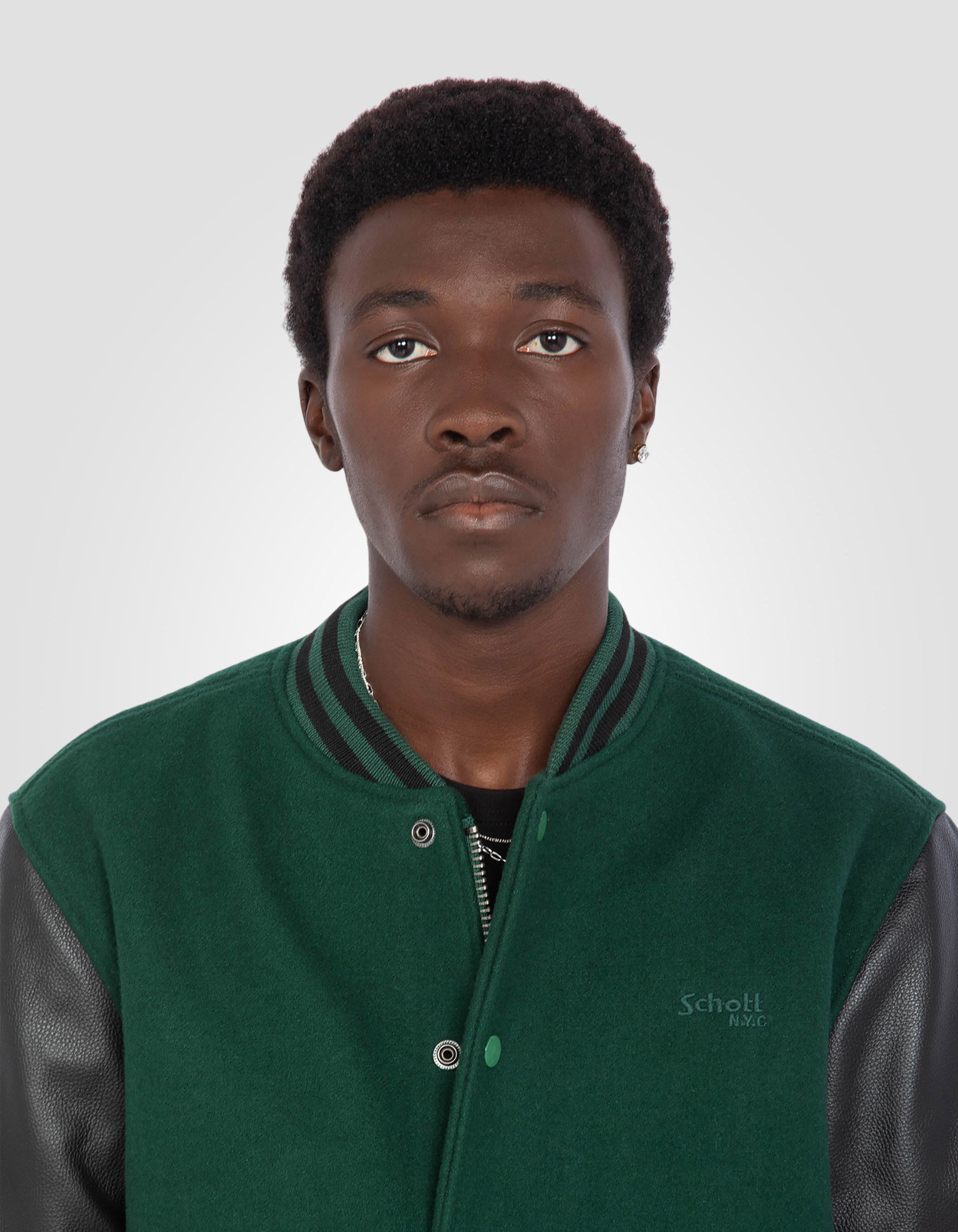 Wesentlich von Schott NYC® Cloakroomentscheiden Sie sich dafür ikonische Teddy das nimmt die Codes von auf Amerikanische Uni -Jacke.