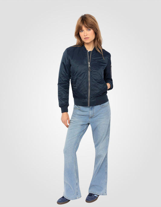 Each woman's bomber jacket that we design meets the requirements of solidity, practicality and elegance. We select sustainable materials such as robust nylon, sometimes quilted, sometimes smooth, to accompany your movements without constraint. No imitation leather or superfluous details: we choose the purity and functionality, while respecting our quality commitment.