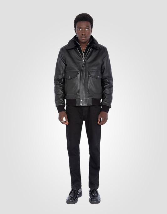 Black A-2 pilot jacket, goat leather