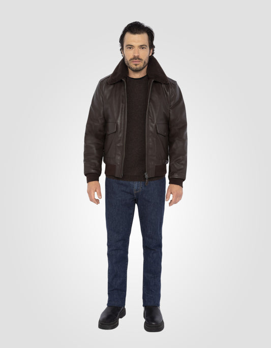 Brown pilot jacket, lamb leather