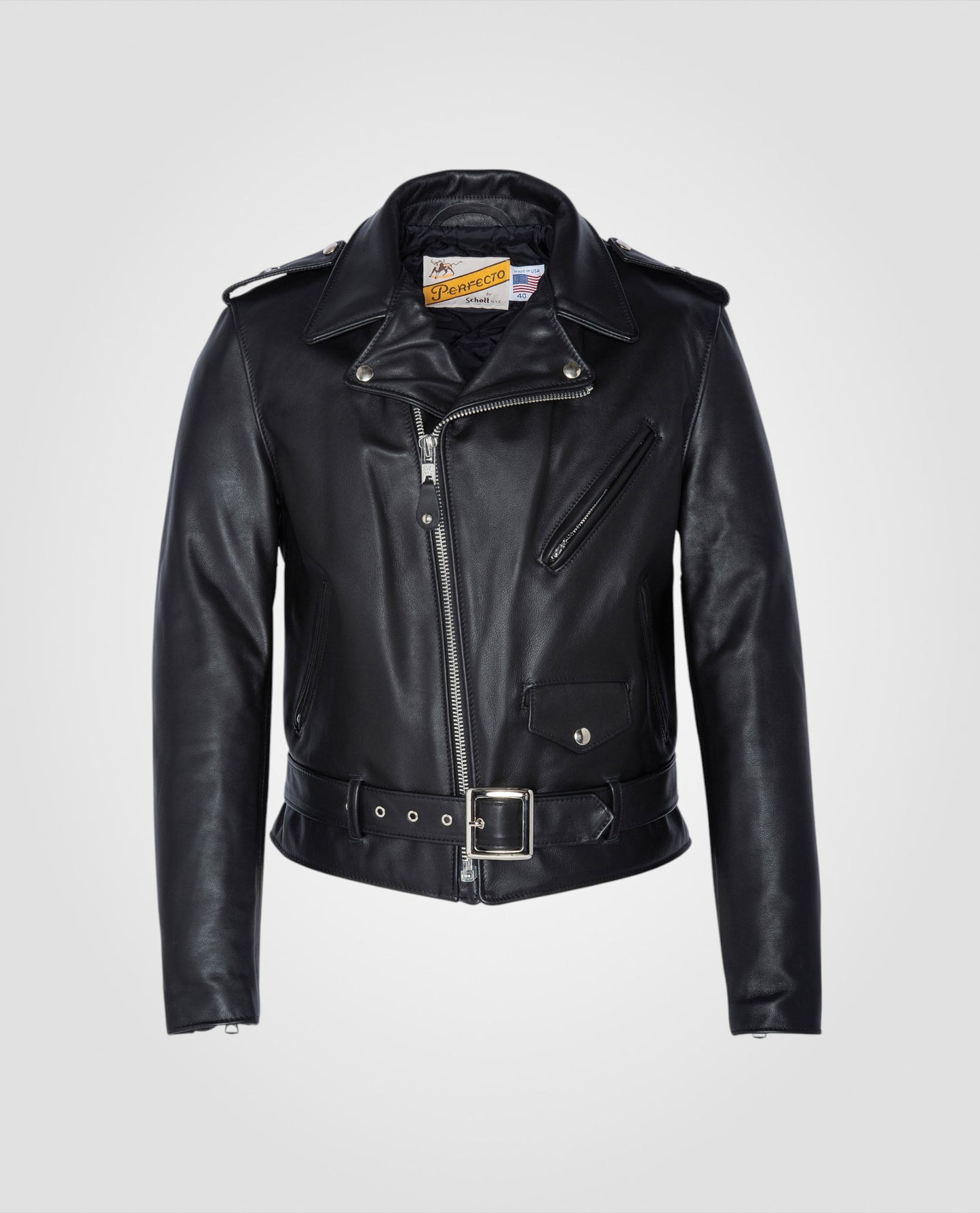 Highly resistant, the leather composing this Perfecto® jacket made in U.S.A will gain character with time.
