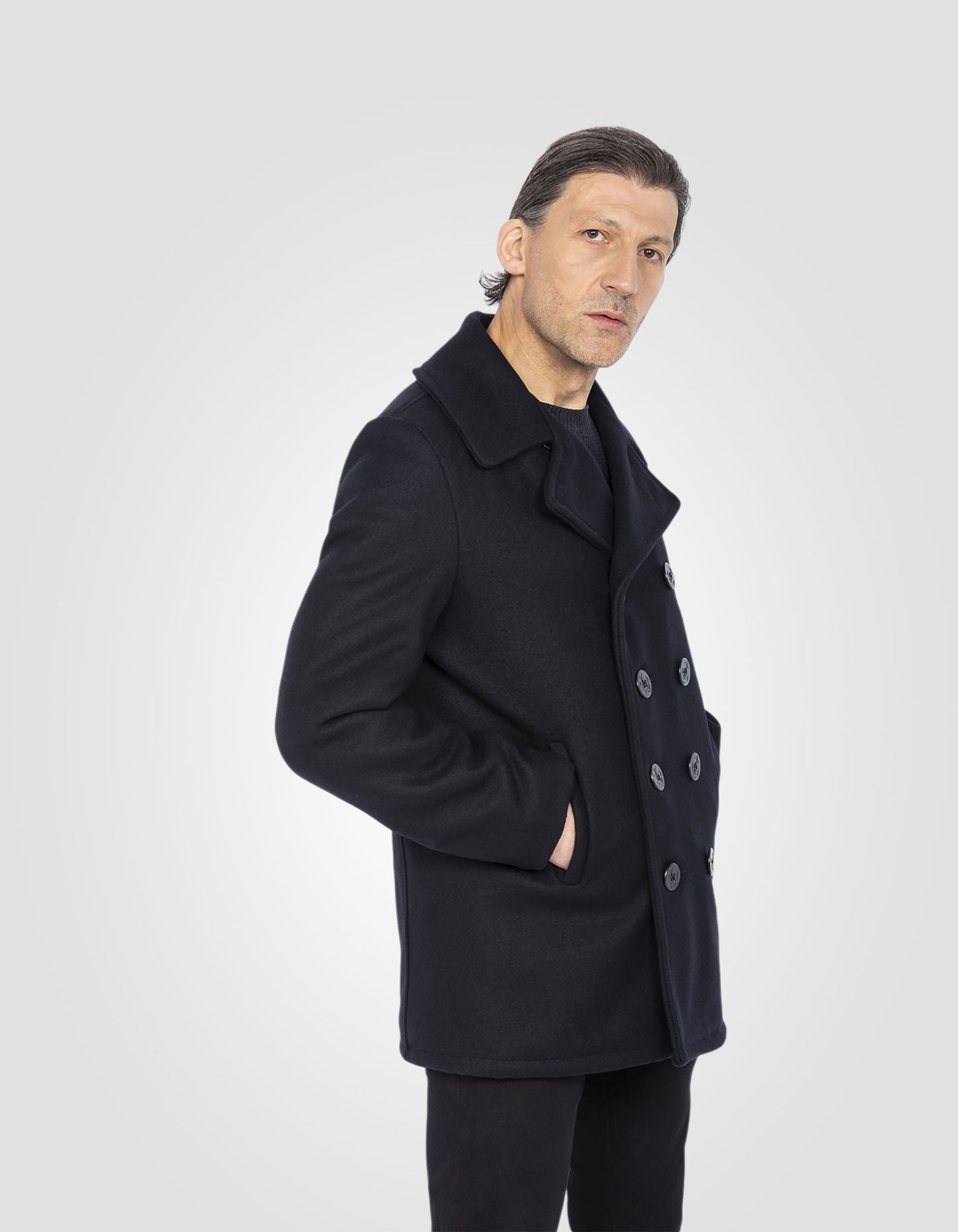 Made in the U.S.A. from melton wool, this iconic jacket is the classic version of the U.S. Navy's peacoat.