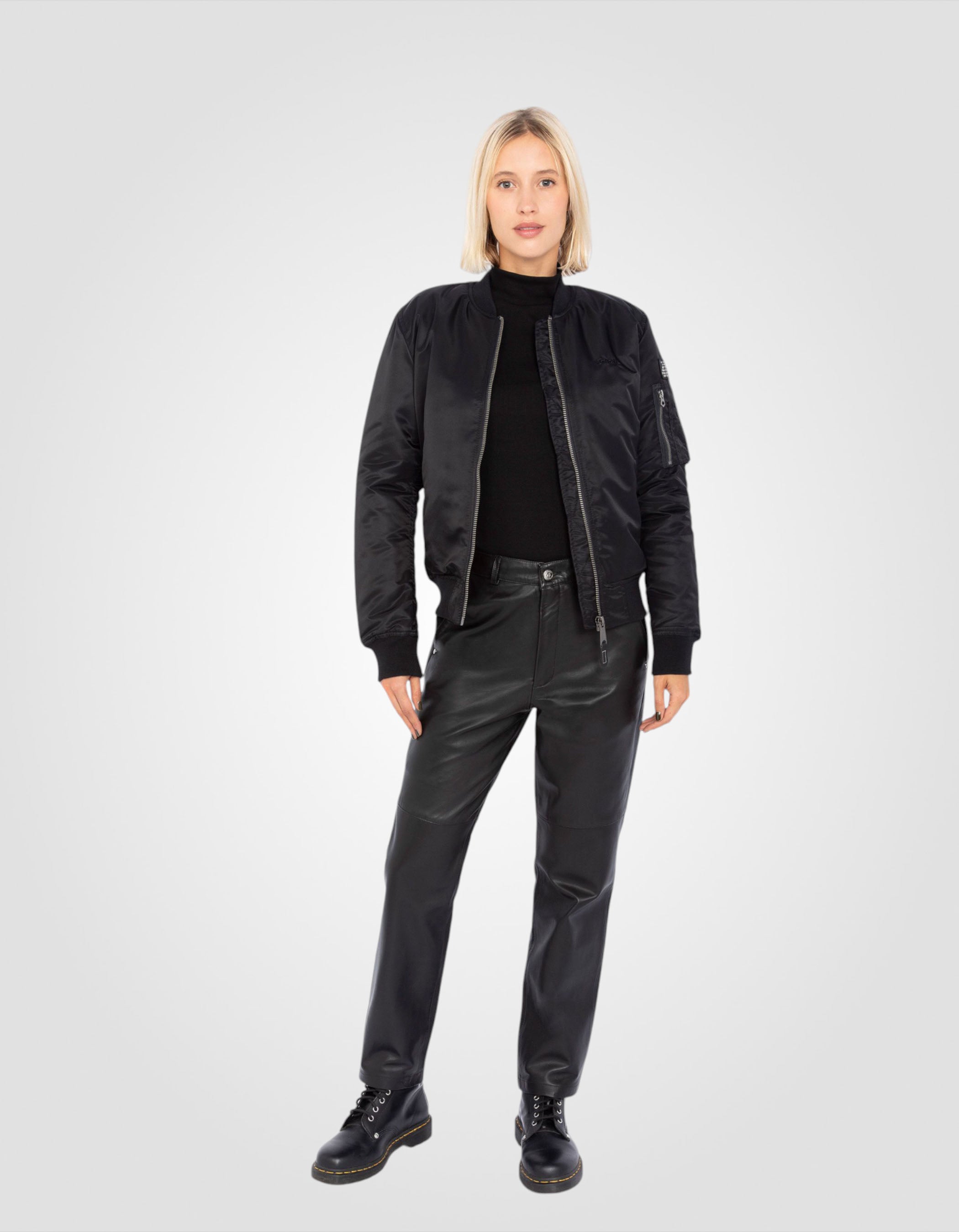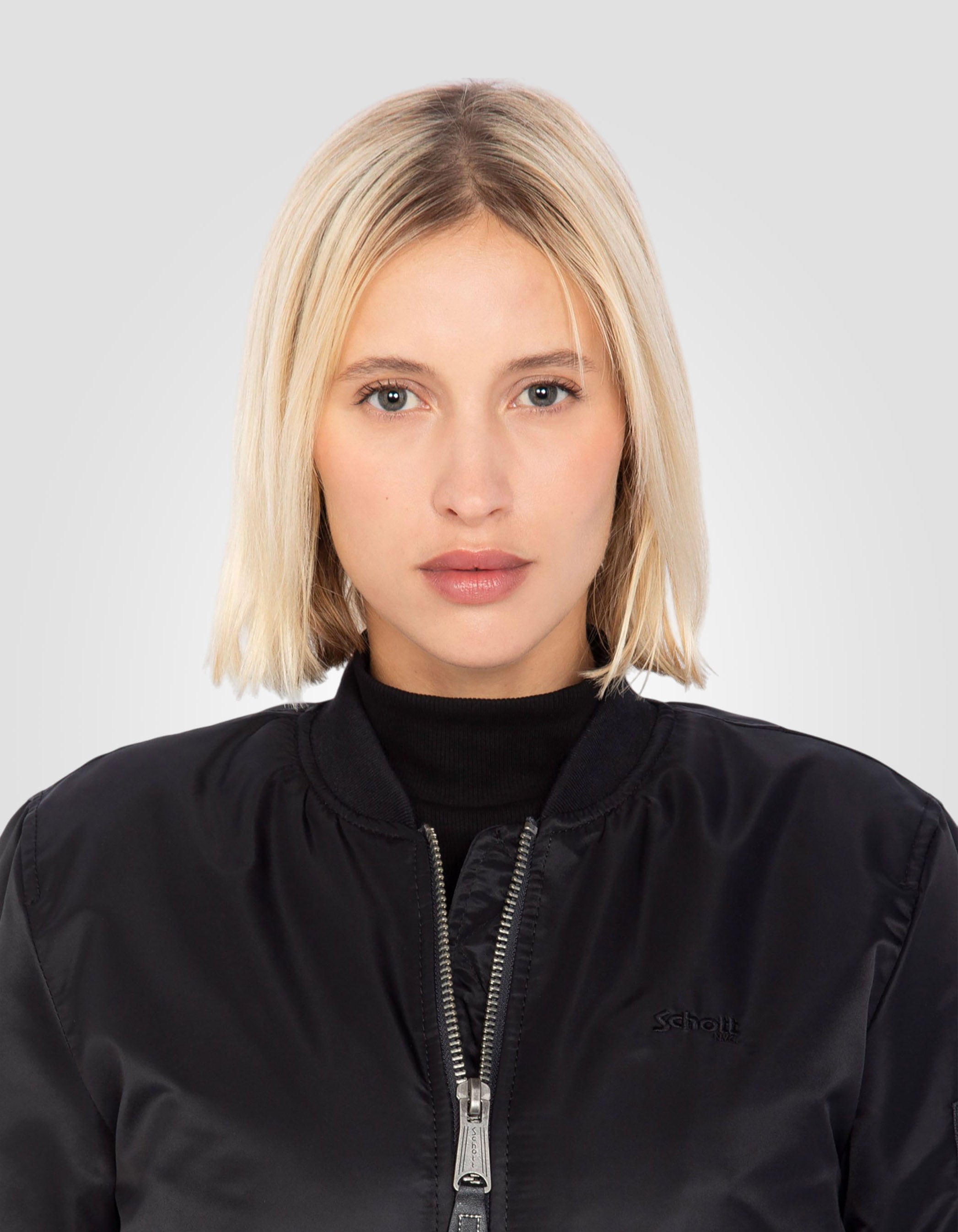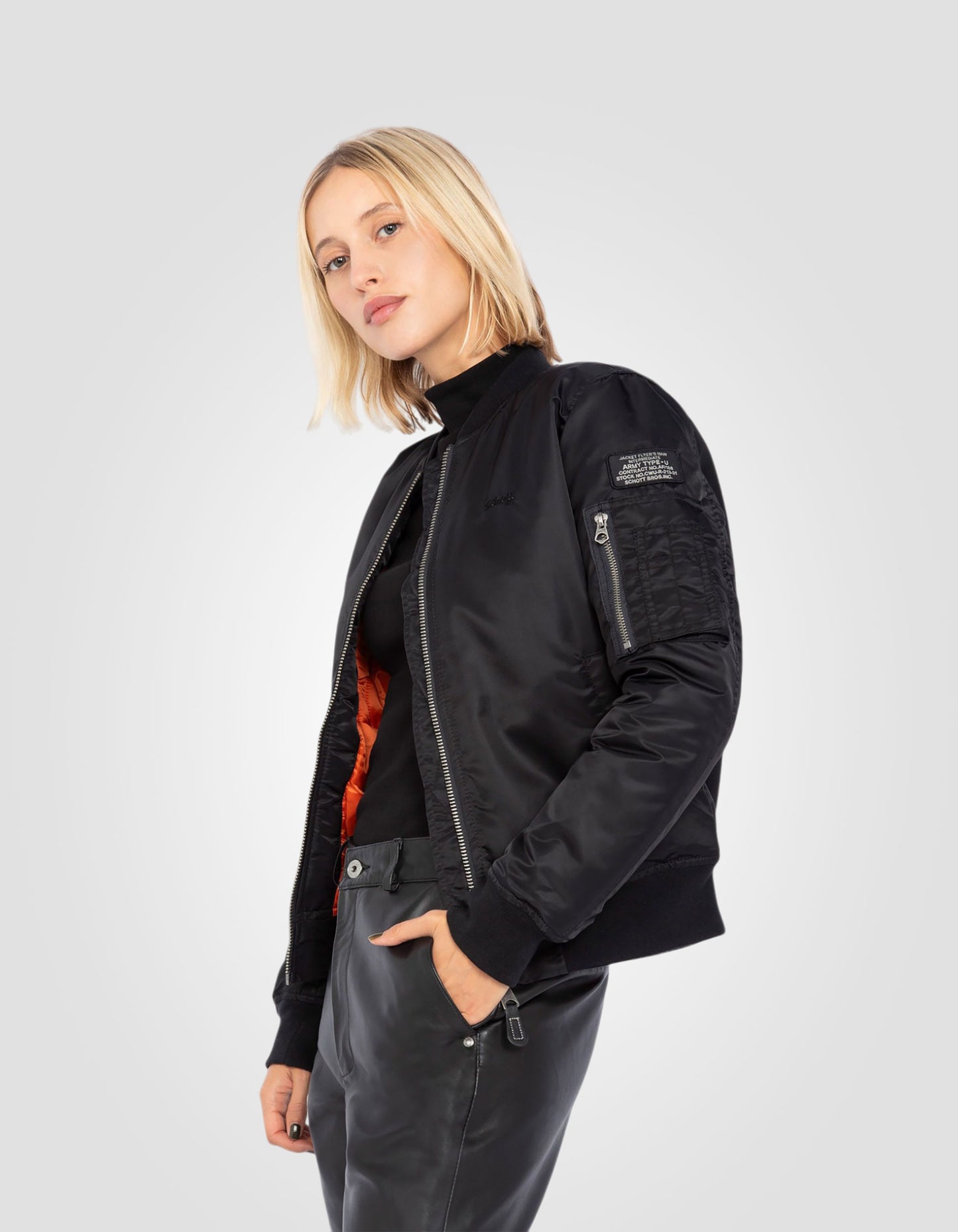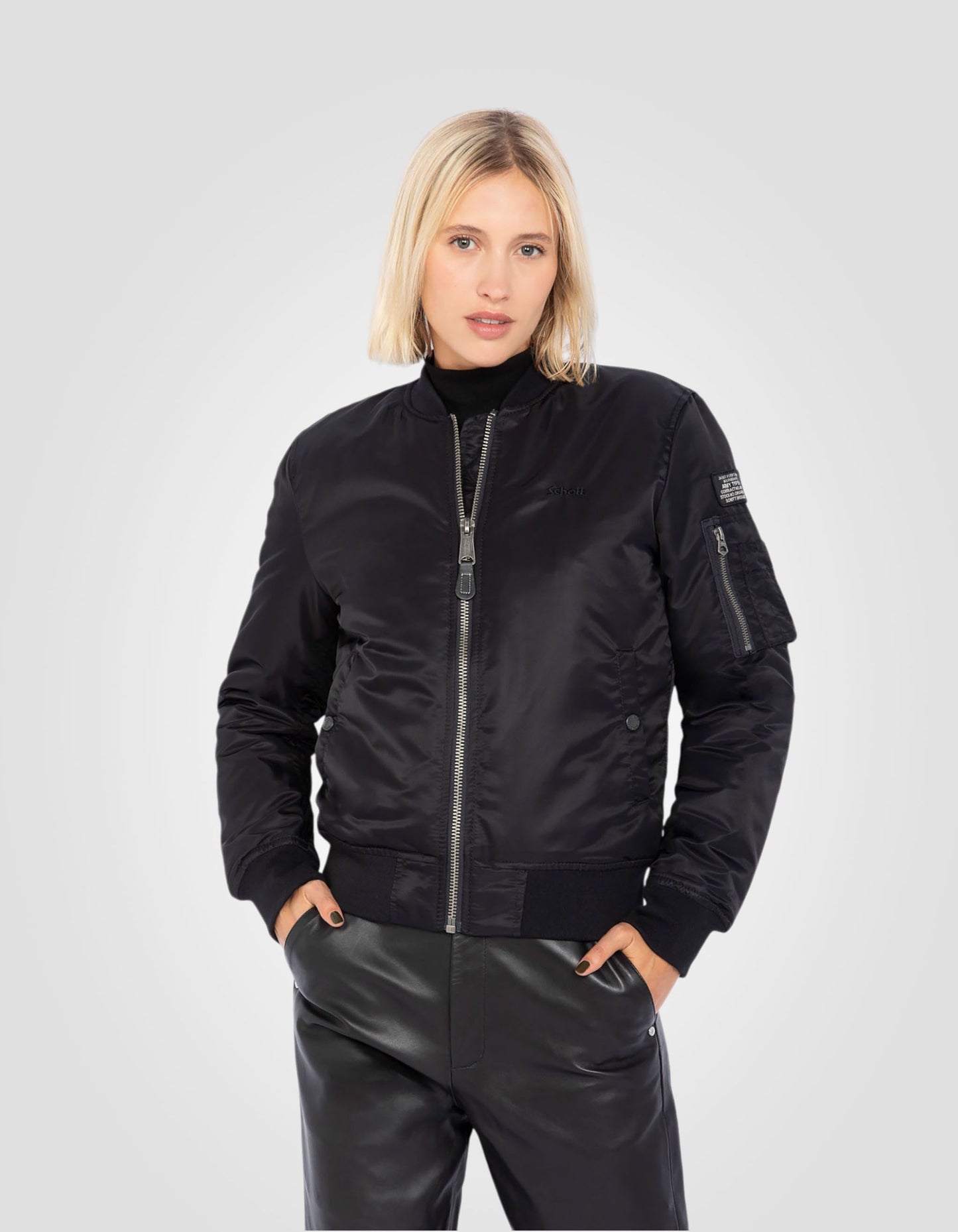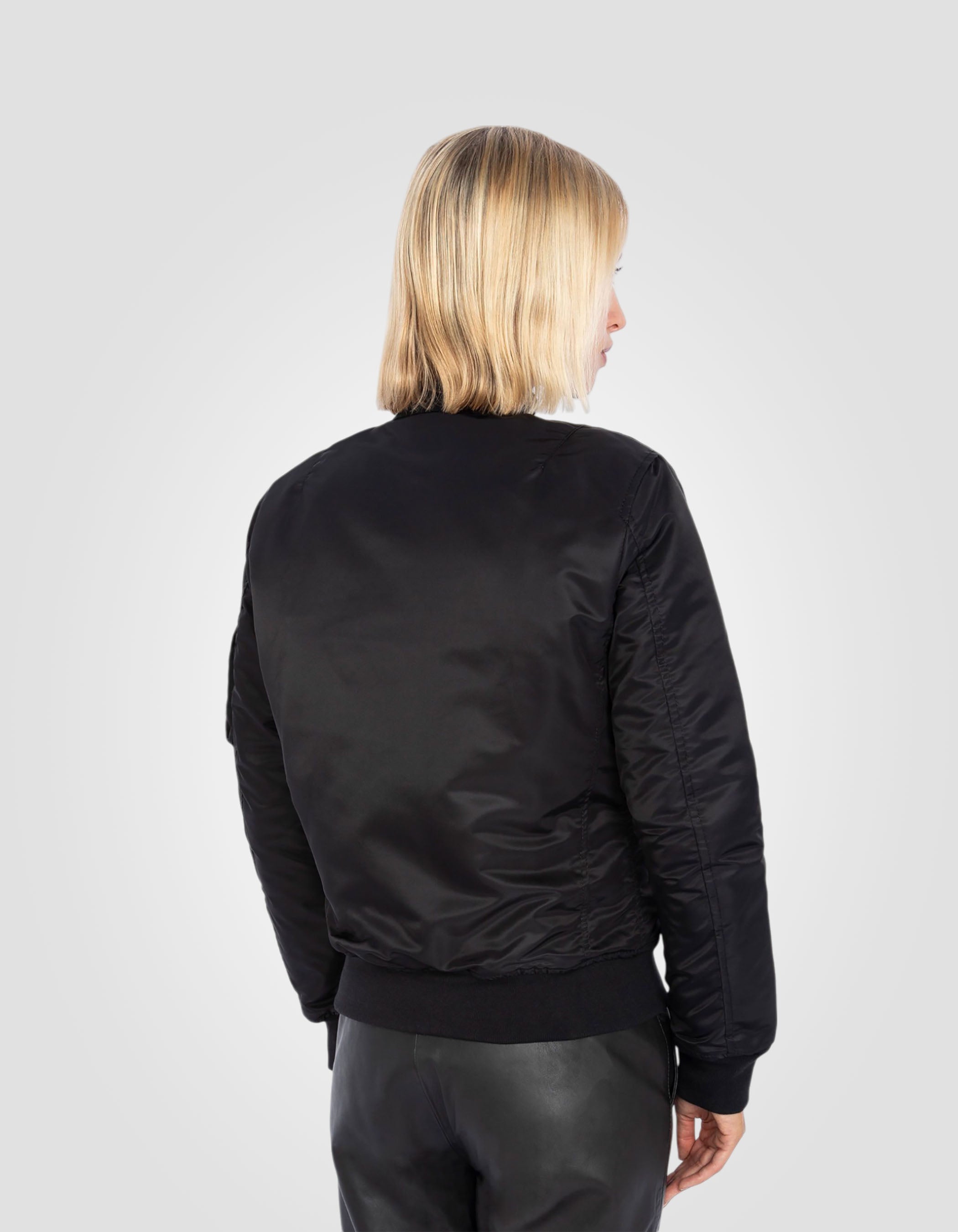 Bomber Ma-1 black in recycled nylon, adjusted cut - BLACK
