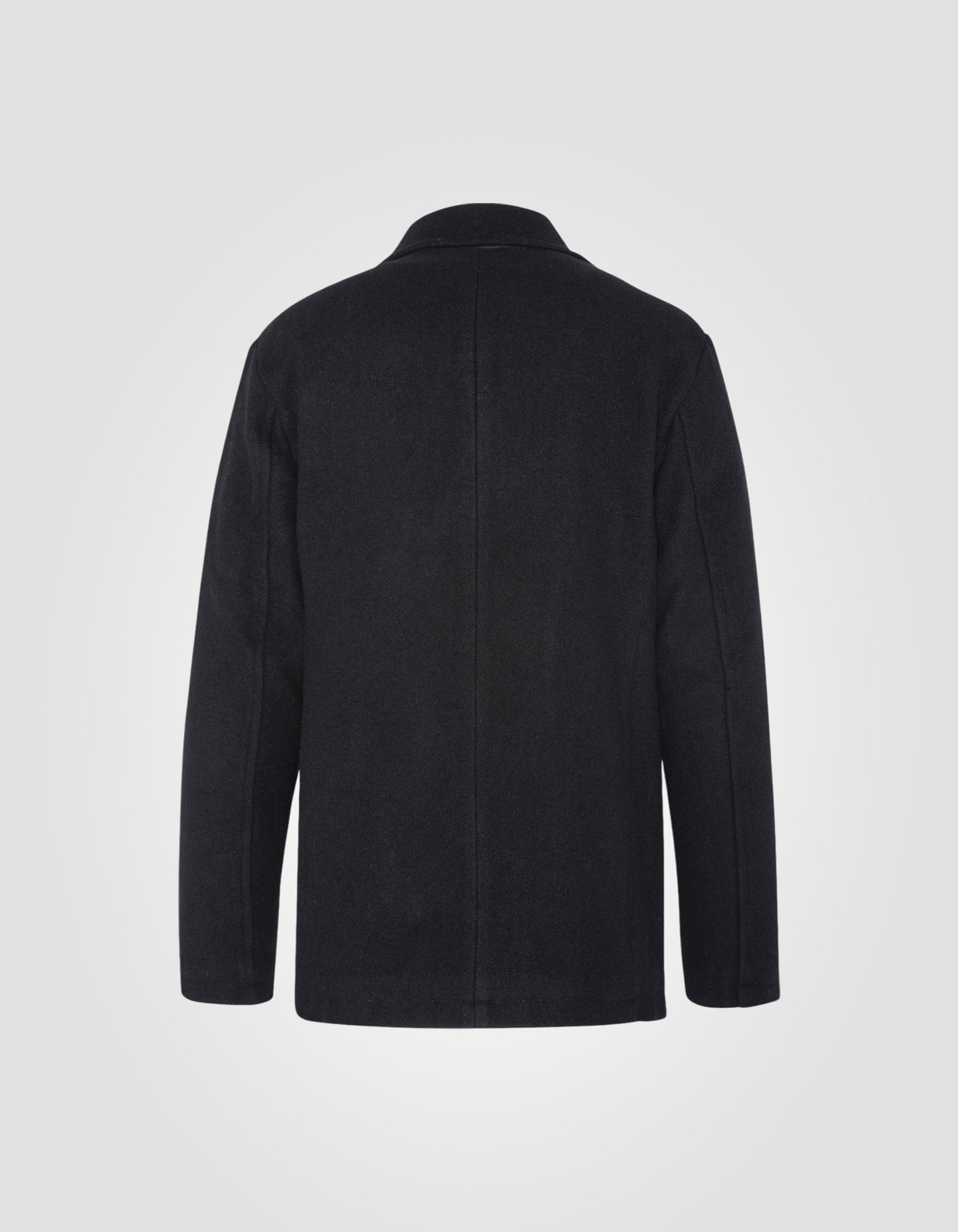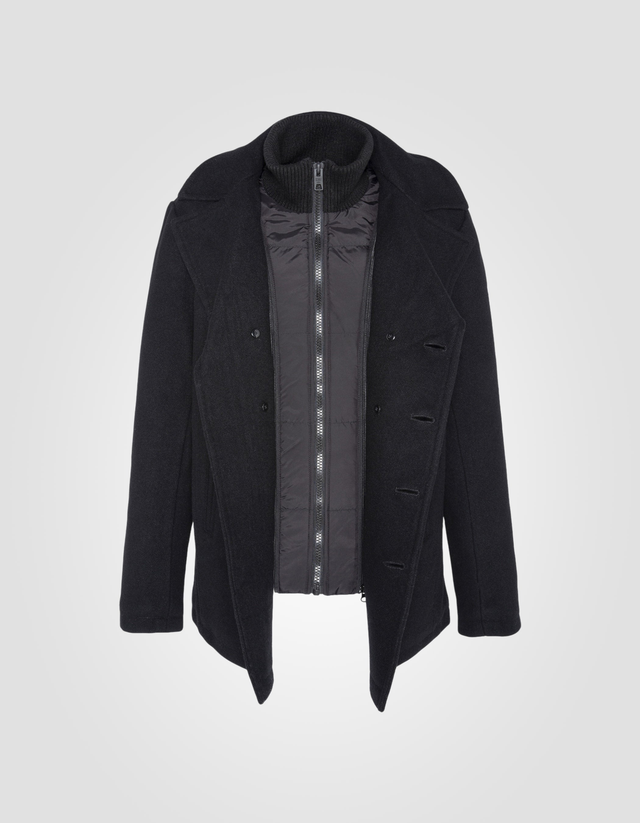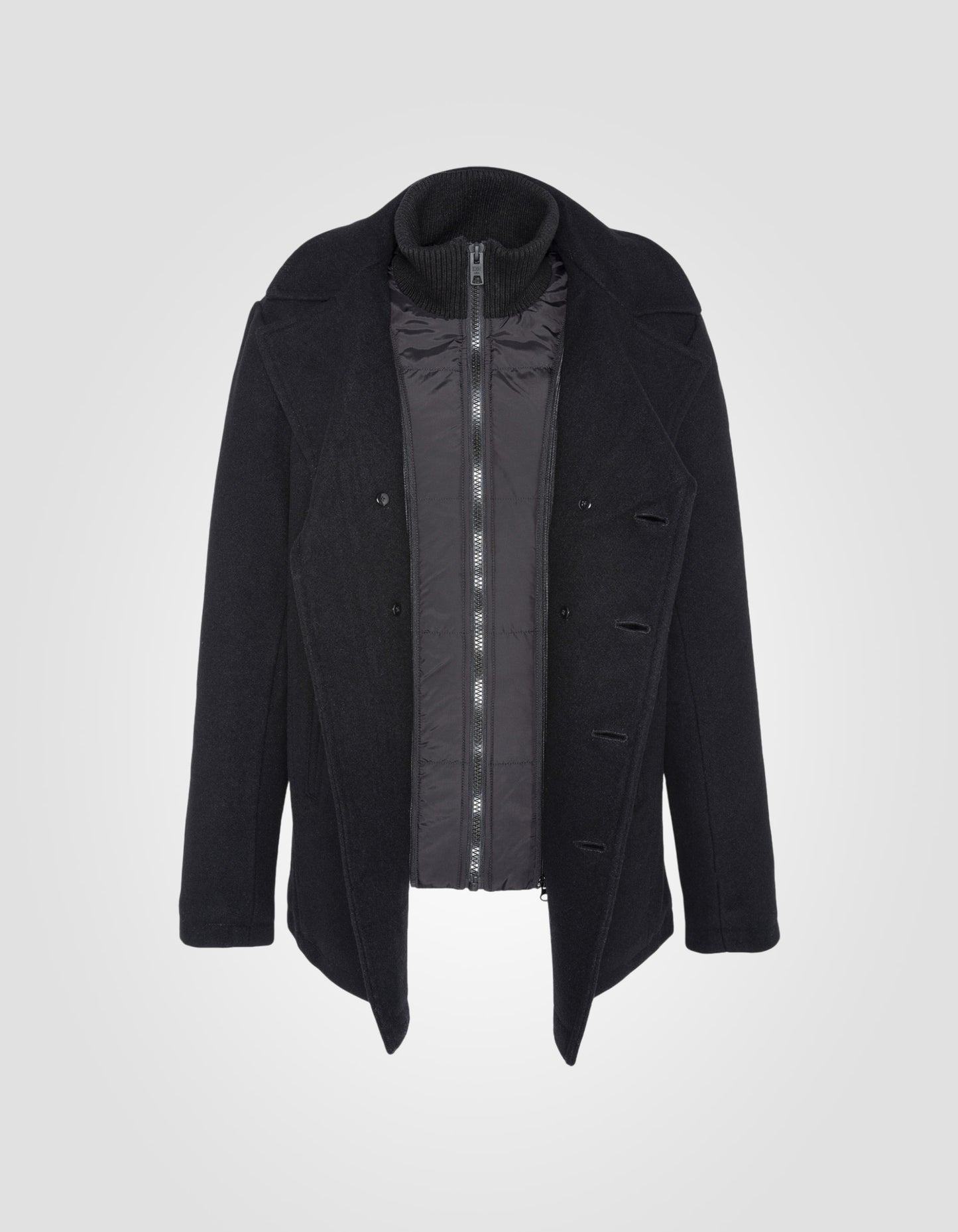 Black woolen shed mixed with removable plastron, large size - BLACK