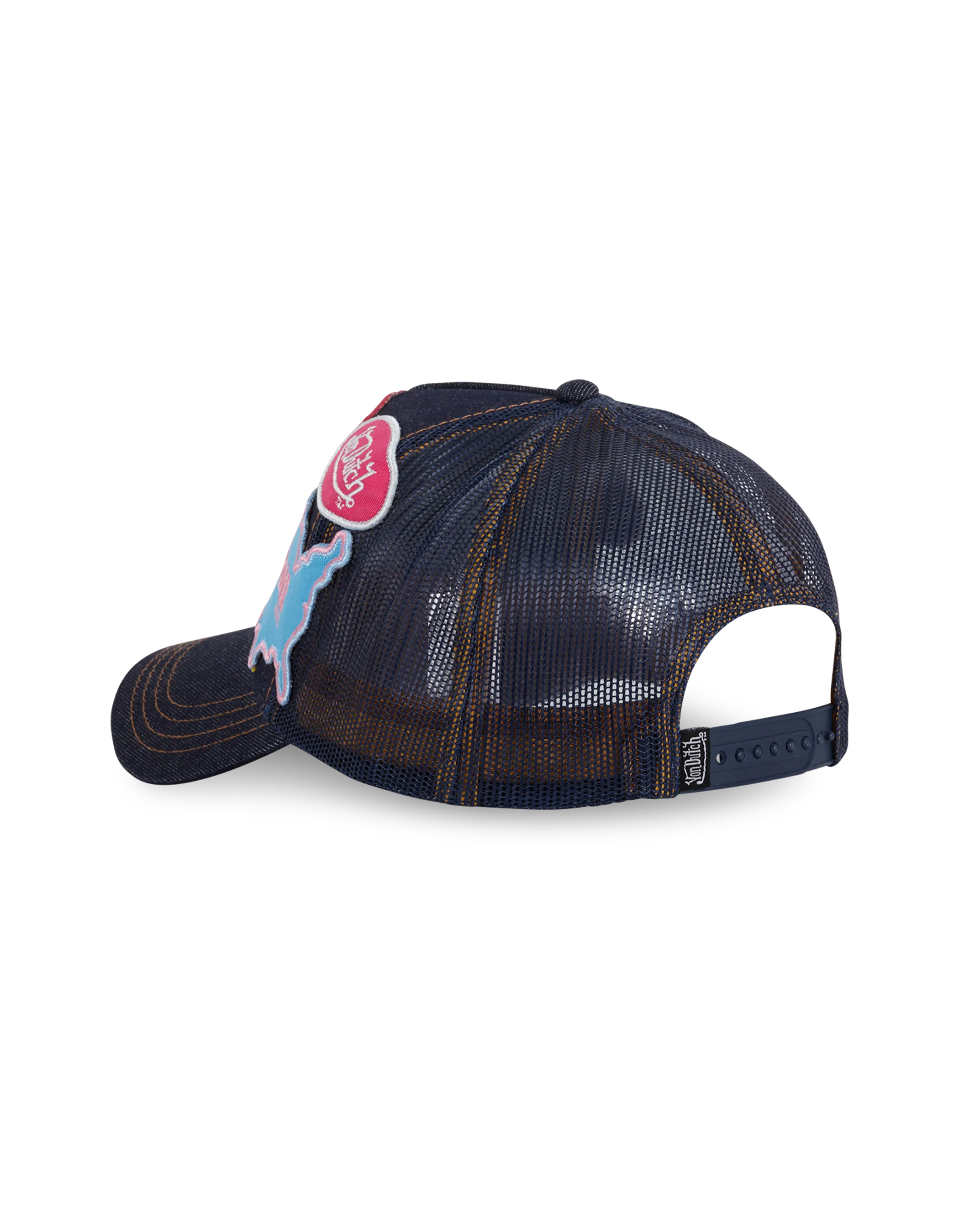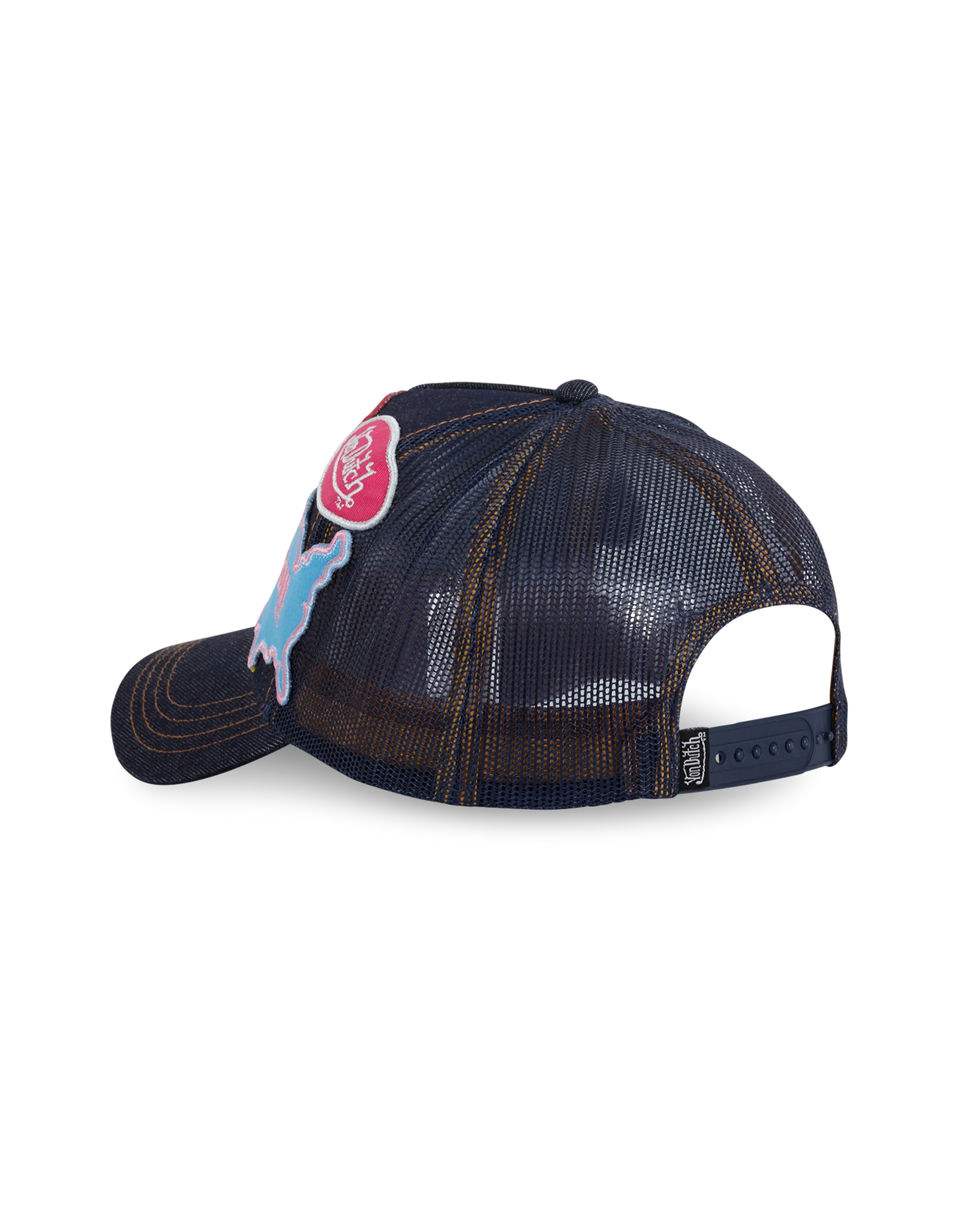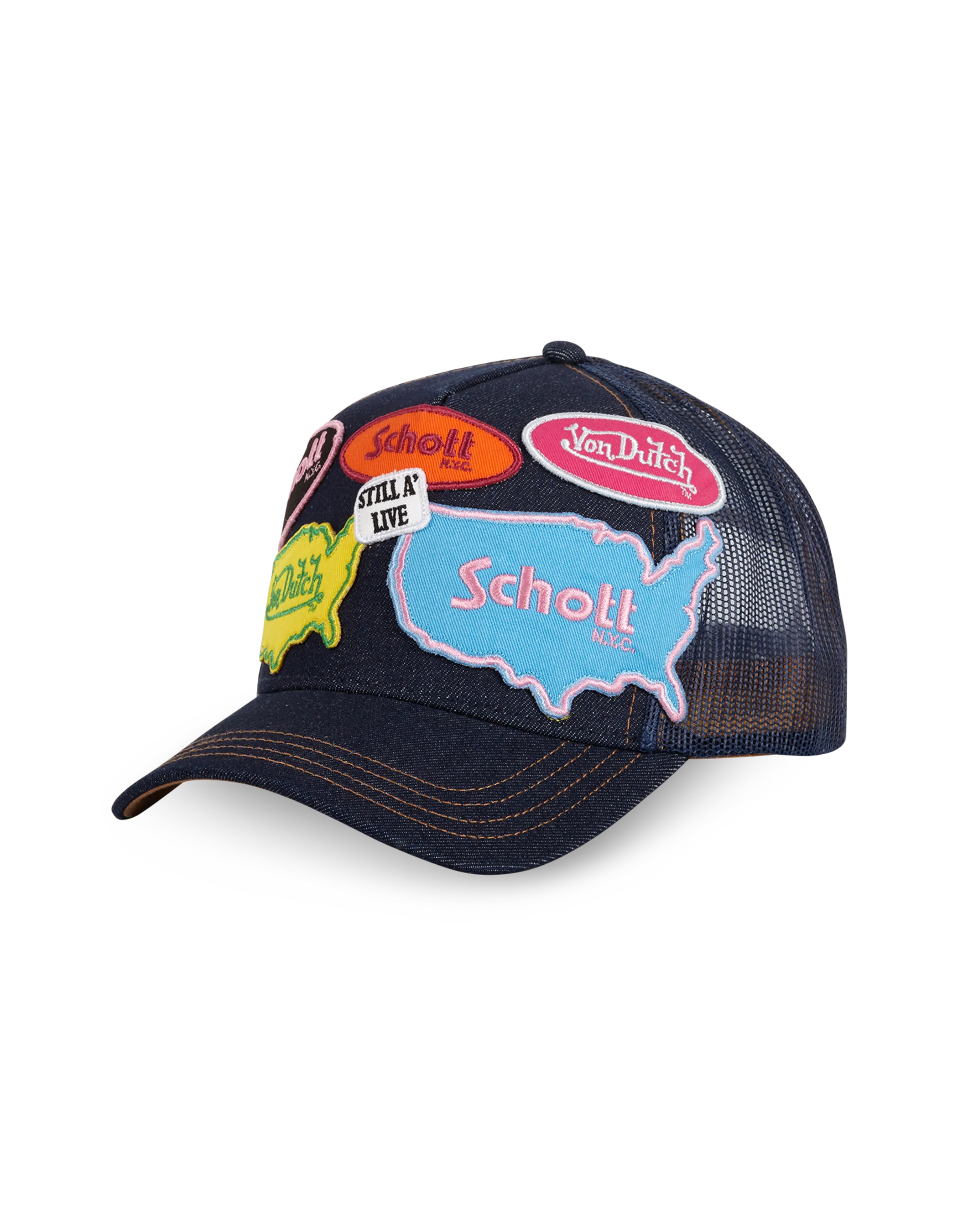 Trucker cap from the collaboration between Schott NYC® and Von Dutch, in denim with patches.