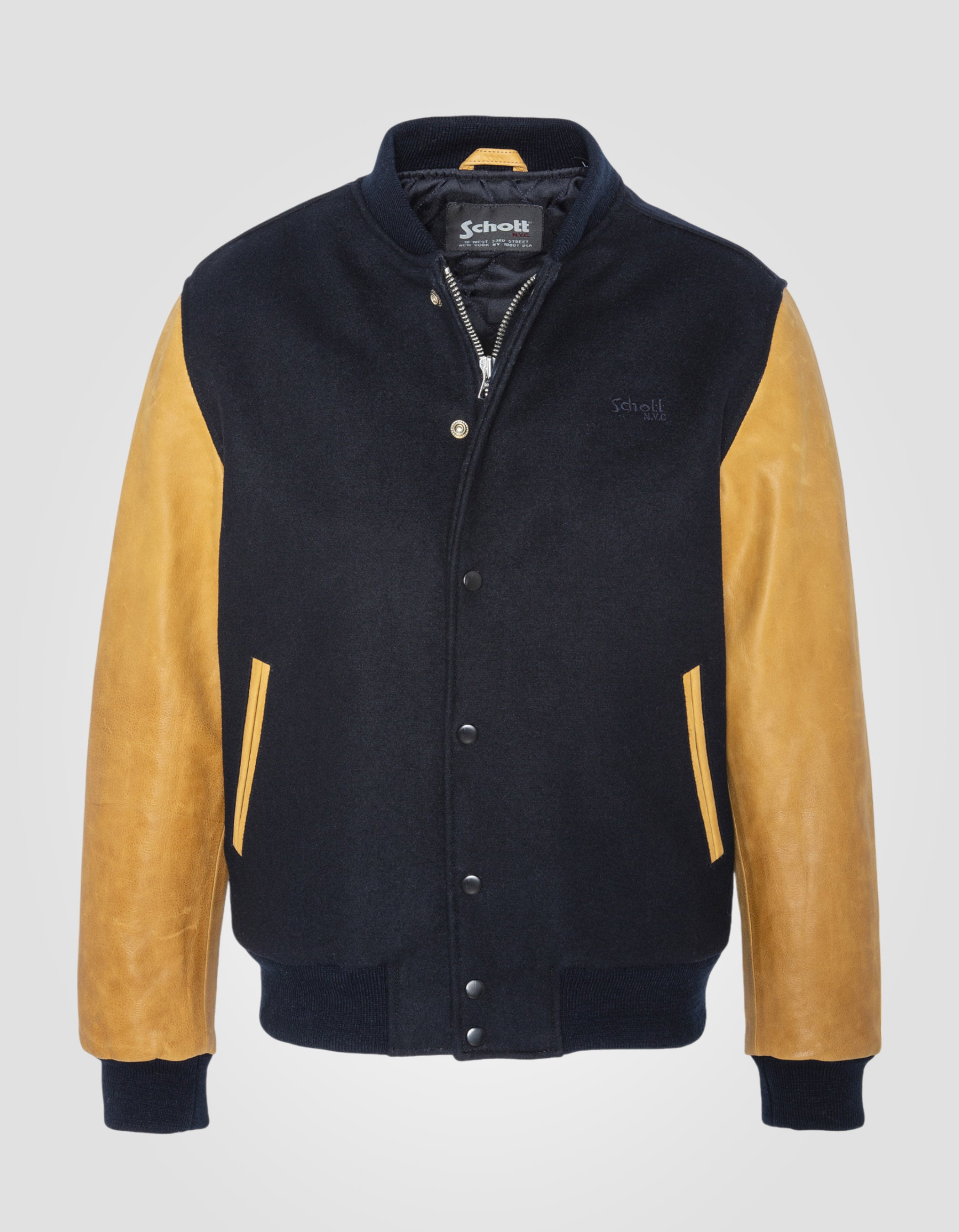 The varsity jacket is an iconic symbol in American universities. The woolen body will keep you warm, and the leather sleeves bring character to the whole look.