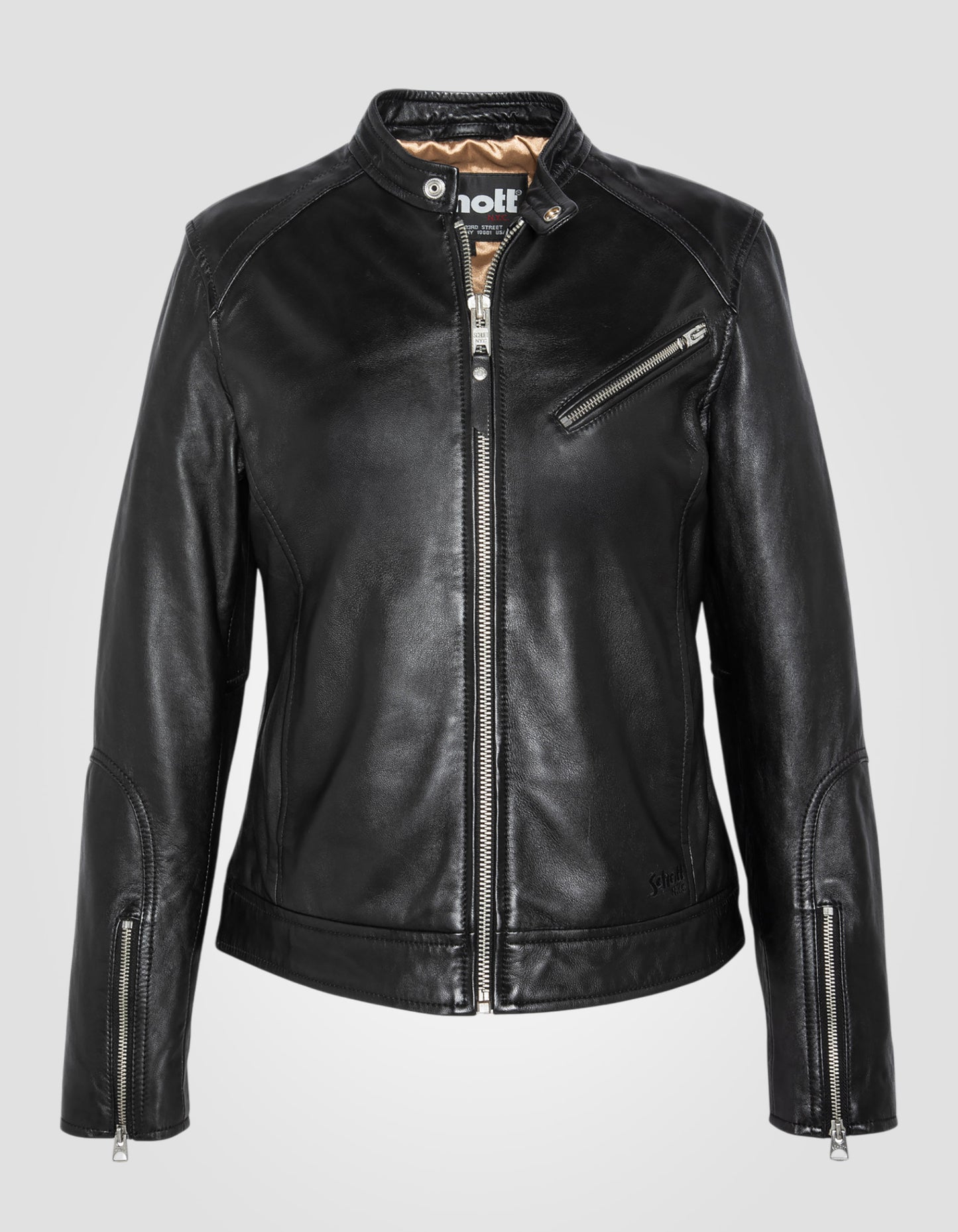 - Schott NYC® logo embroidered on bottom of garment