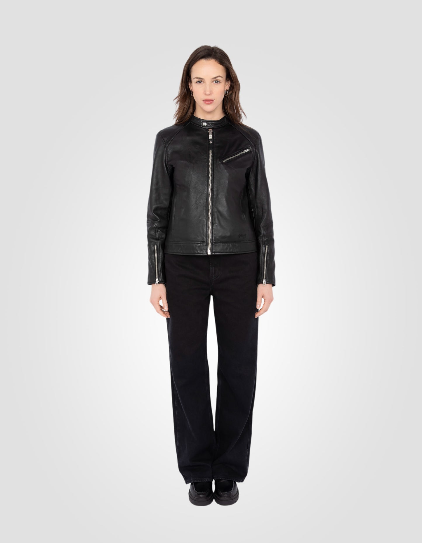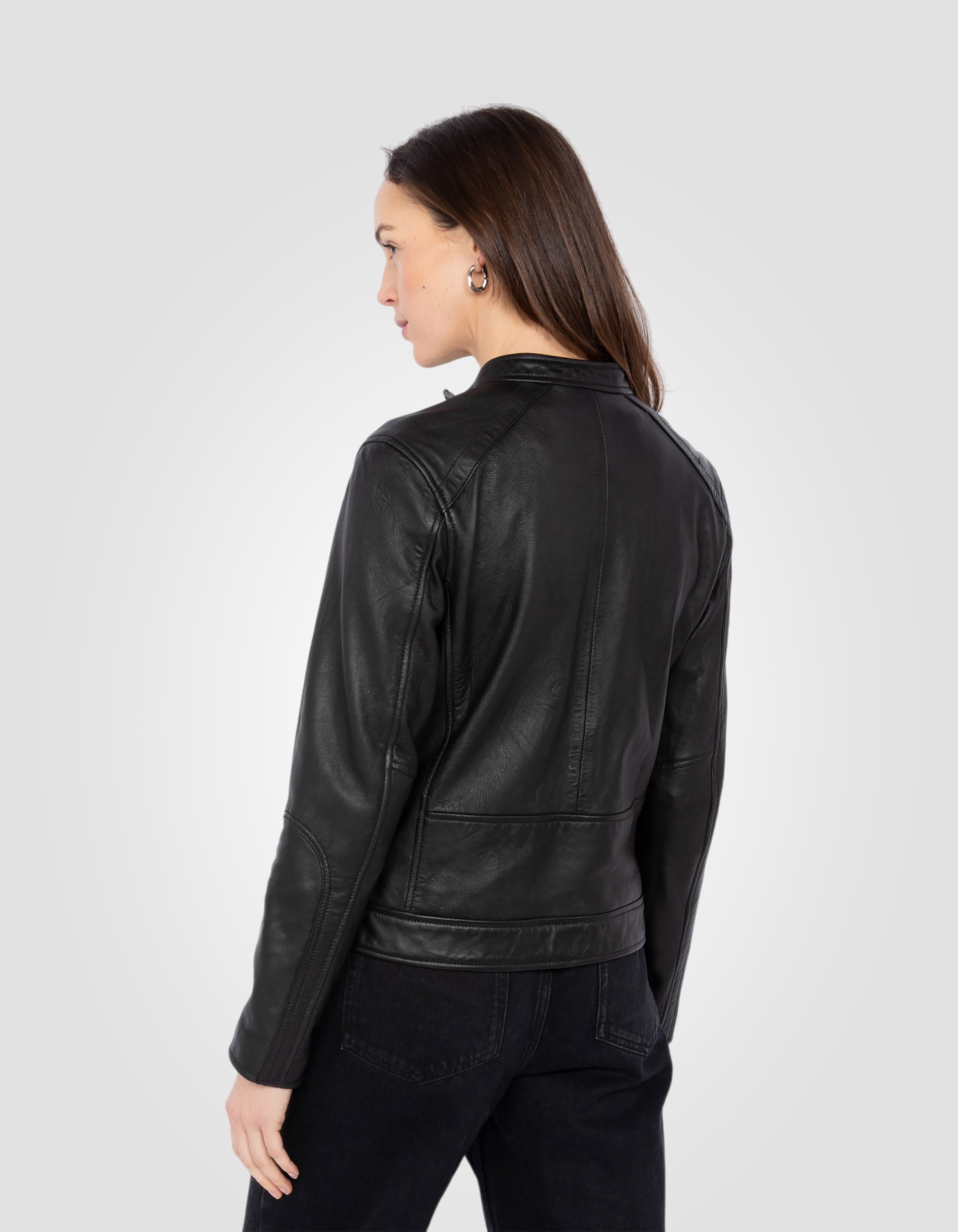 Black flexible biker jacket, washed lamb leather - BLACK