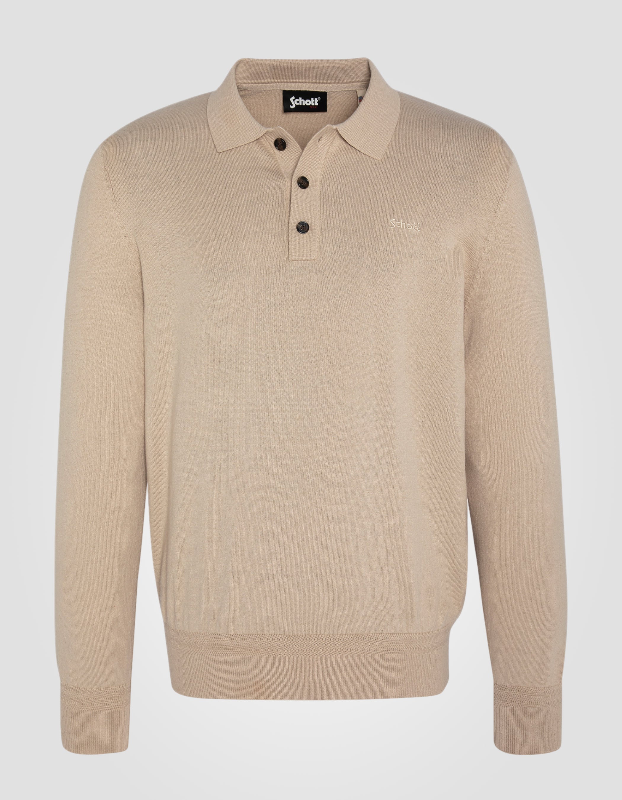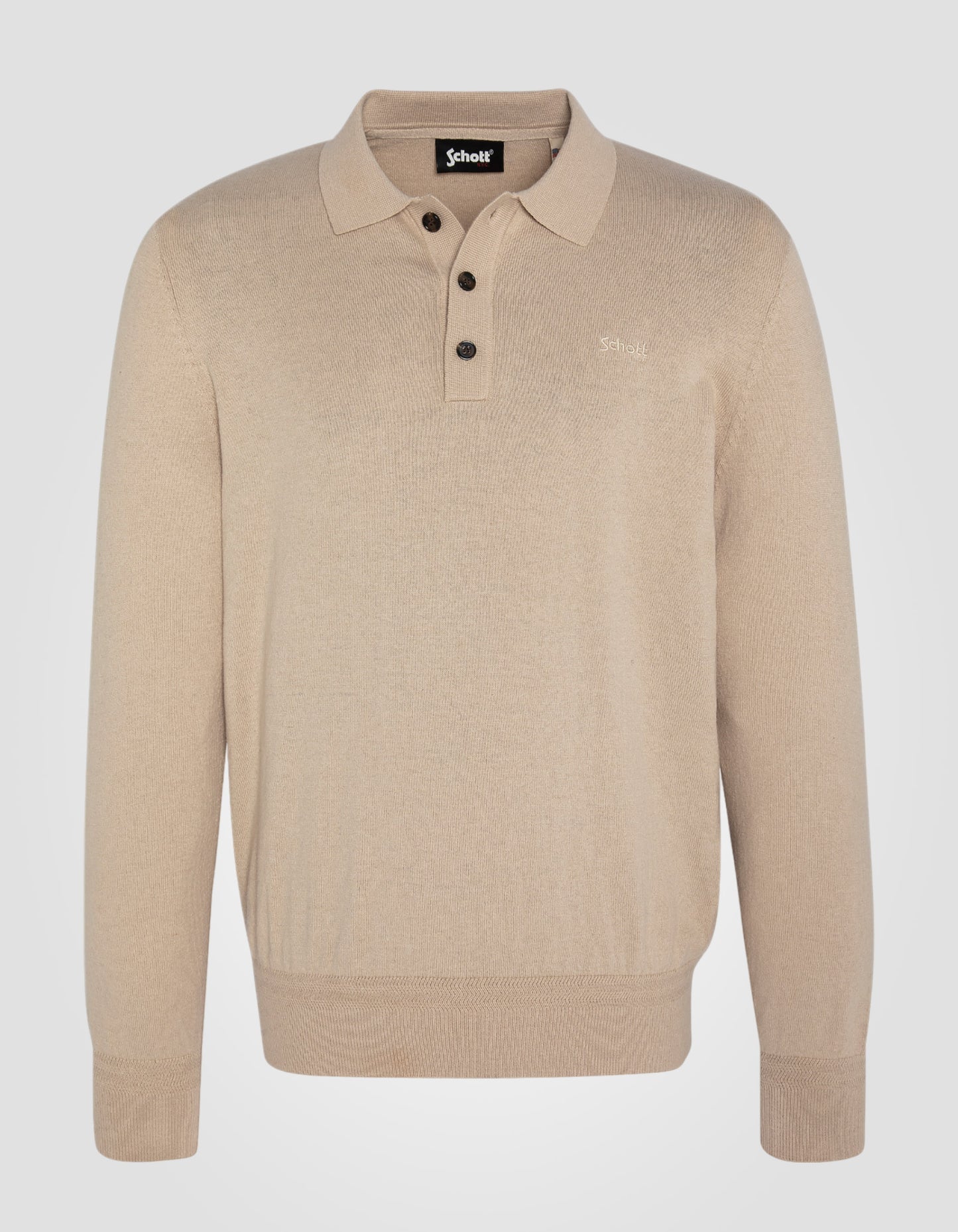 Light beige beige polo collar sweater in fine mesh - LIGHT BEIGE