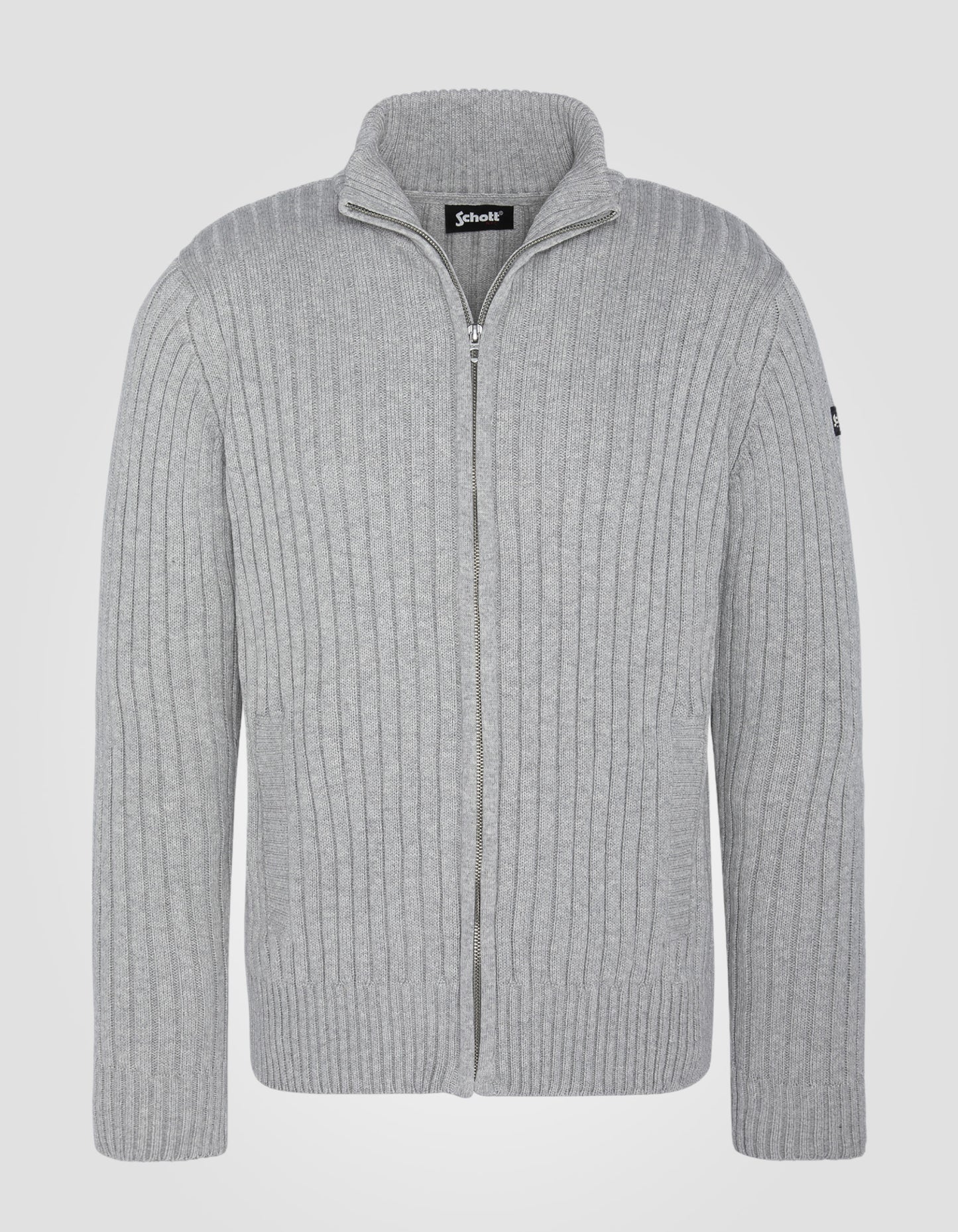 Recycled light chinety zipped cardigan - HEATHER LIGHT GREY