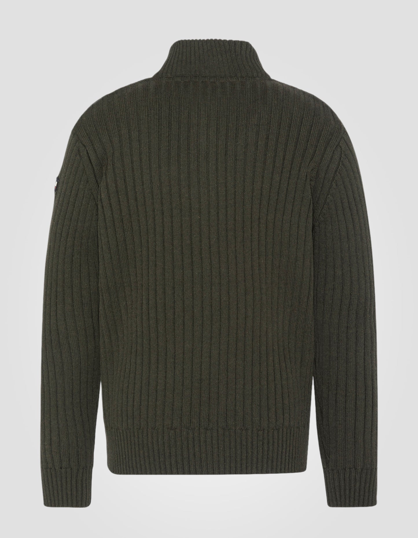 Recycled dark khaki trucker sweater