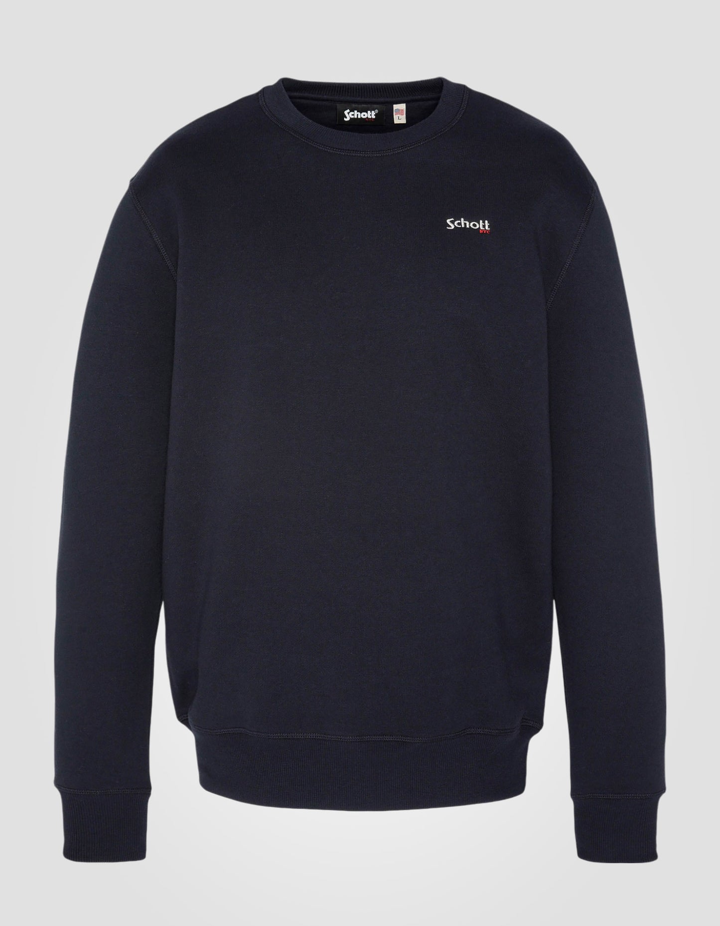 Navy blue round blue round -neck sweatshirt thick fleece - NAVY