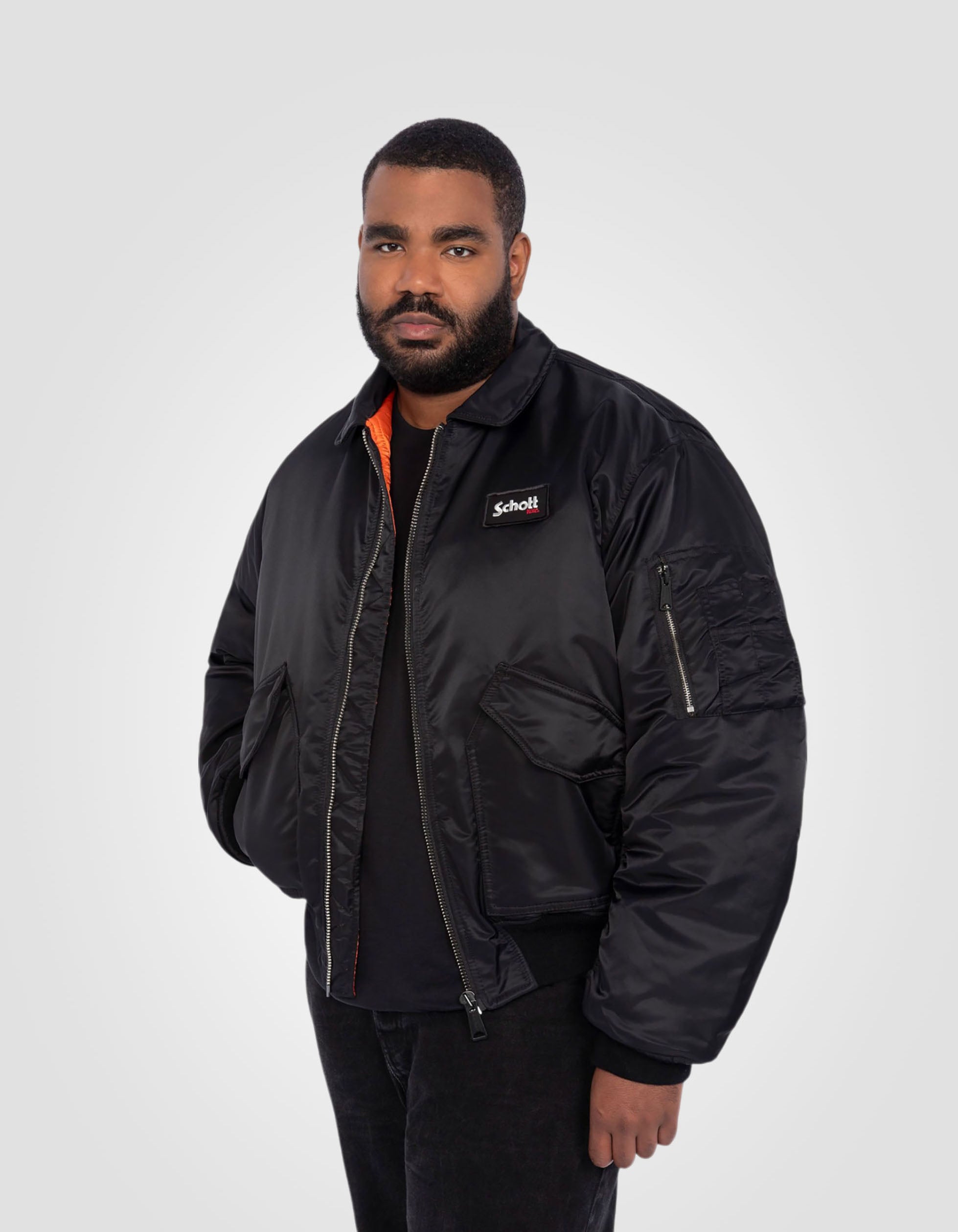 Bomber CWU 90's noir en nylon recyclé, coupe oversize, grande taille - NOIR