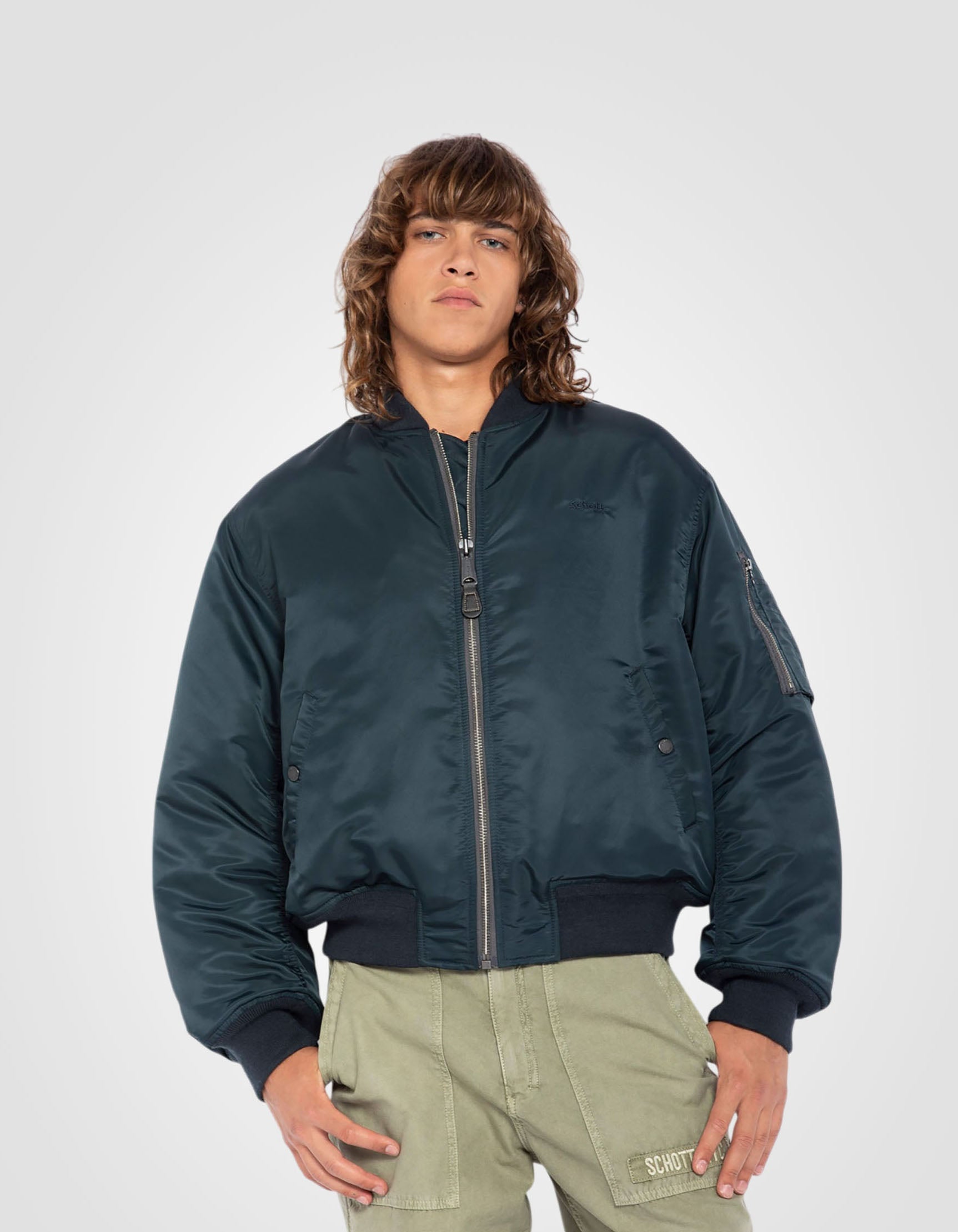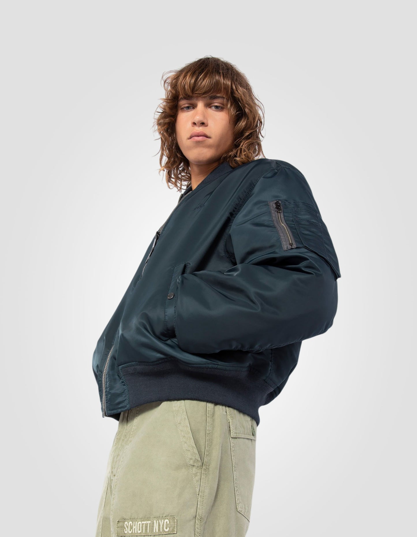 Le bomber, de son vrai nom militaire flight jacket MA-1, a été créé au début des années 50 pour les pilotes de l'armée américaine. Depuis, cette veste iconique n'a cessé d'être revisitée. La plus récente de ces adaptations est sa coupe inspirée des années 90 et l'utilisation de nylon recyclé comme tissu extérieur du bomber.