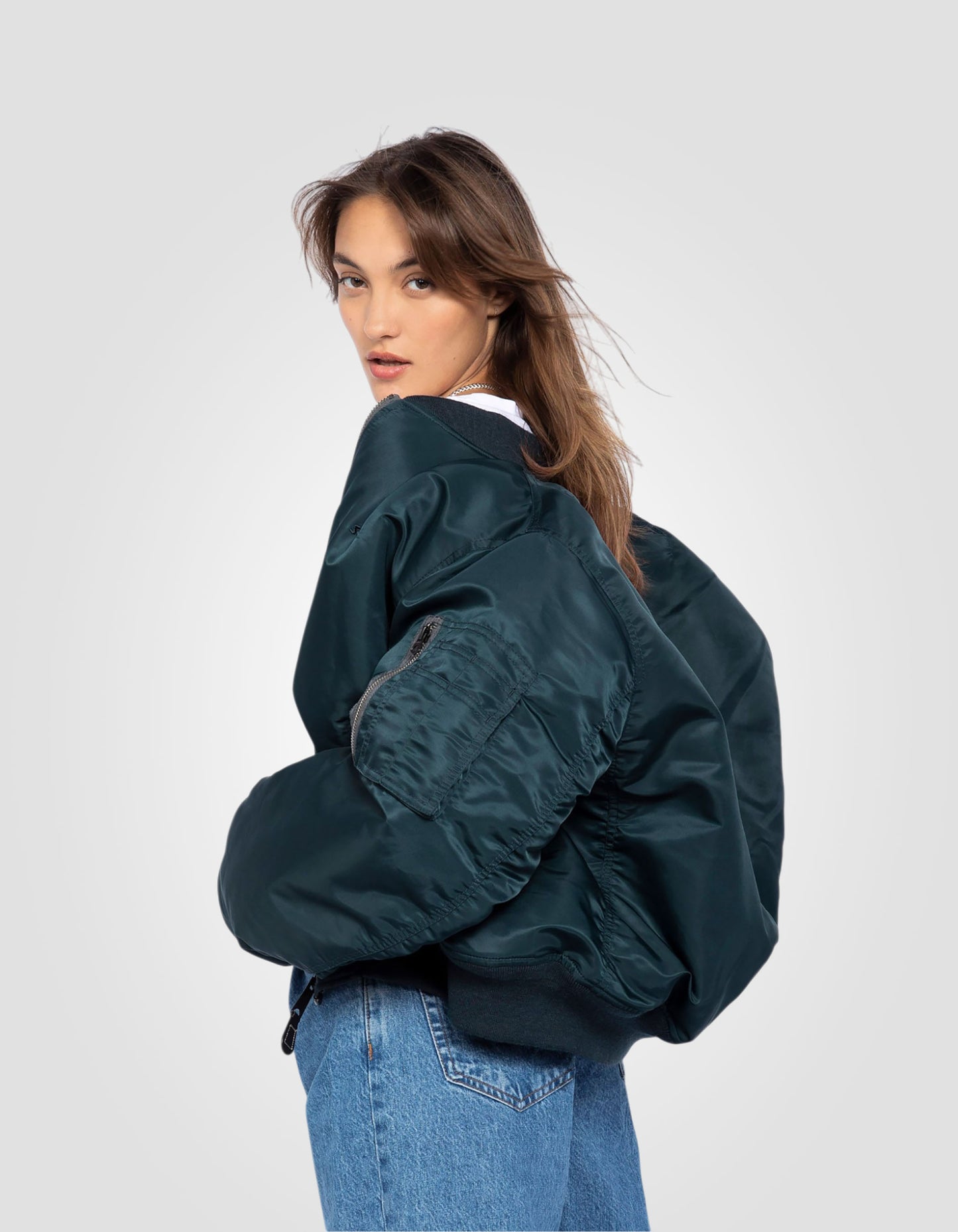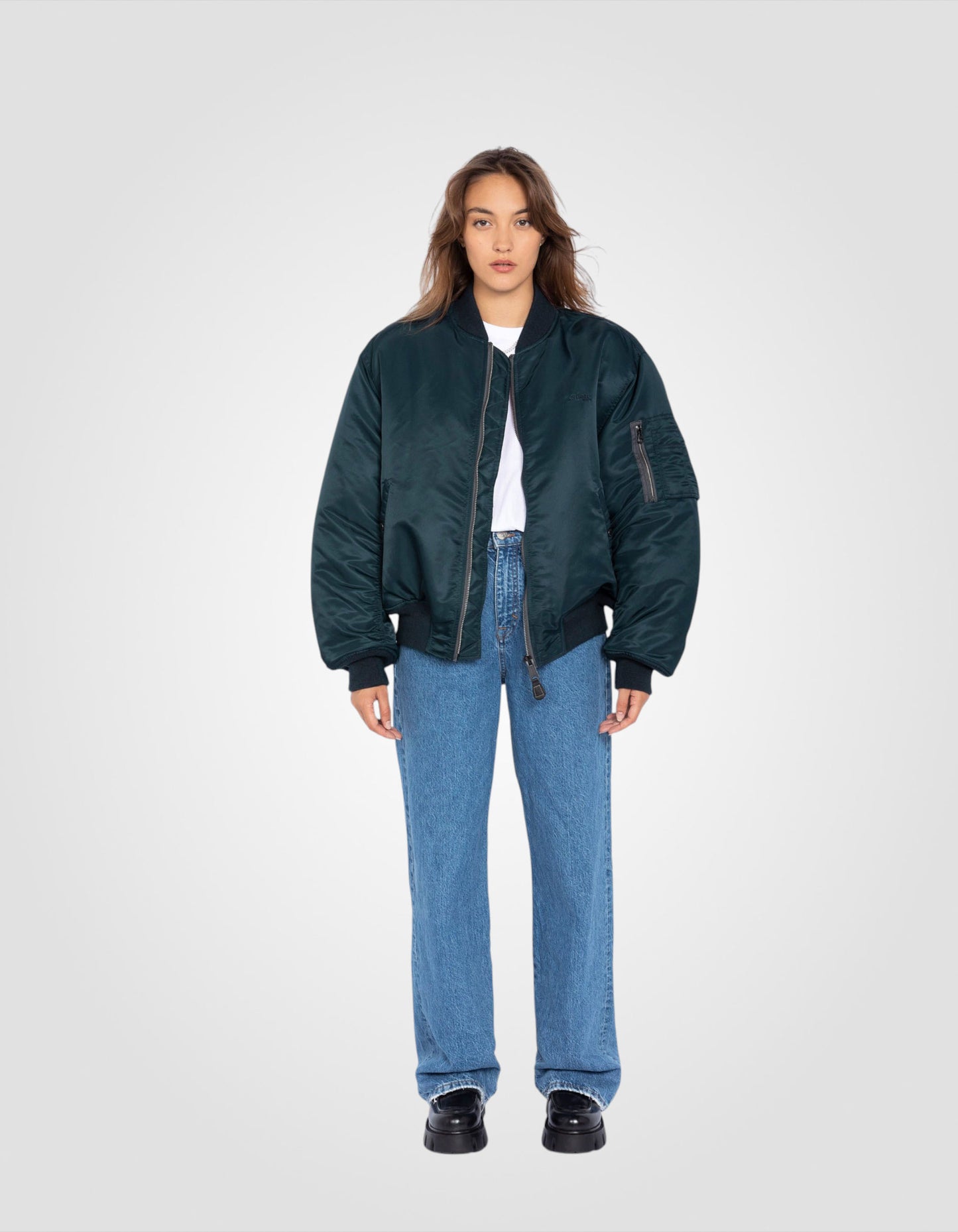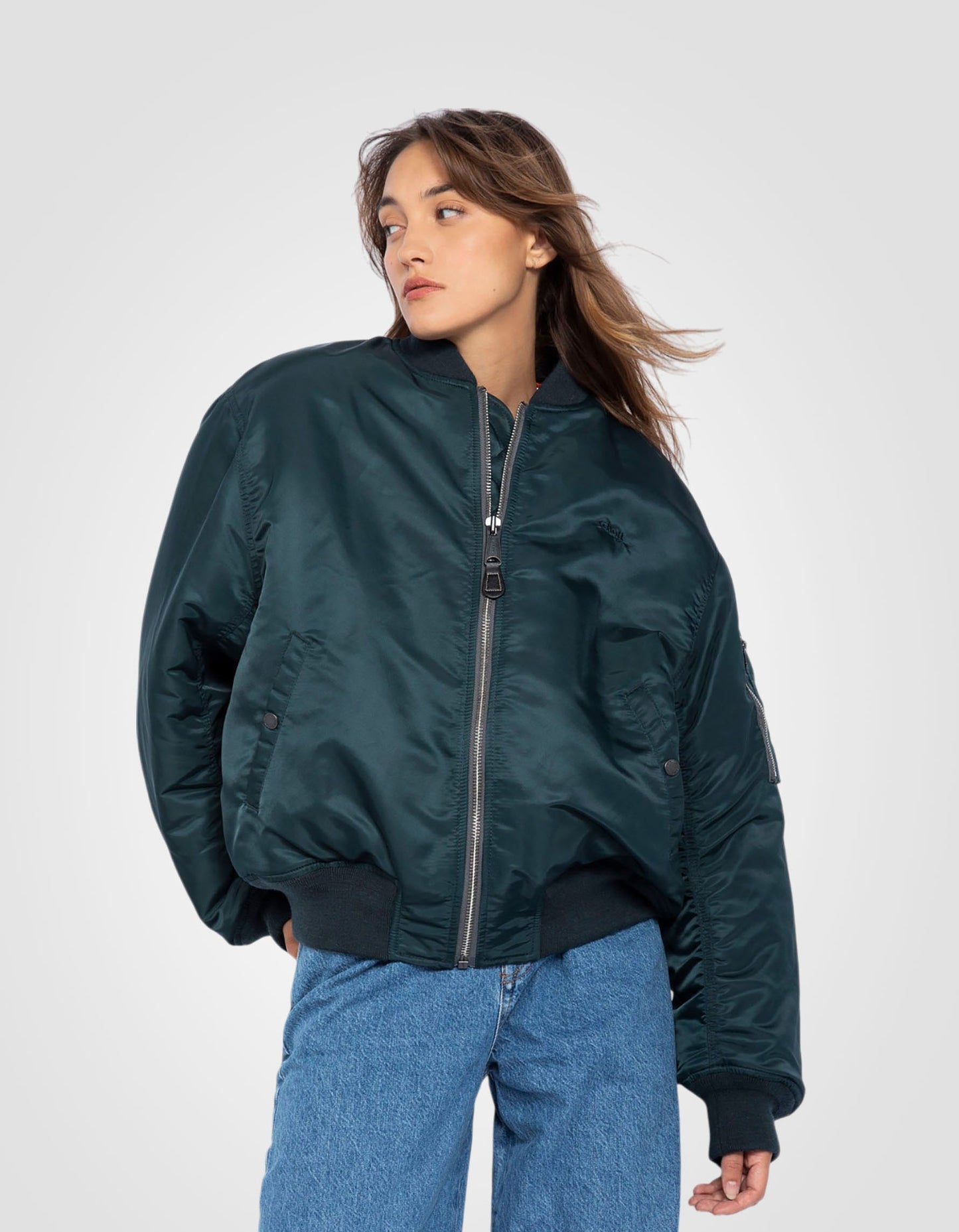 Le bomber, de son vrai nom militaire flight jacket MA-1, a été créé au début des années 50 pour les pilotes de l'armée américaine. Depuis, cette veste iconique n'a cessé d'être revisitée. La plus récente de ces adaptations est sa coupe inspirée des années 90 et l'utilisation de nylon recyclé comme tissu extérieur du bomber.