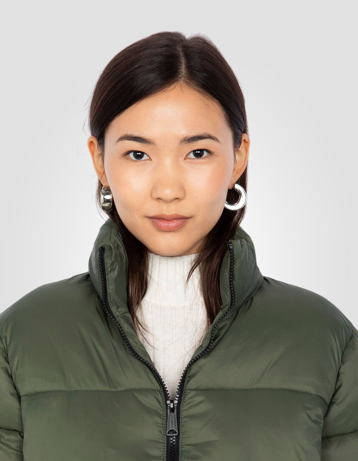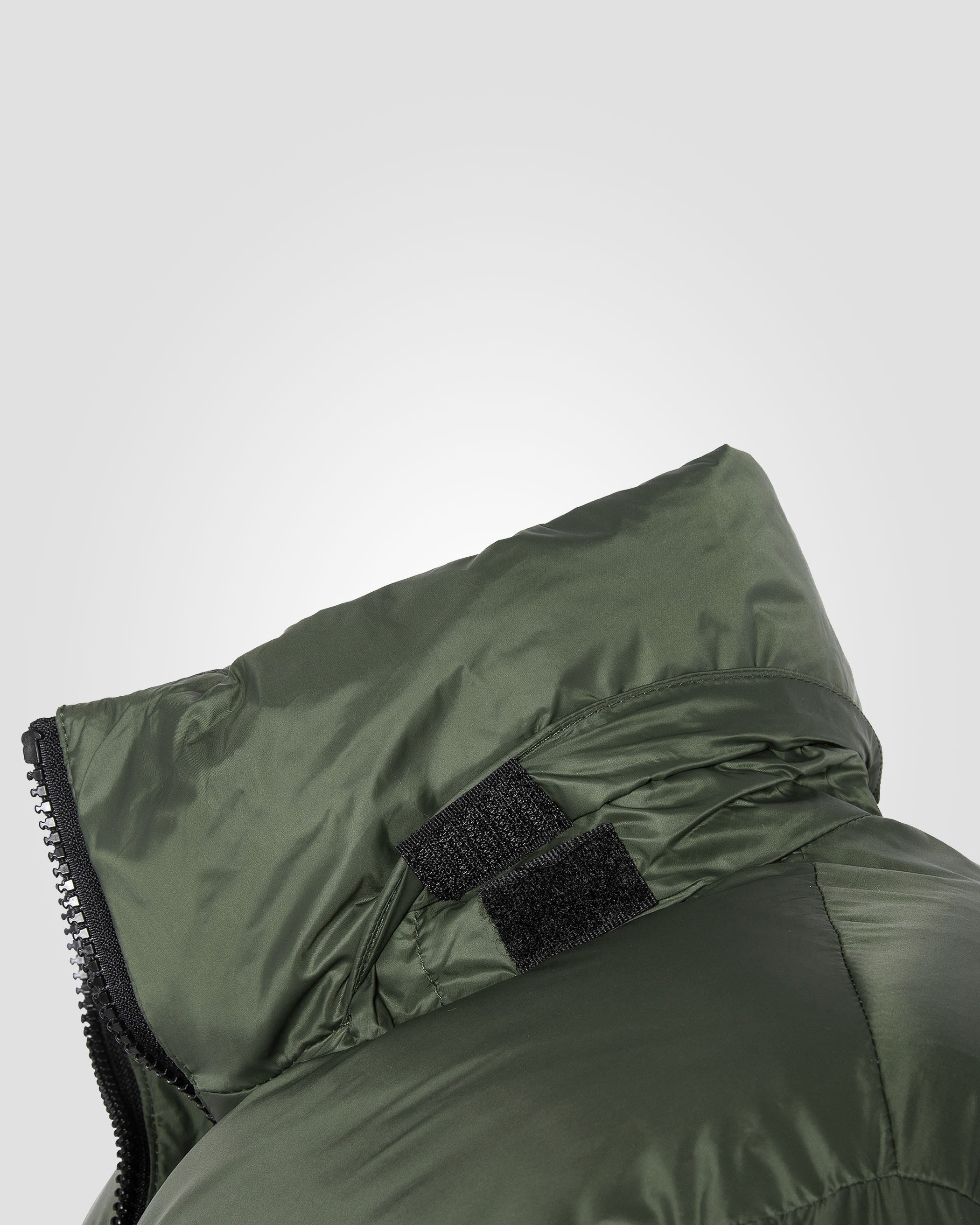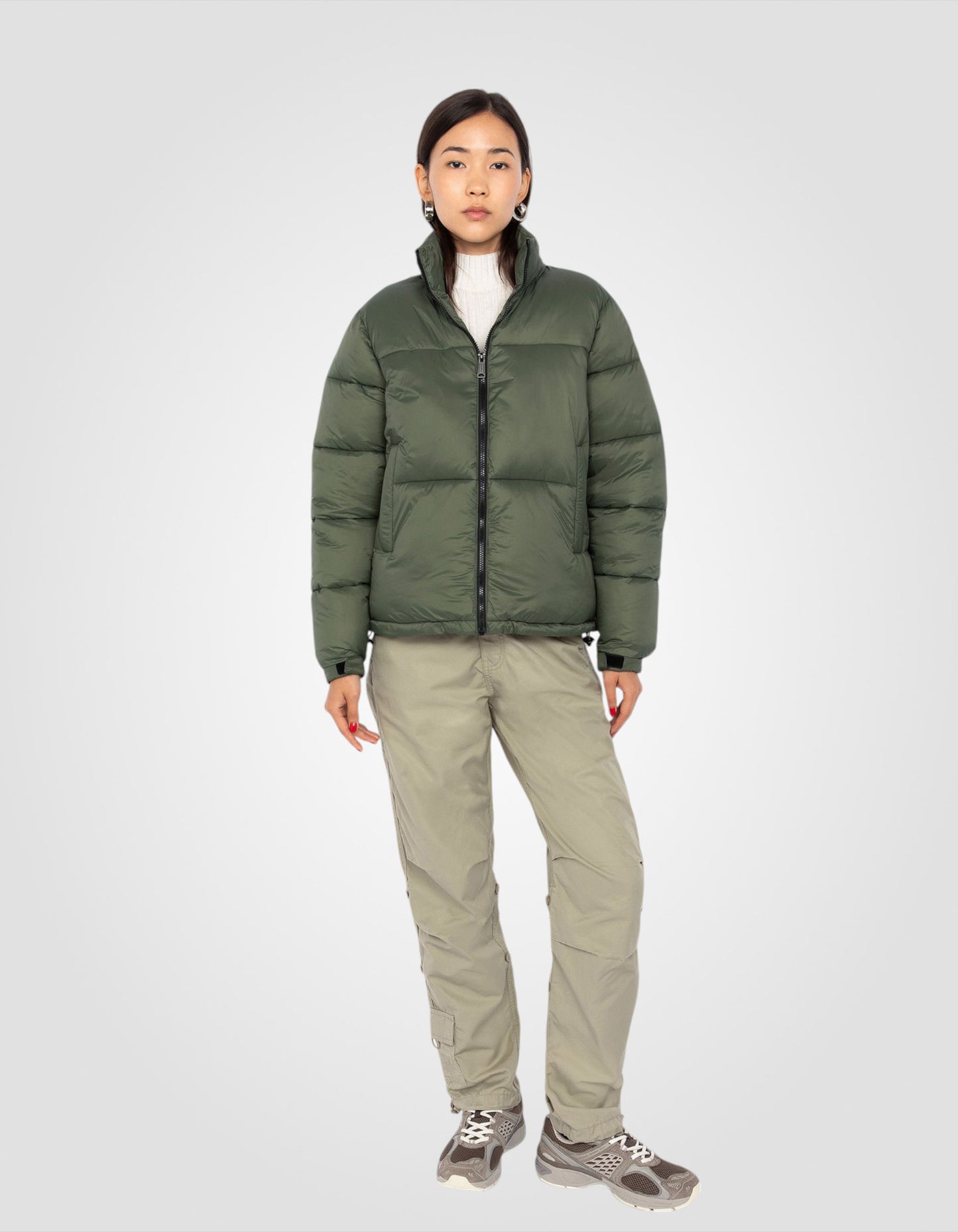Cette doudoune, fabriquée à partir de nylon recyclé pour son tissu extérieur, allie chaleur et confort.