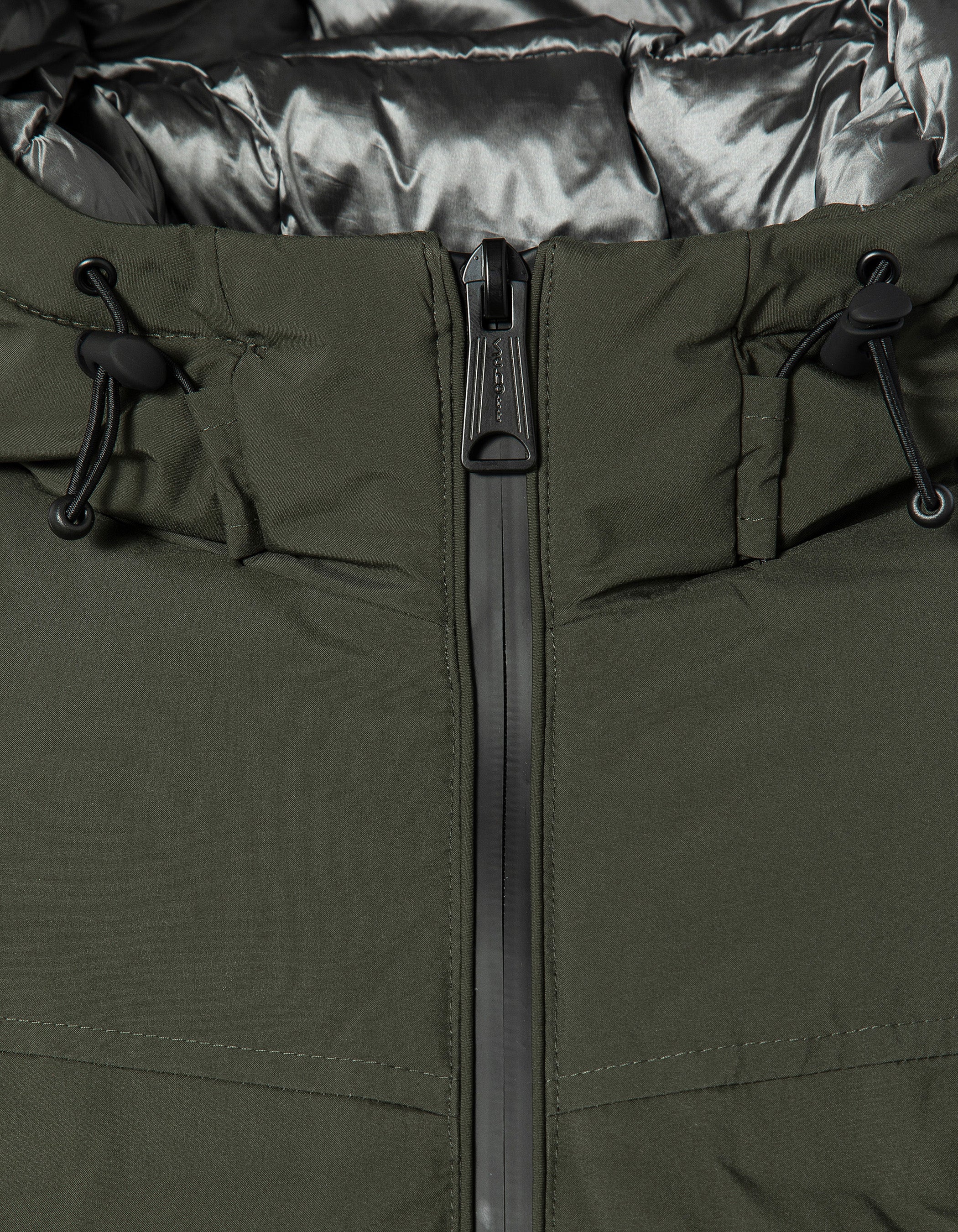 Doudoune kaki à capuche sans couture, tissu mat