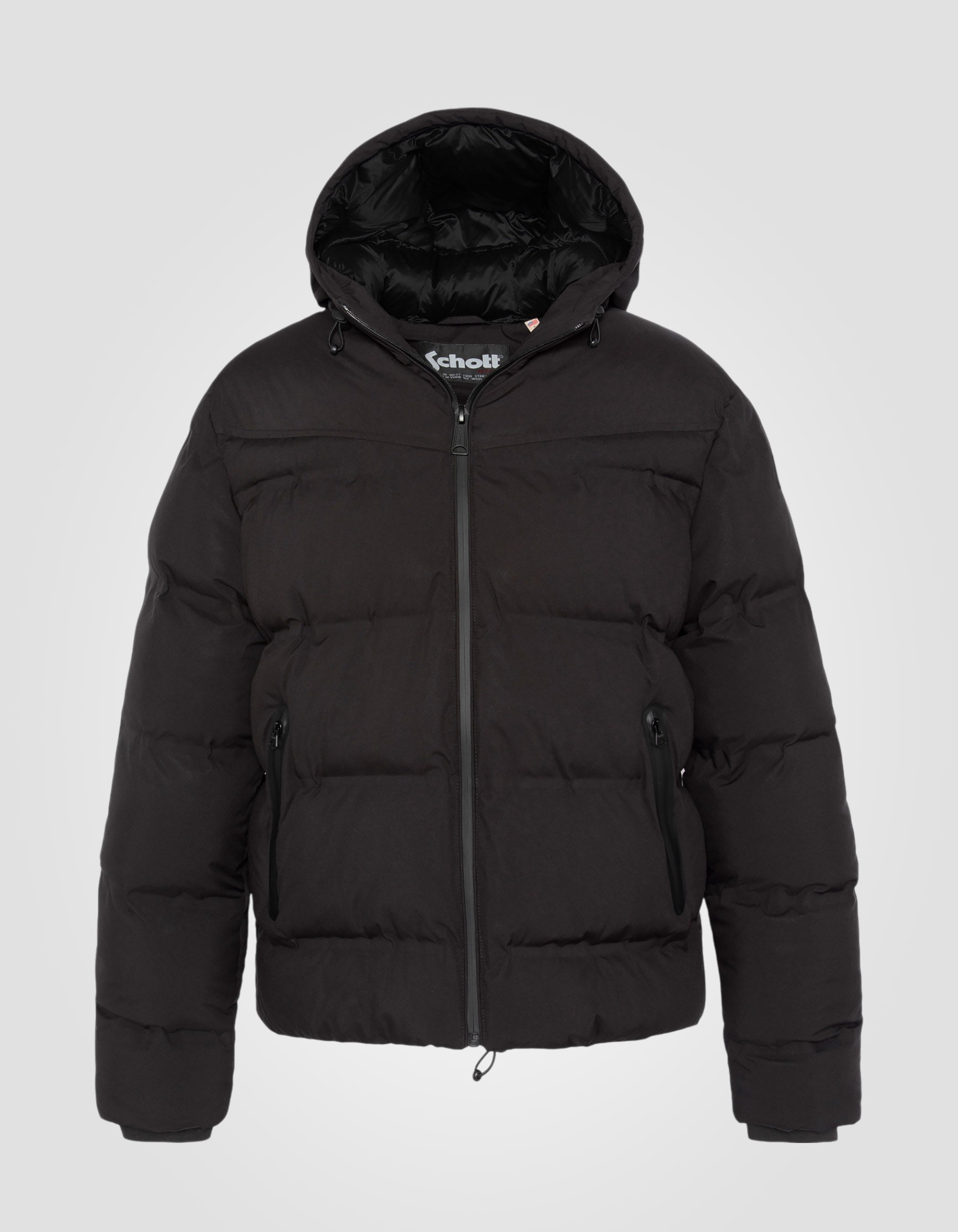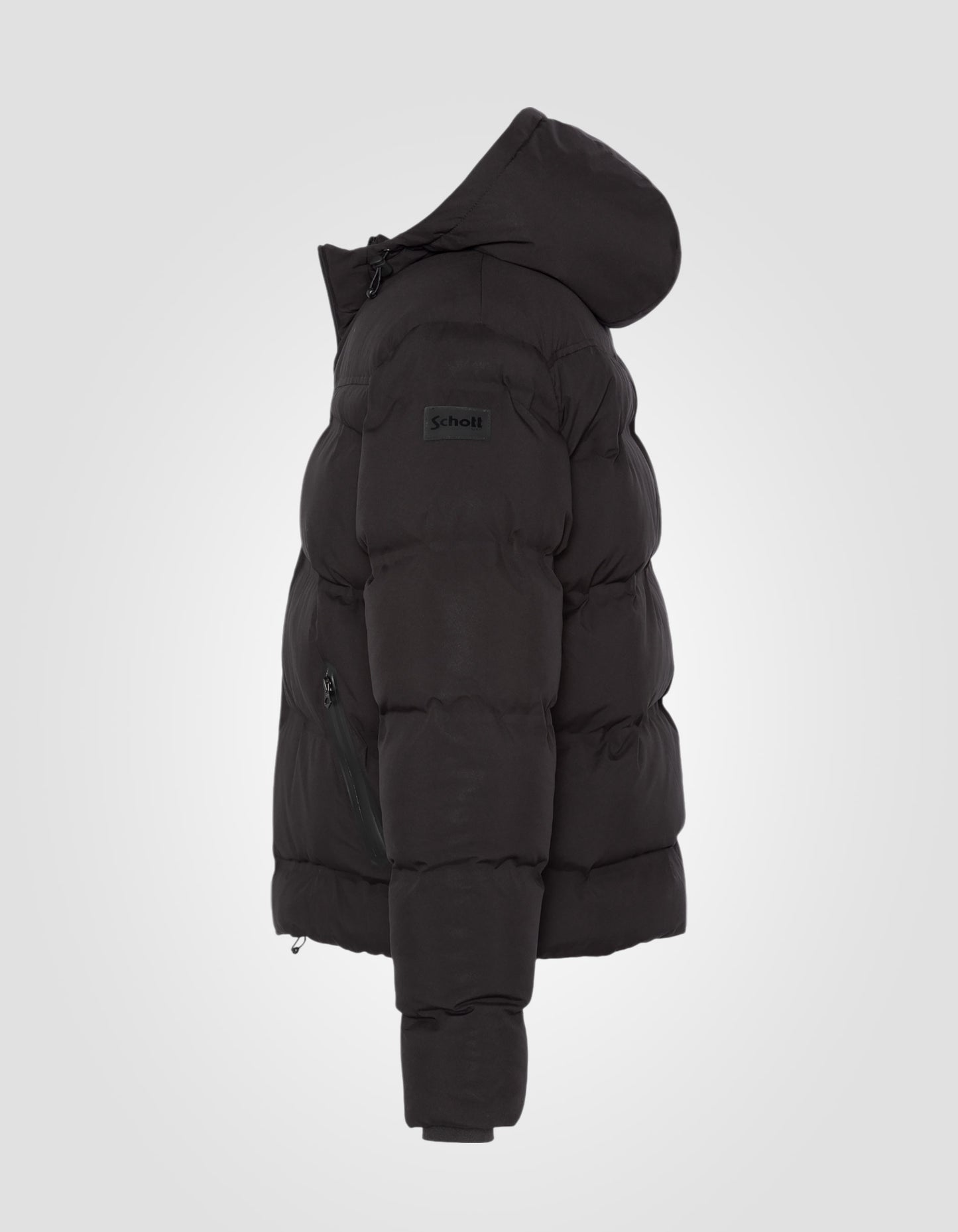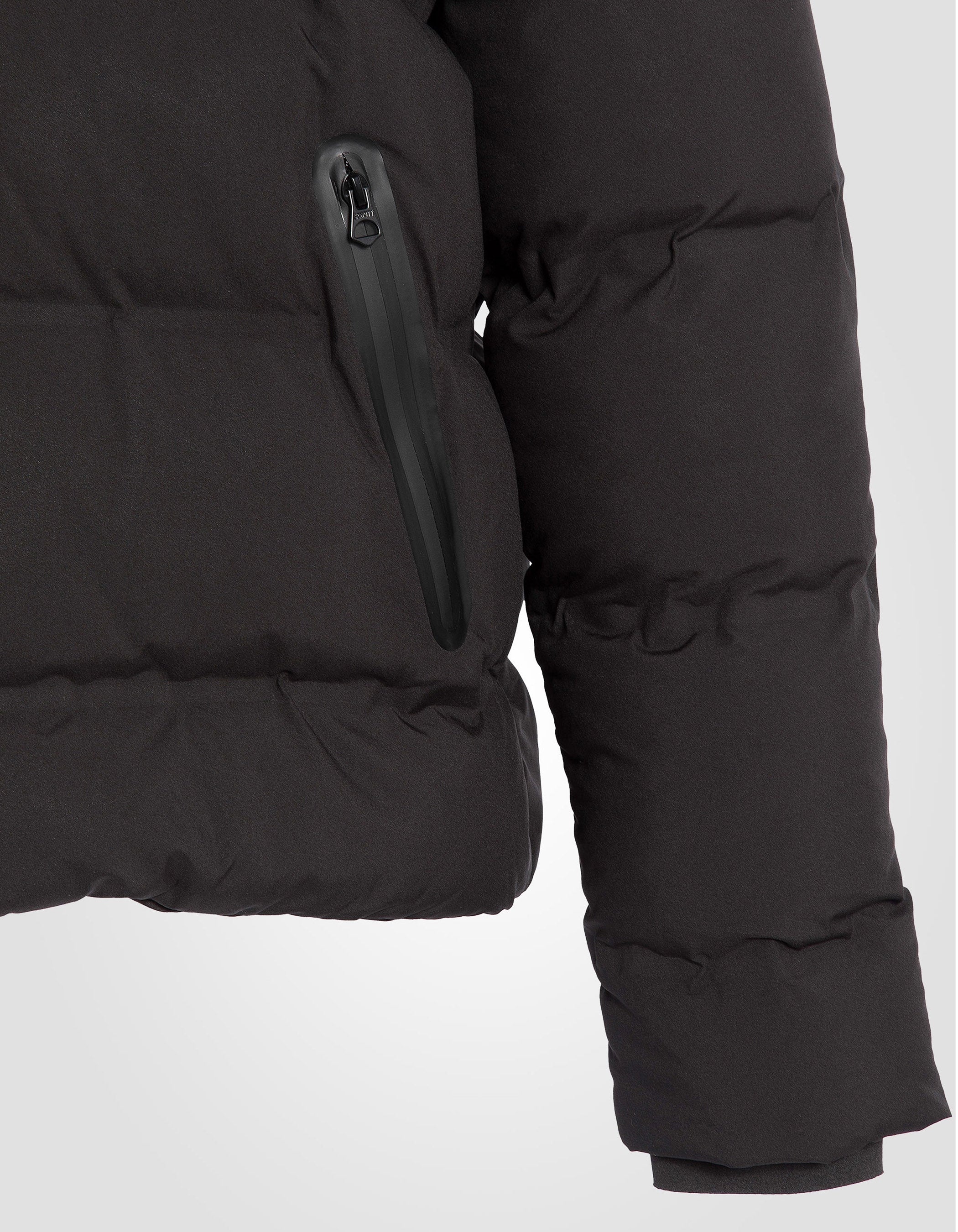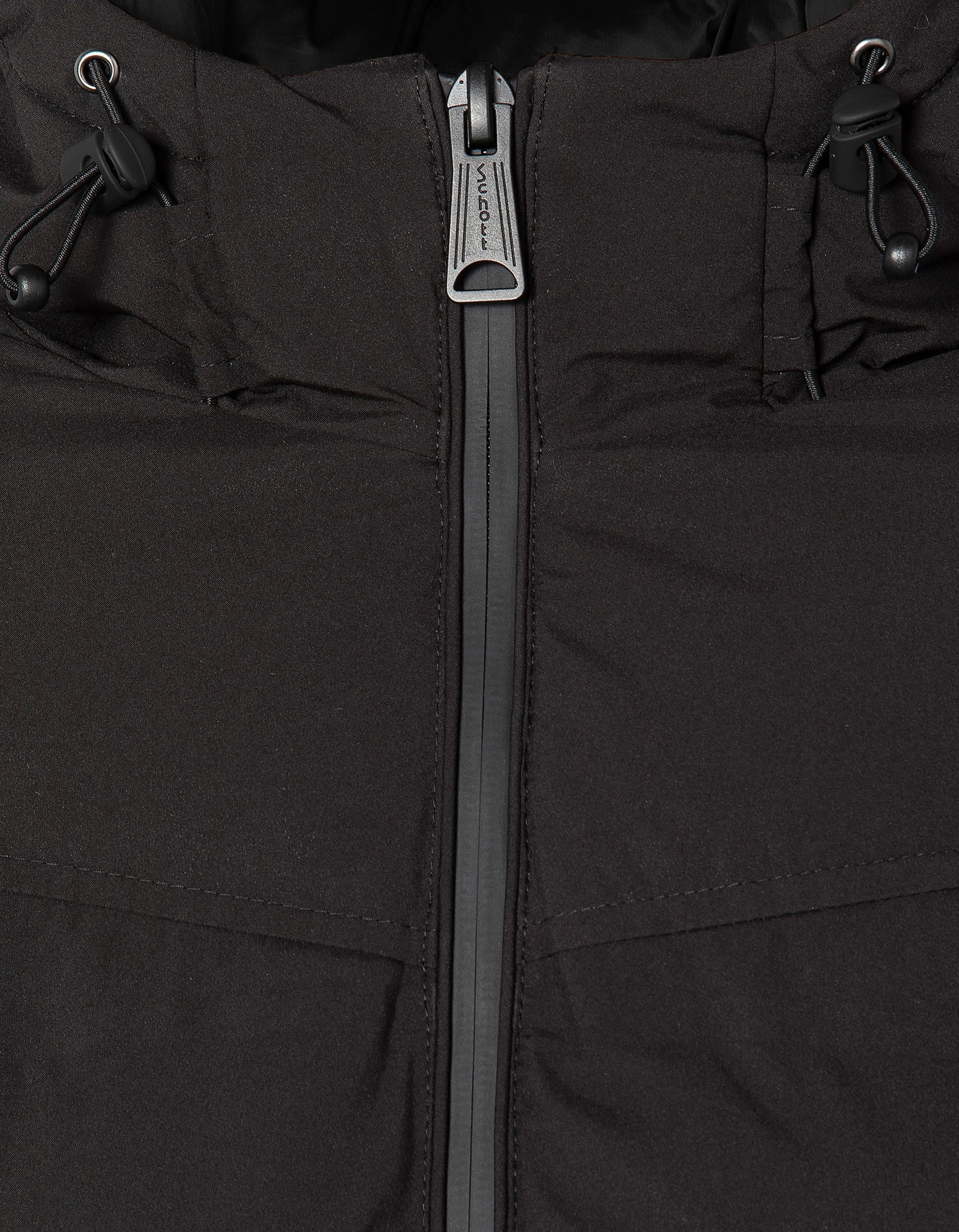 Doudoune noire à capuche sans couture, tissu mat