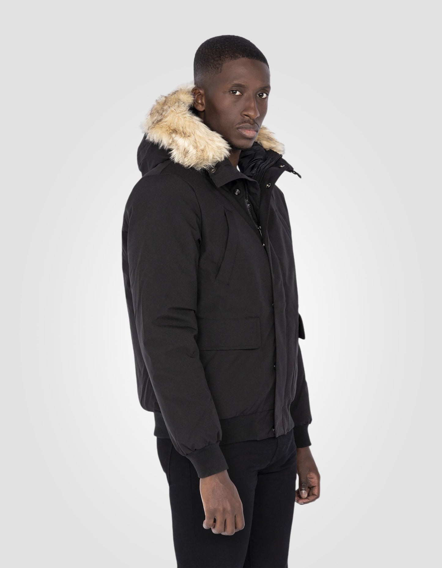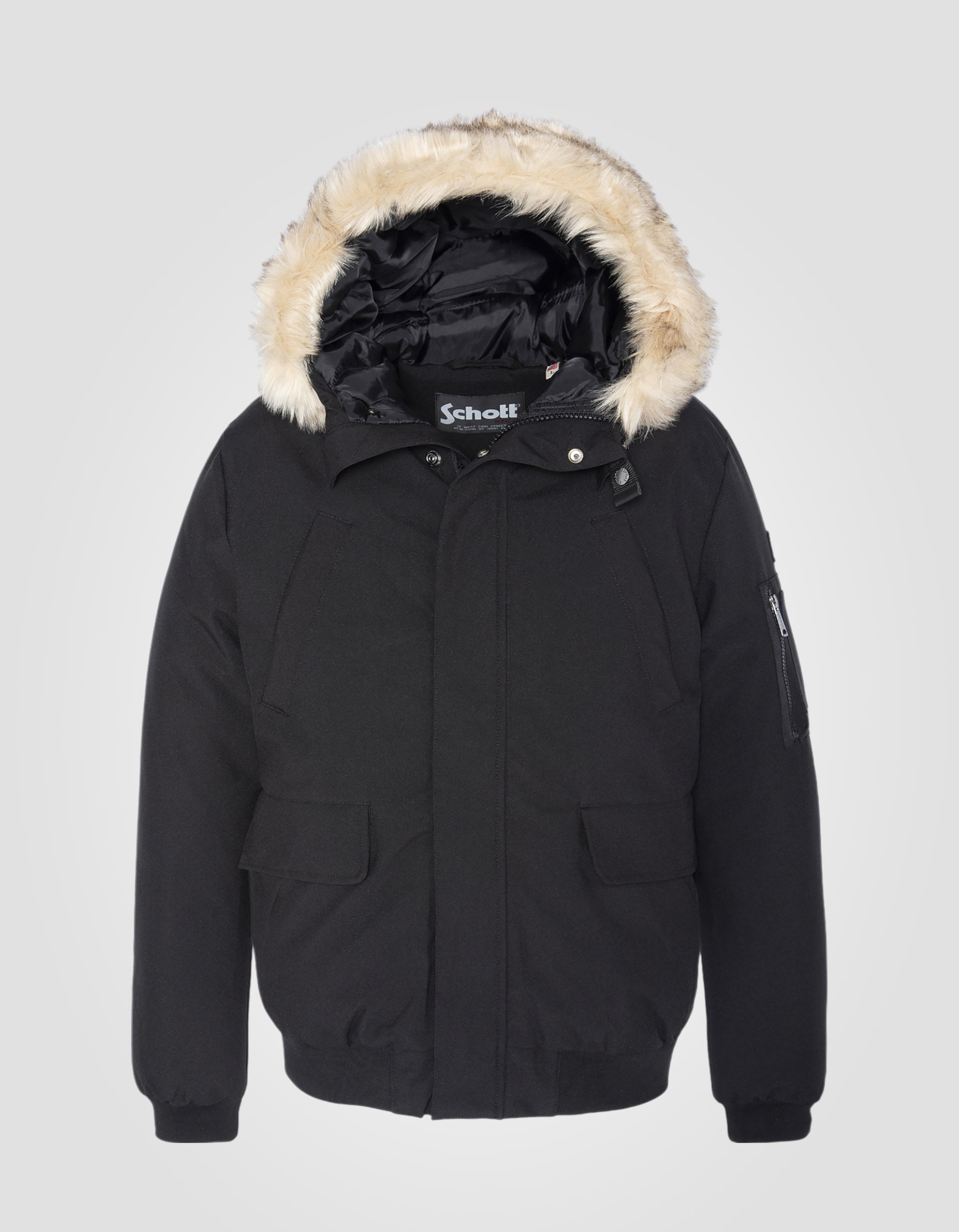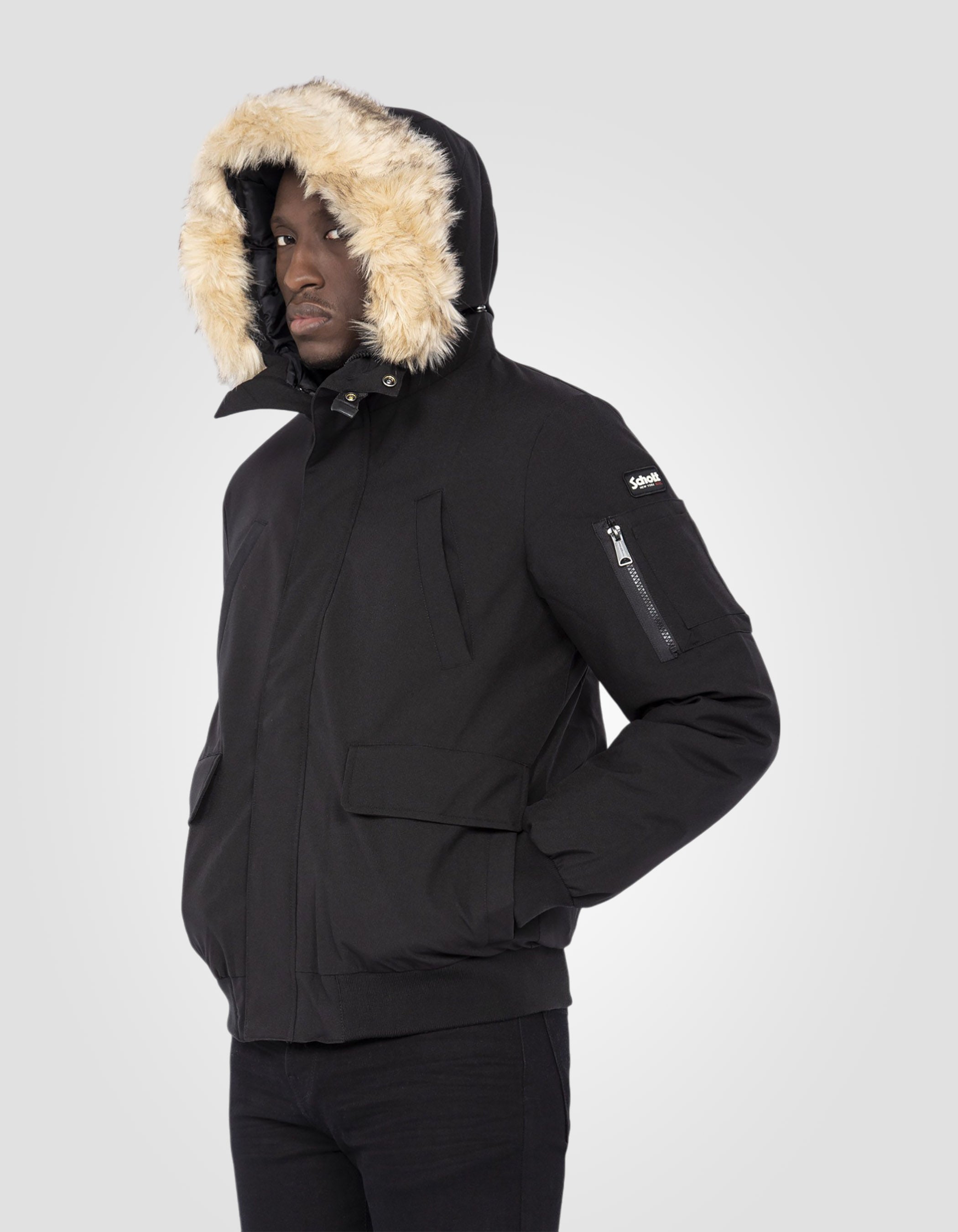 Parka courte noire à capuche avec fausse fourrure - NOIR