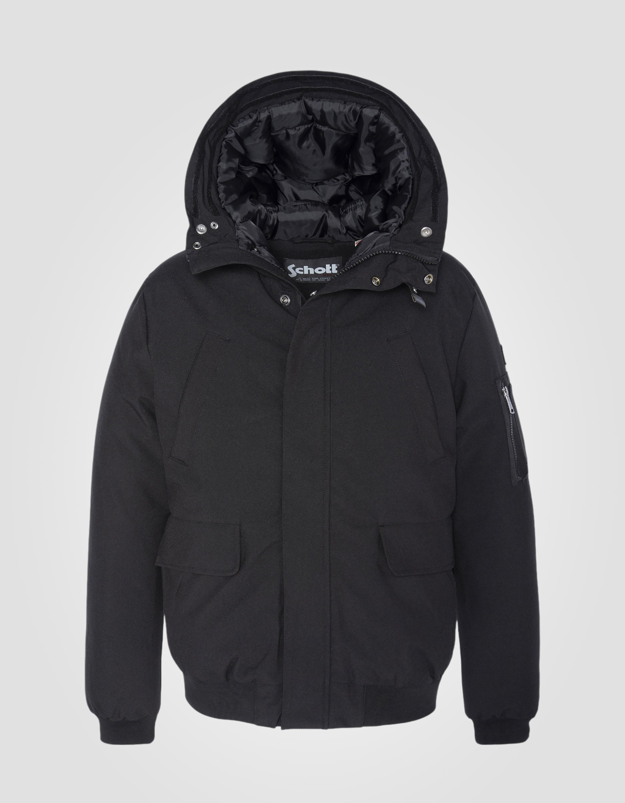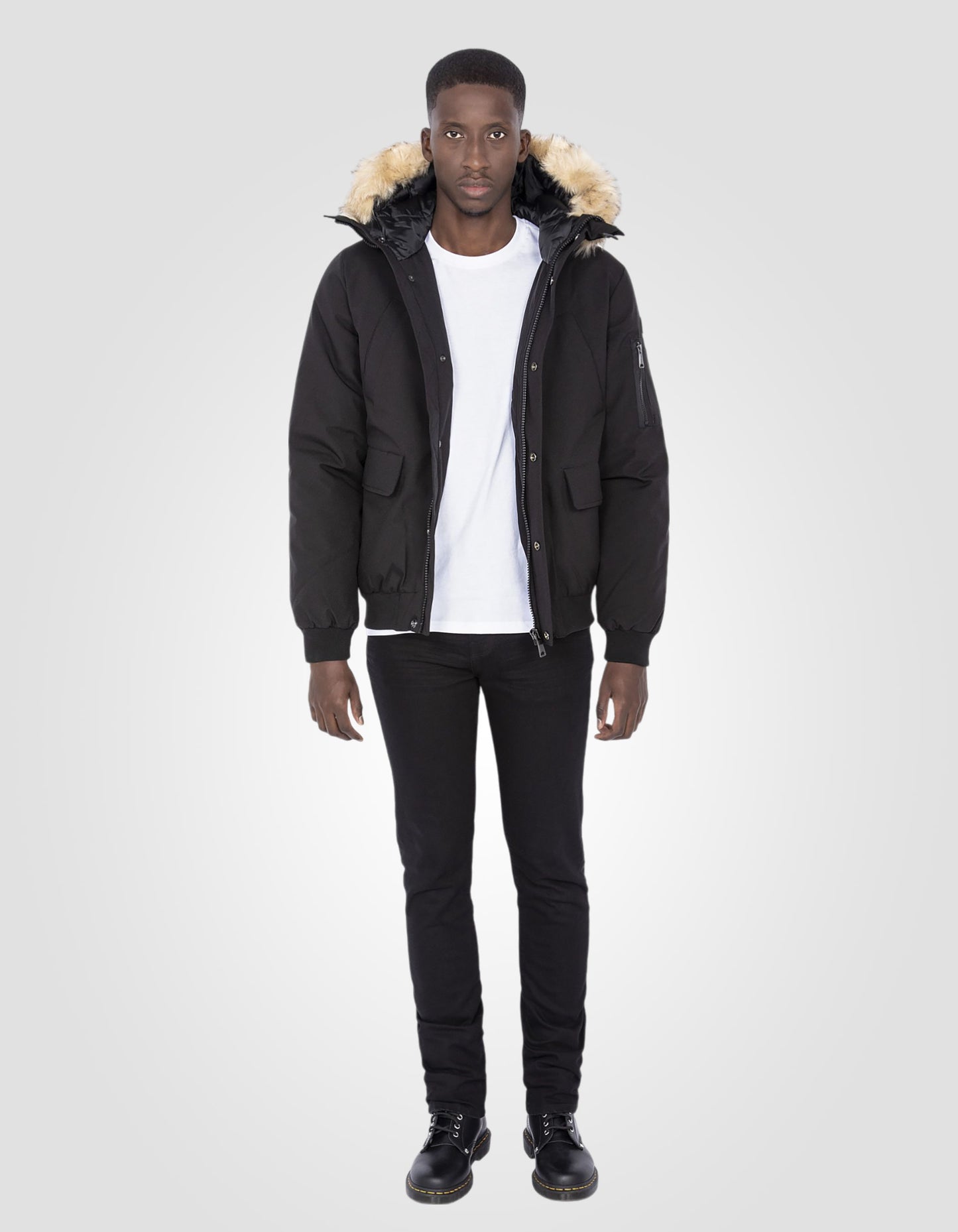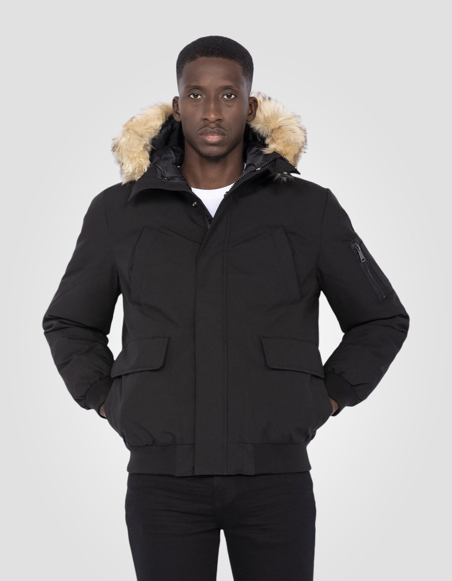Parka courte noire à capuche avec fausse fourrure - NOIR
