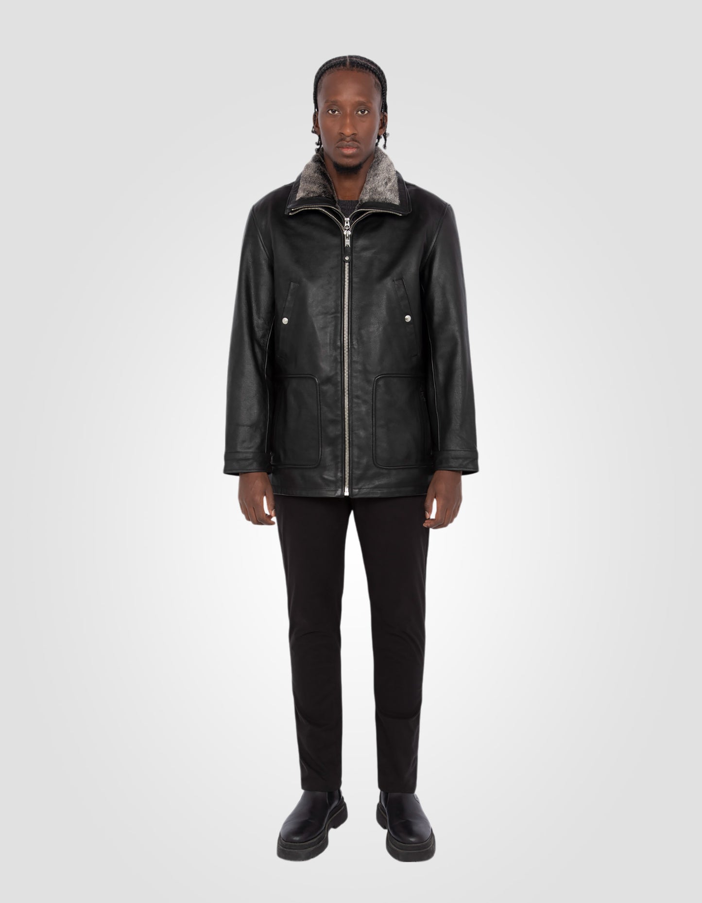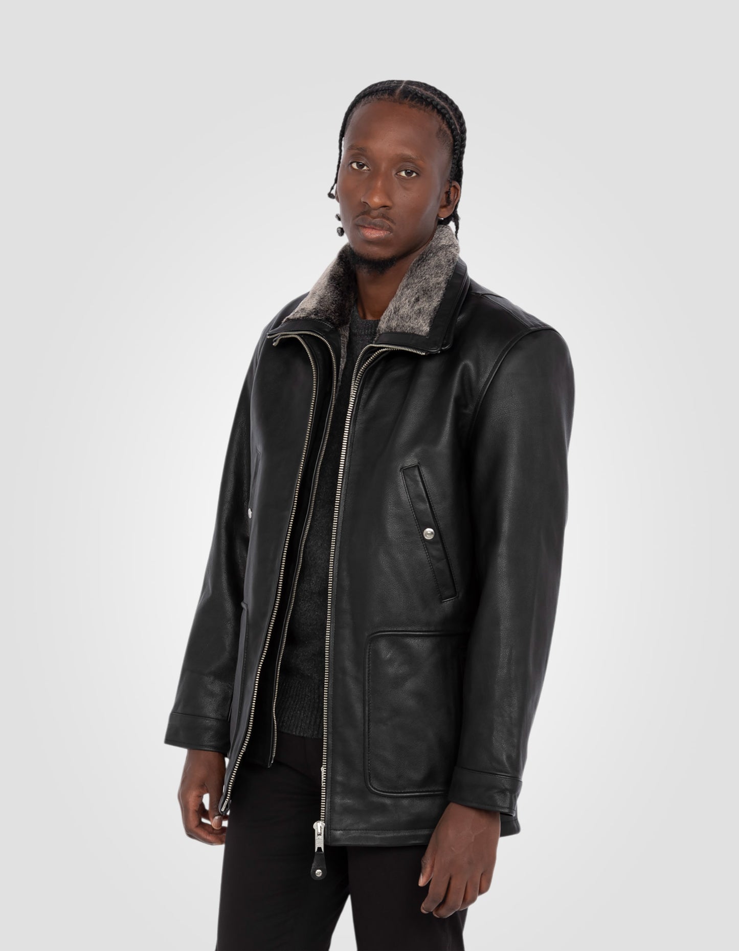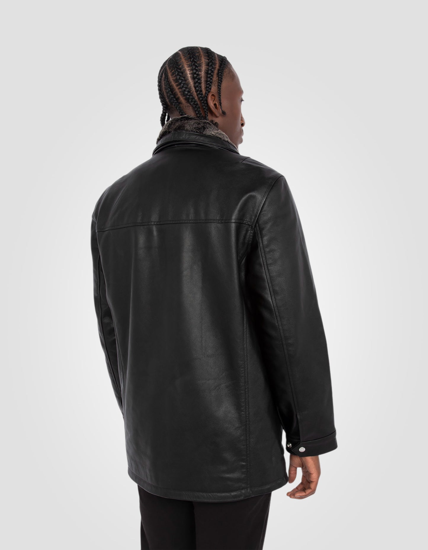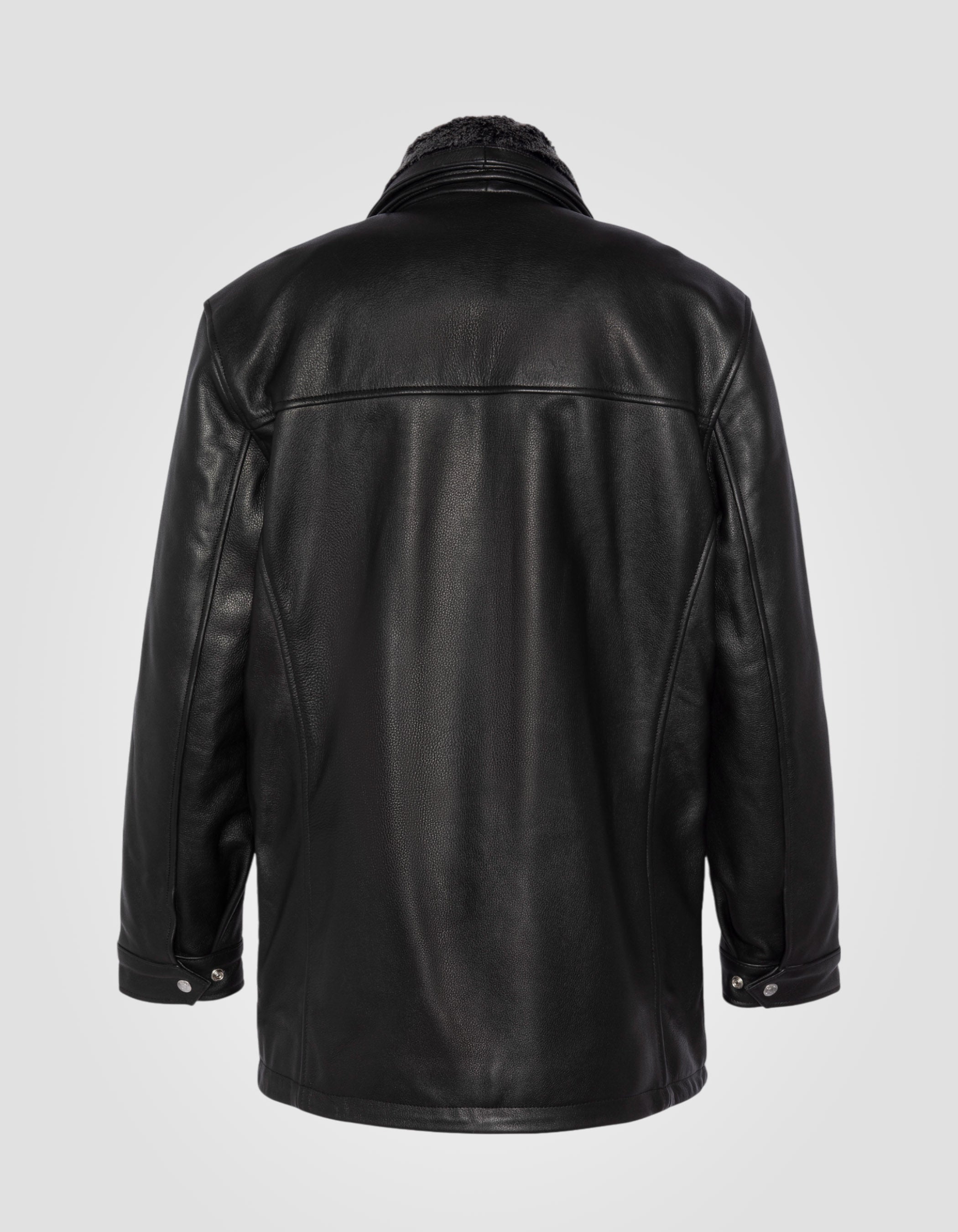 Blouson long casual noir, cuir de vachette - NOIR