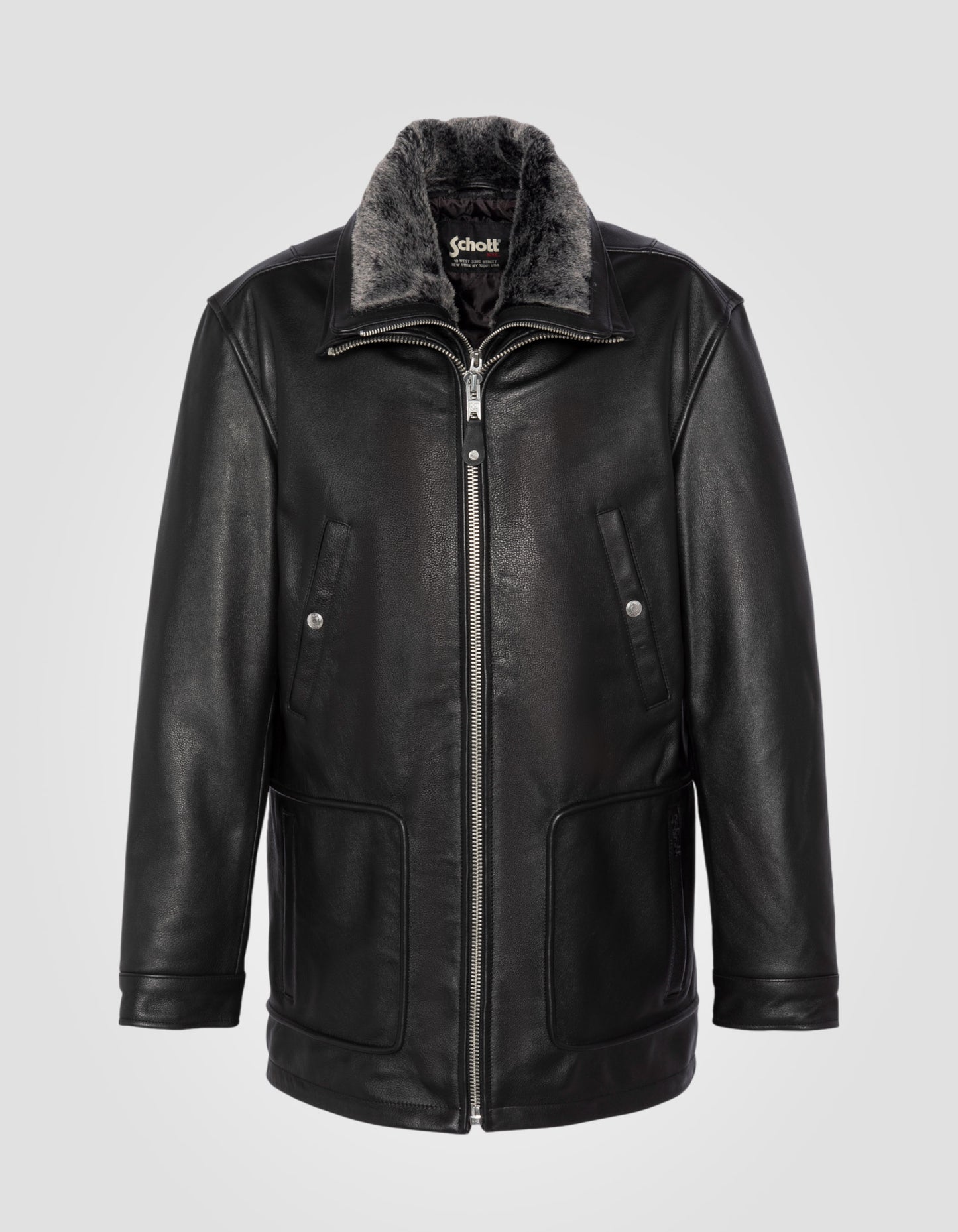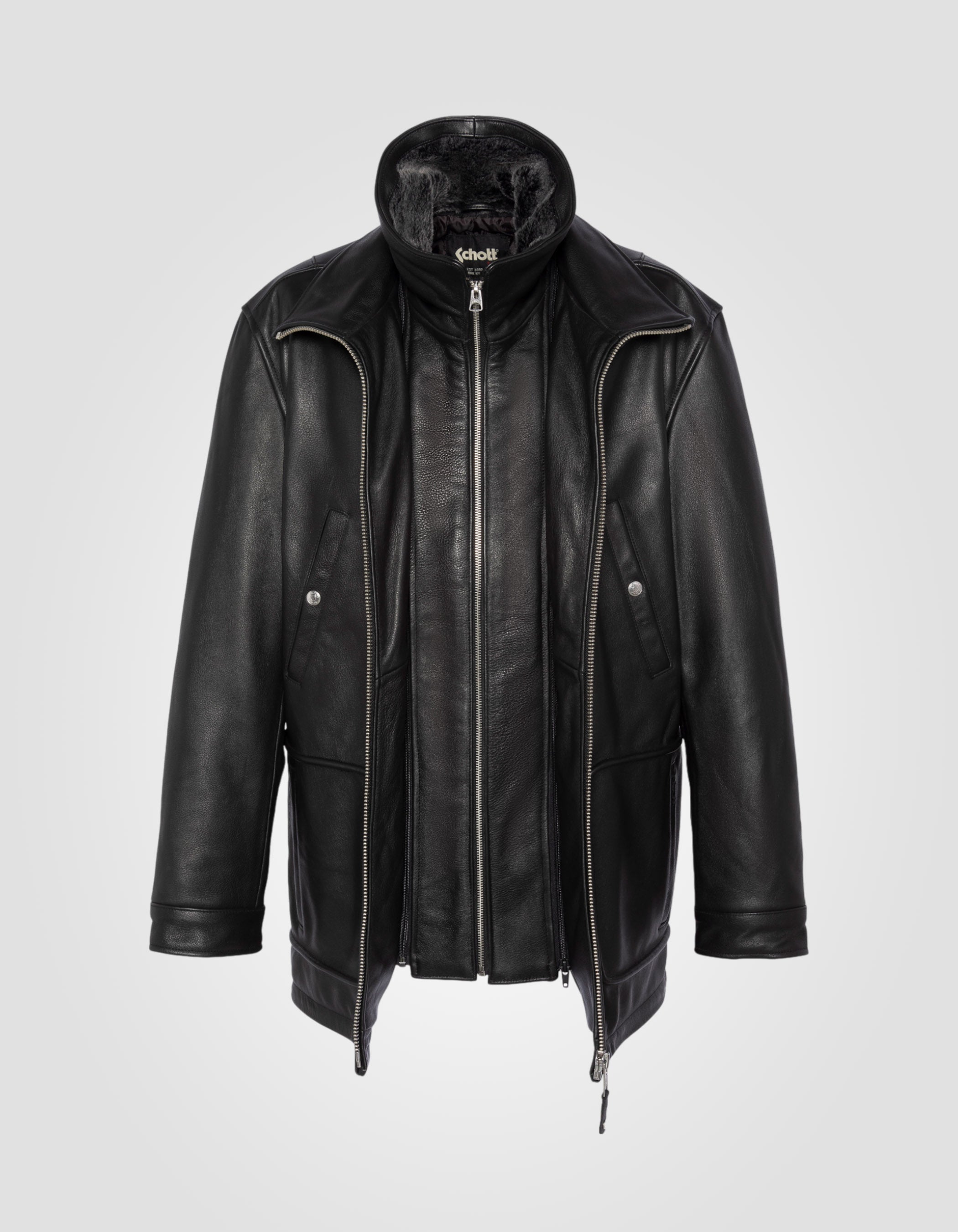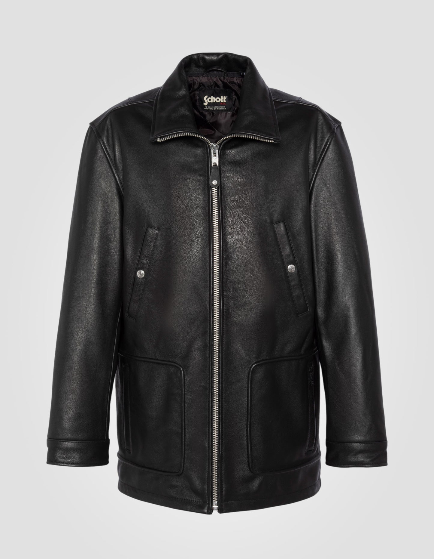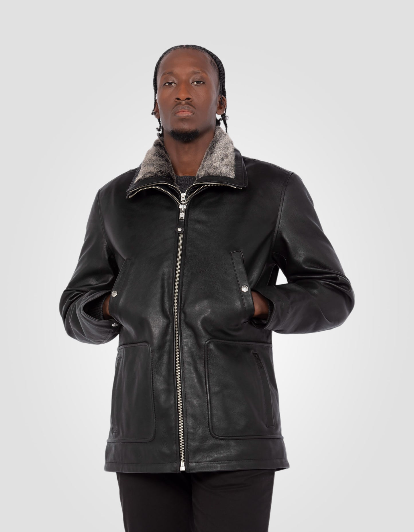 Blouson long casual noir, cuir de vachette - NOIR