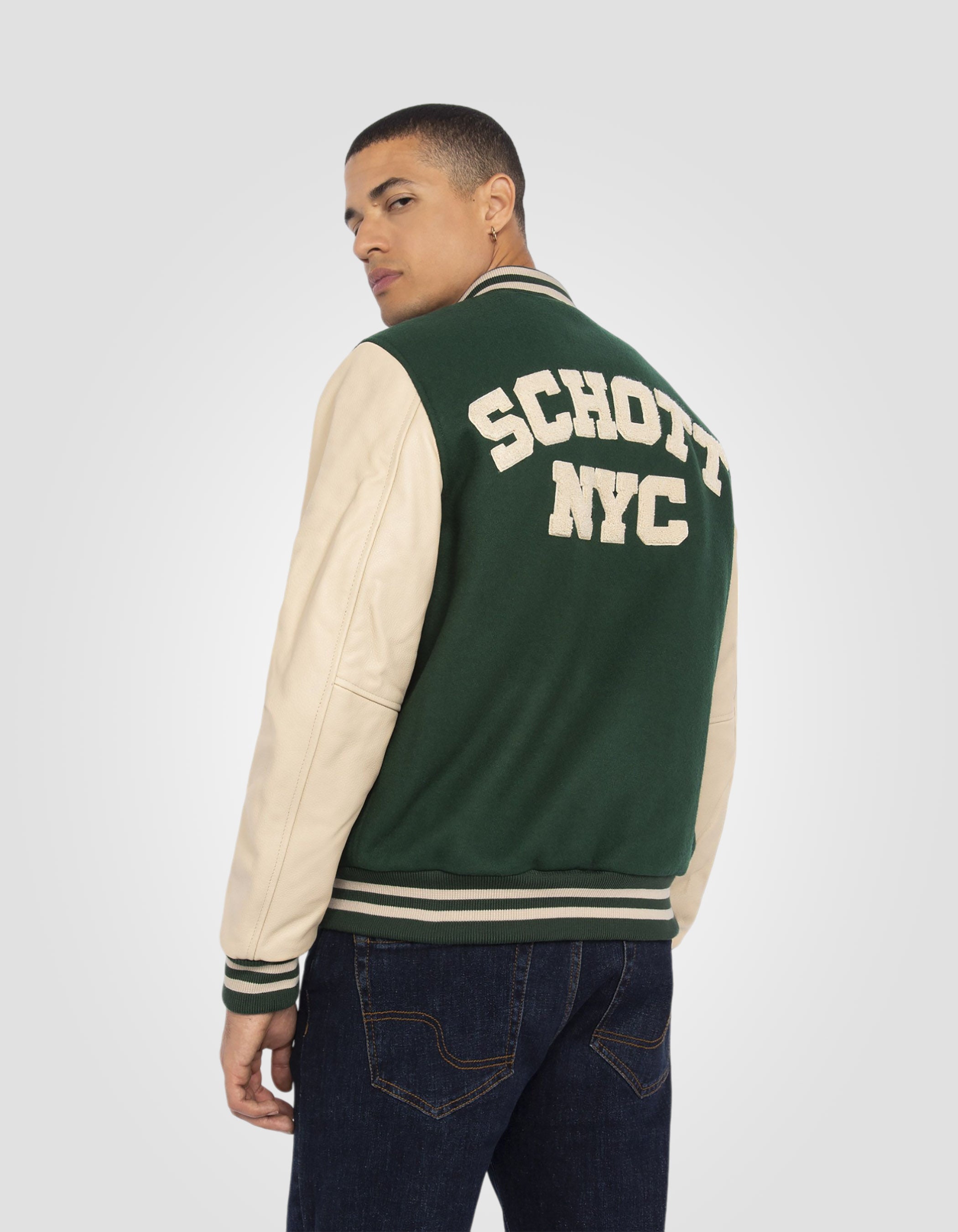 Indispensable du vestiaire Schott NYC®, optez pour ce teddy iconique qui reprend les codes du blouson varsity américain.