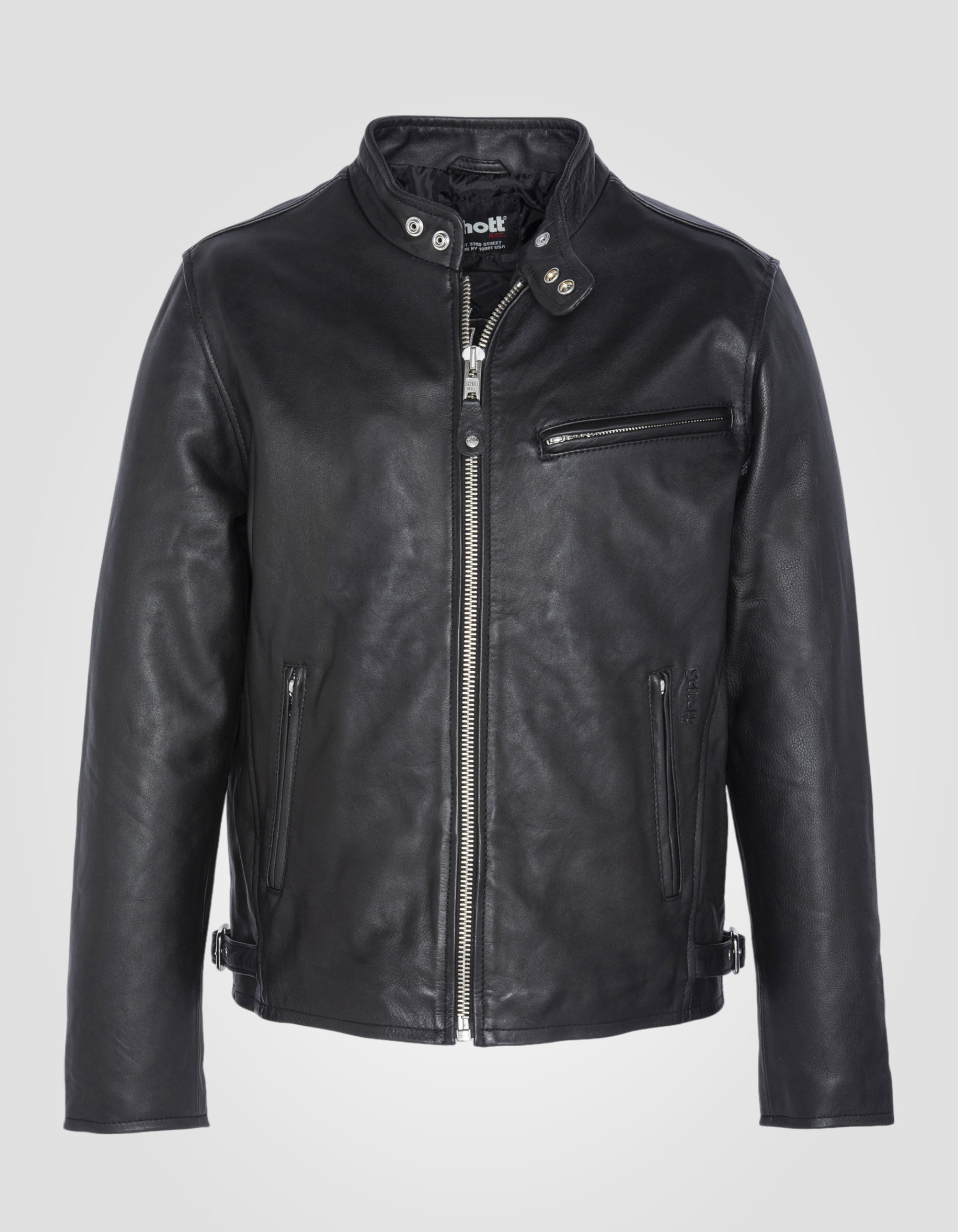Blouson motard noir, cuir de vachette - NOIR