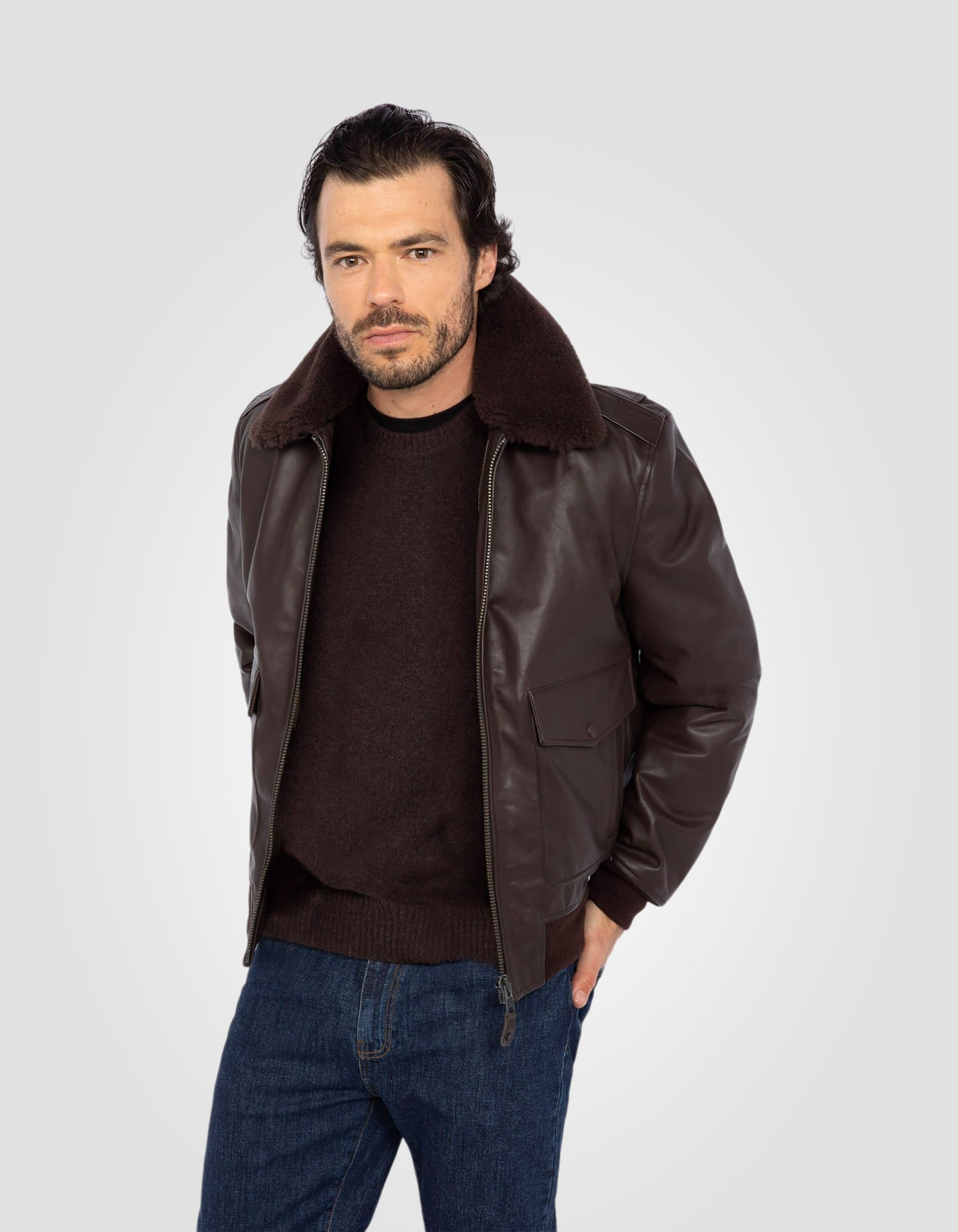 Blouson pilote type A-2 marron, cuir de vachette - MARRON