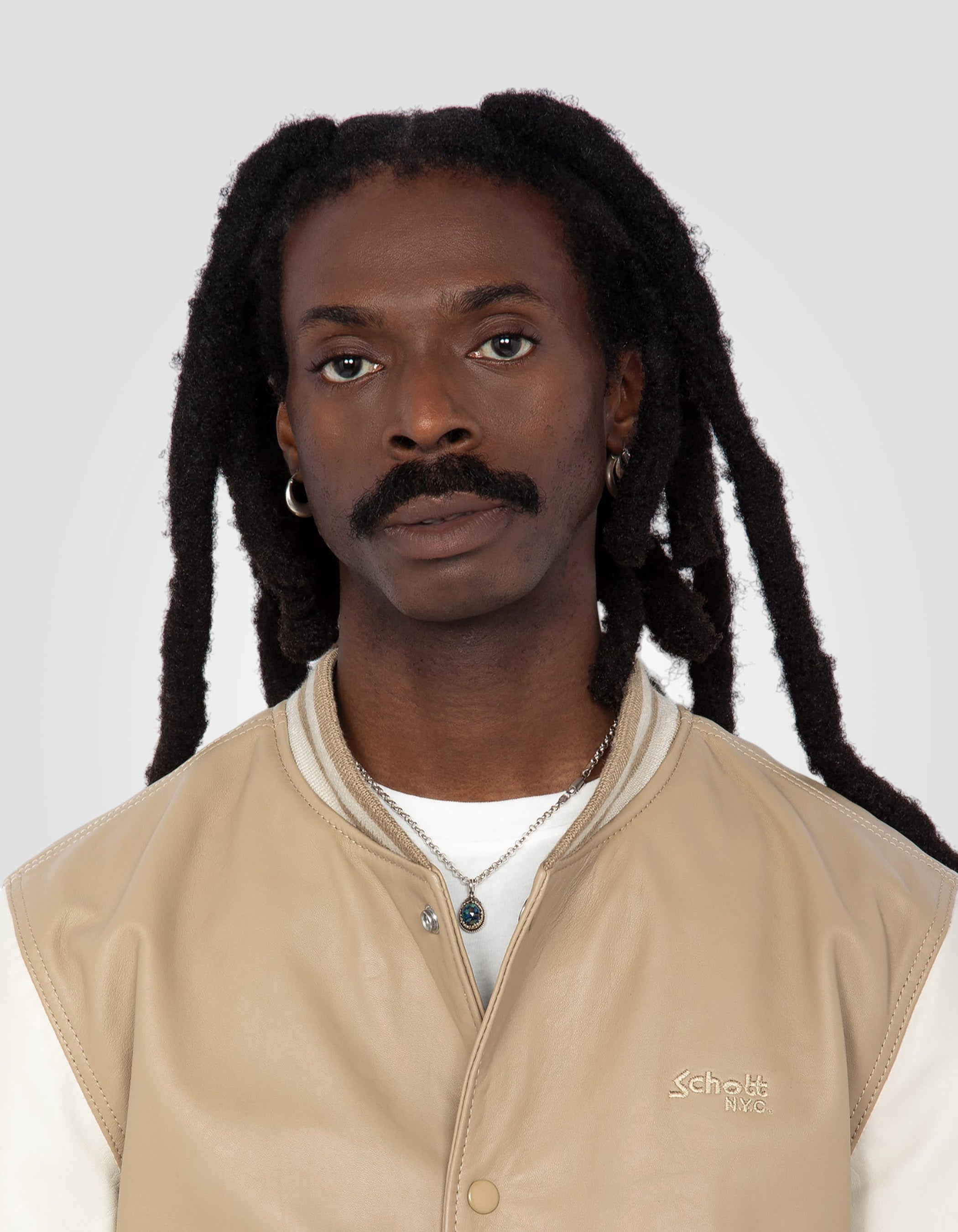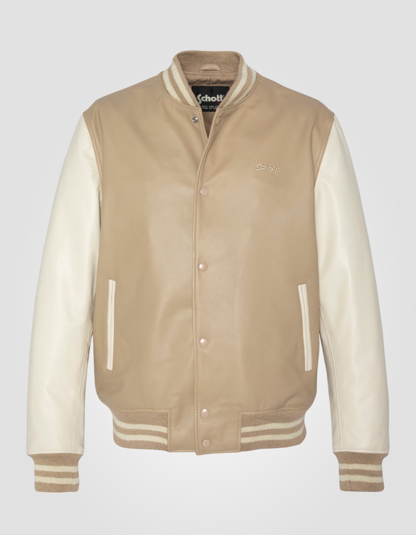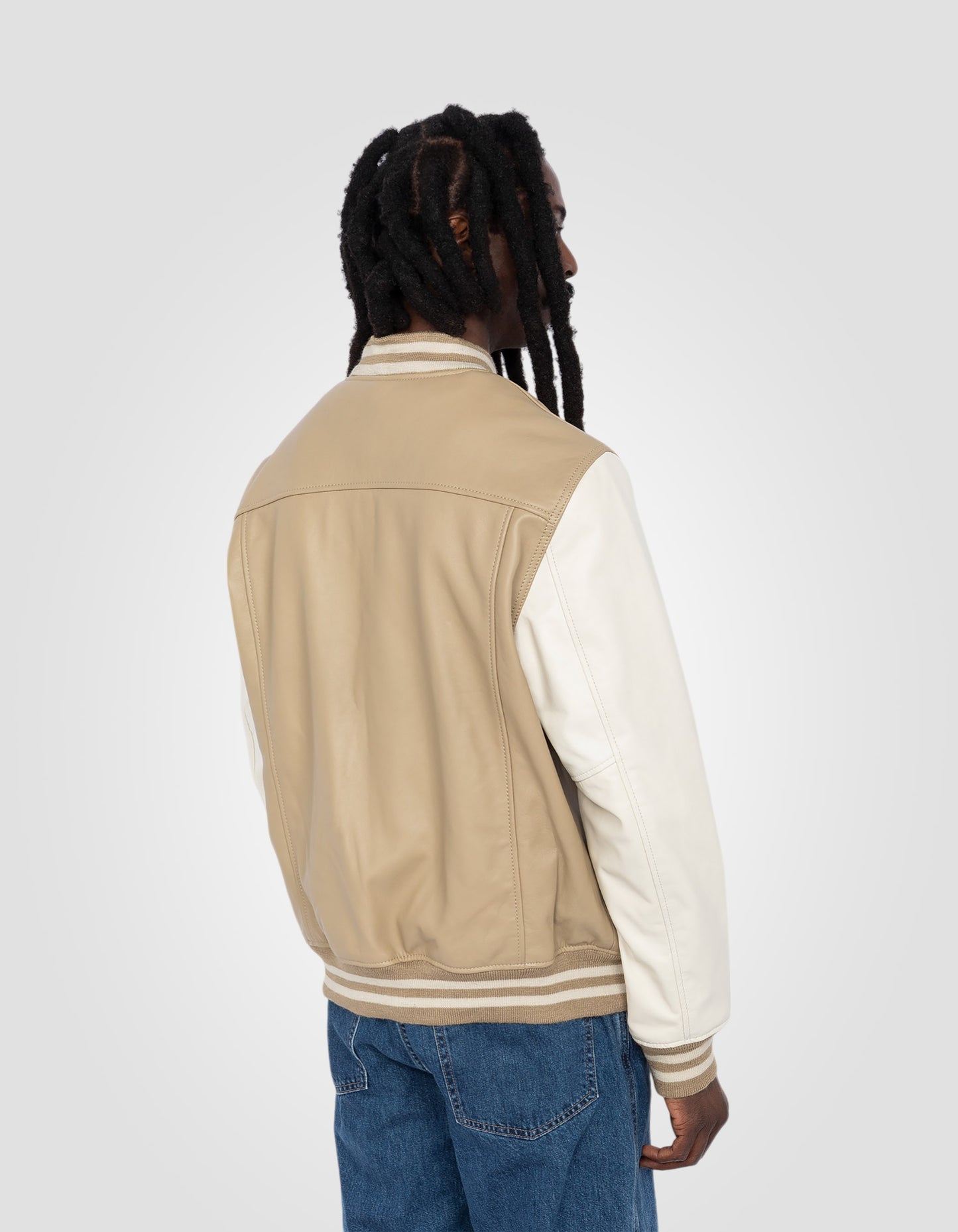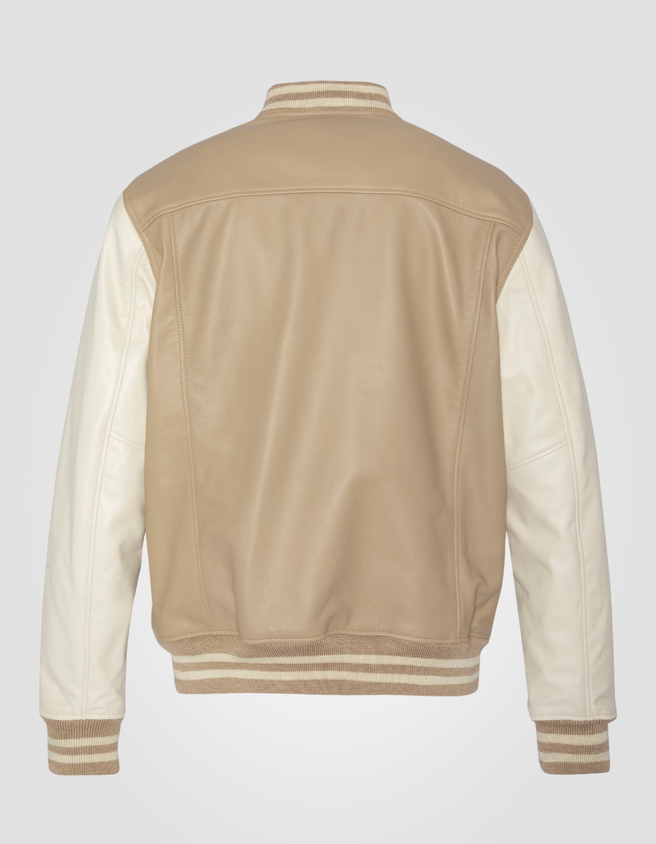 Blouson teddy bicolore beige et blanc, cuir d'agneau
