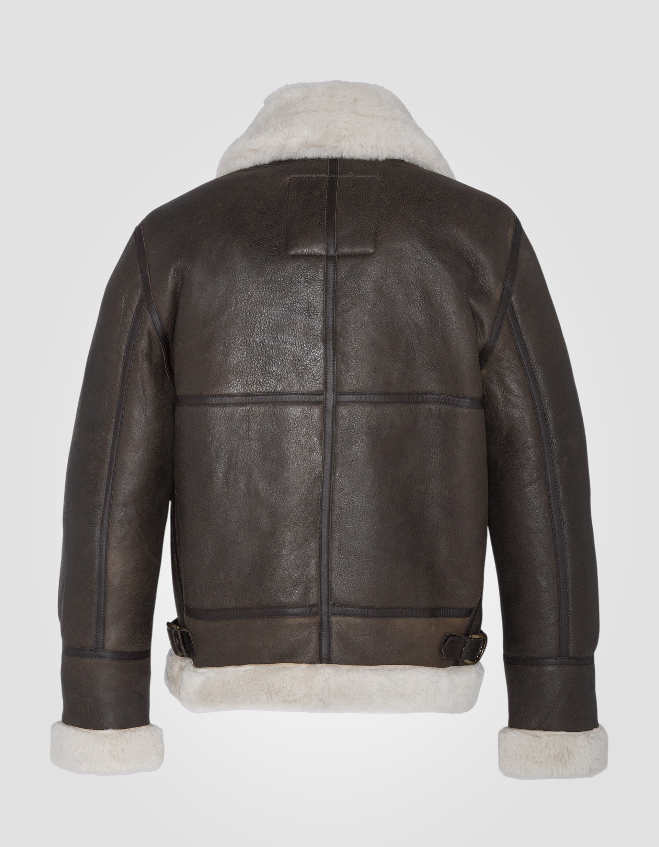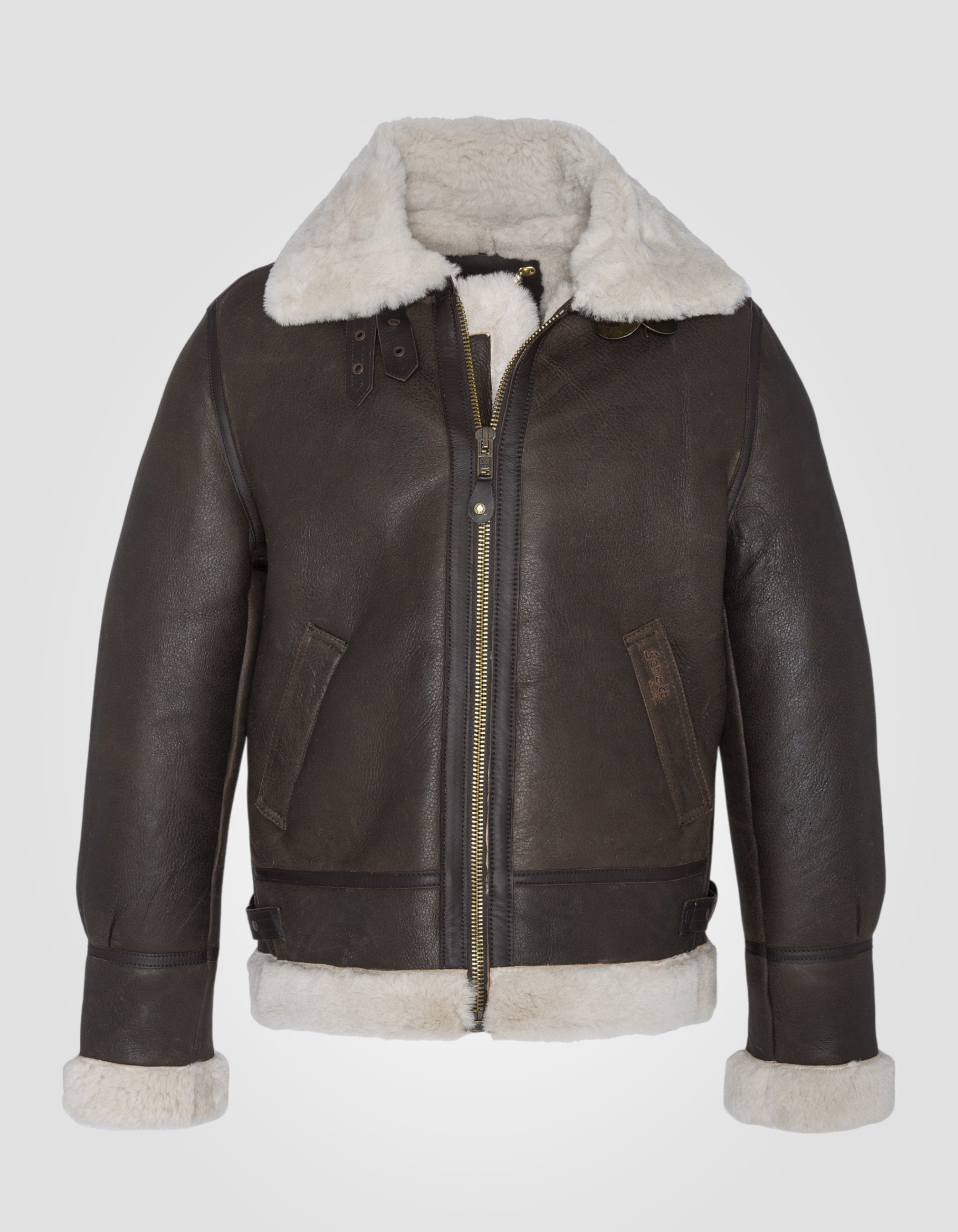 Ce bombardier B-3 fait directement référence à l'armée américaine. Il est conçu en peau lainée et doté d'un col généreux, qui permet une isolation hautement efficace. Son cuir à l'aspect vieilli lui donne une dimension vintage.