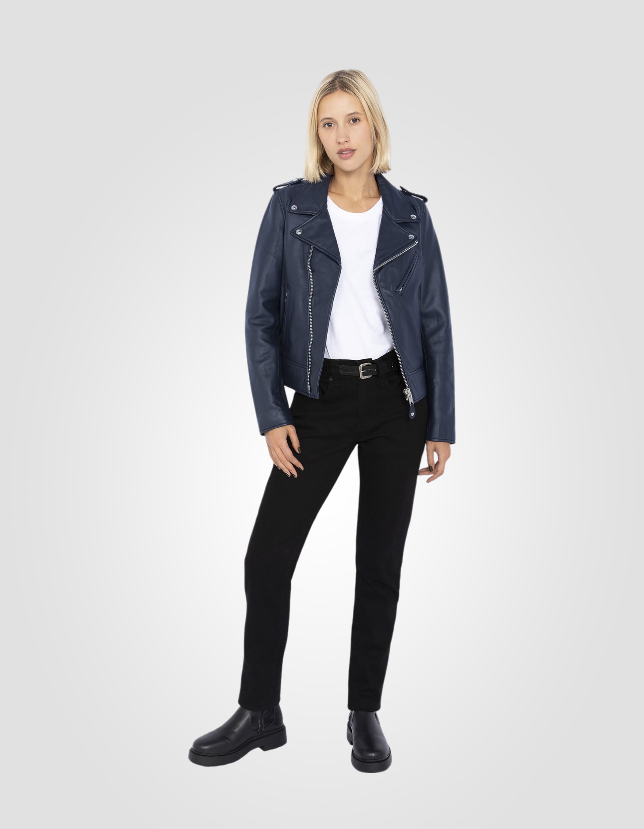 Blouson Perfecto® bleu marine, cuir d'agneau - MARINE