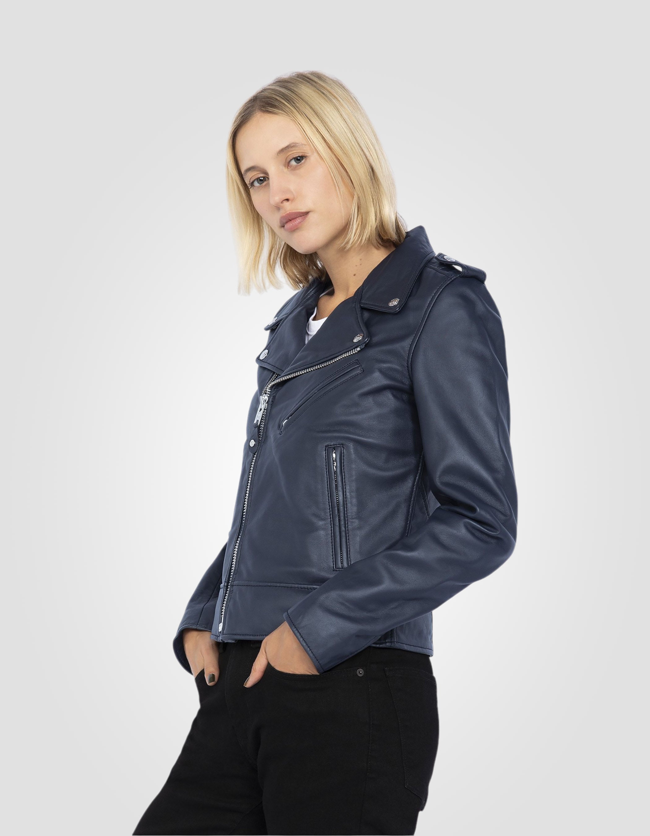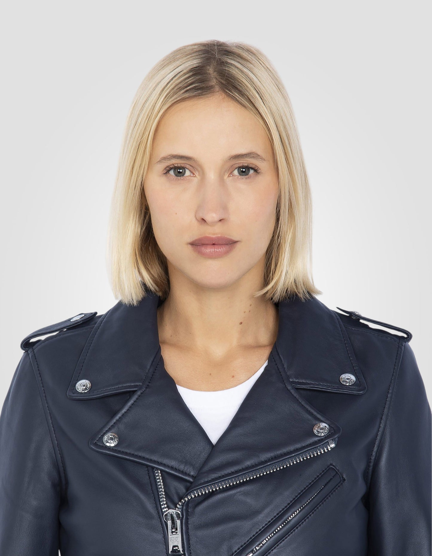 Blouson Perfecto® bleu marine, cuir d'agneau