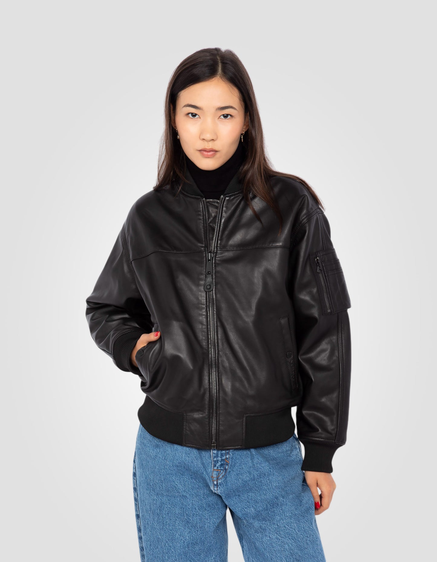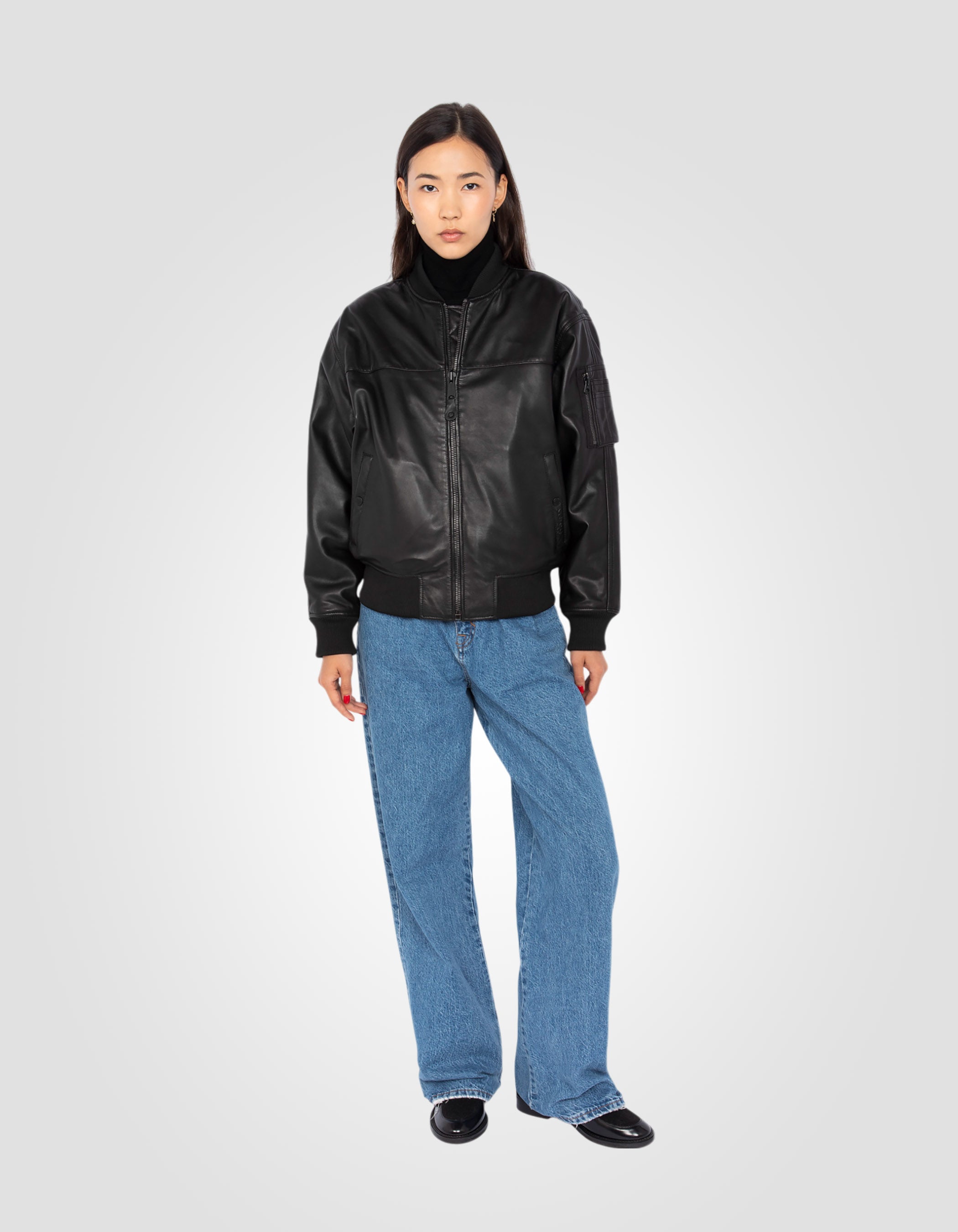 Blouson bomber, cuir d'agneau