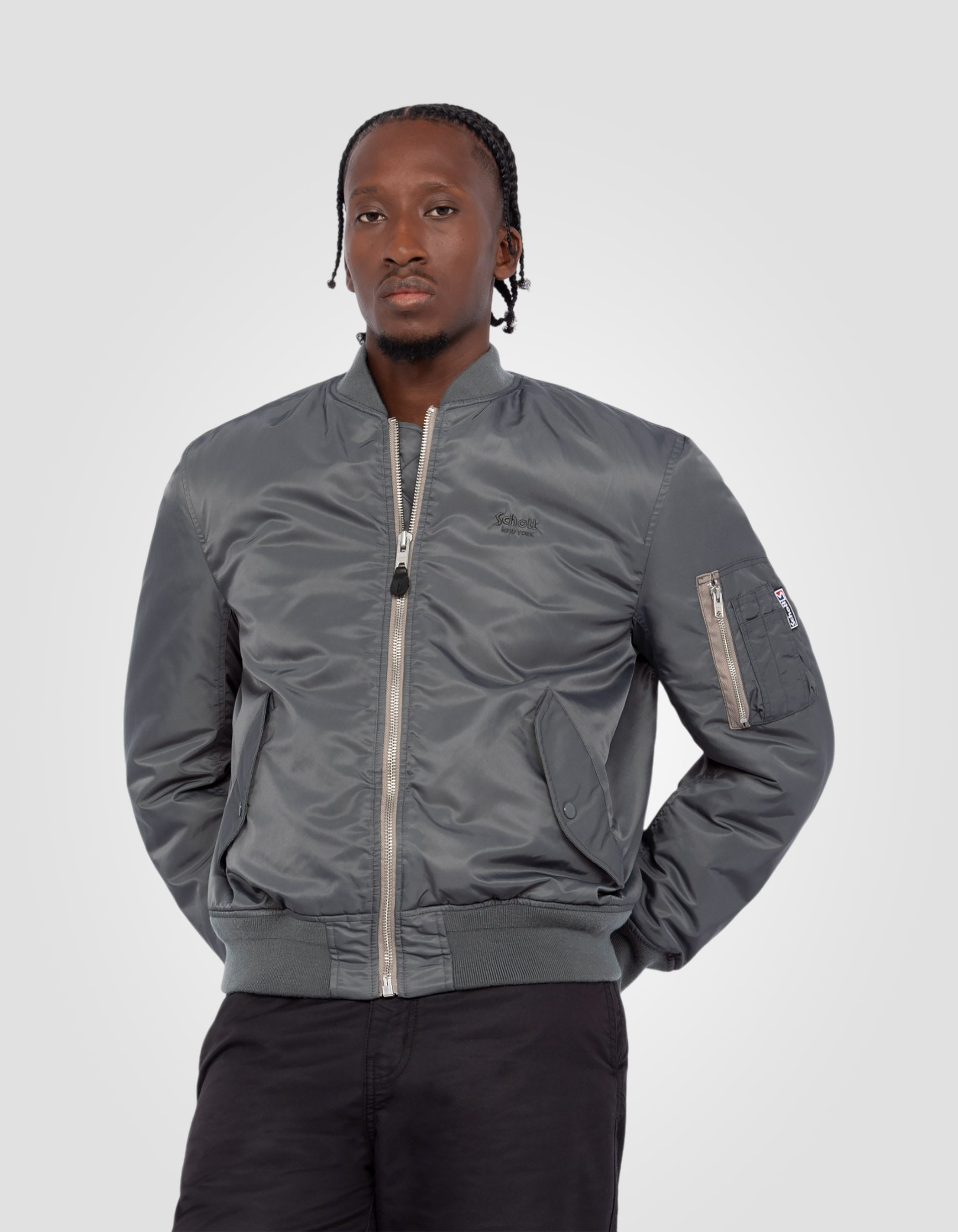 - 2 poches basses à rabat pressionné & 1 poche zippée manche gauche