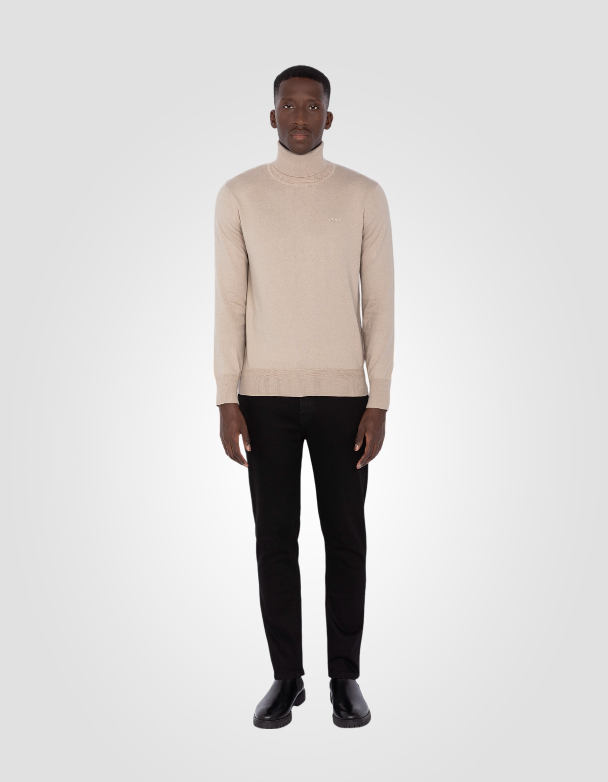Pull col roulé beige clair en maille fine - BEIGE CLAIR