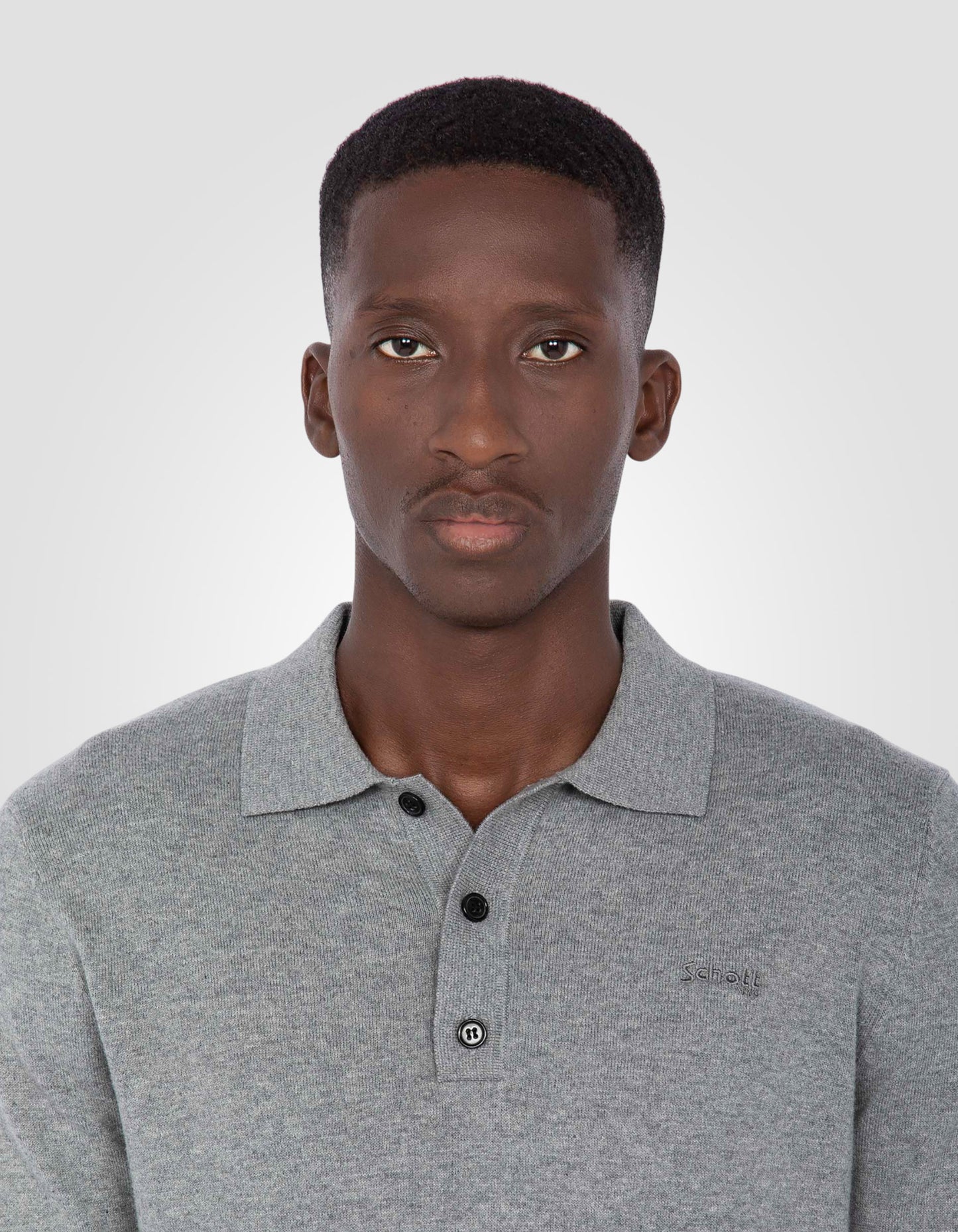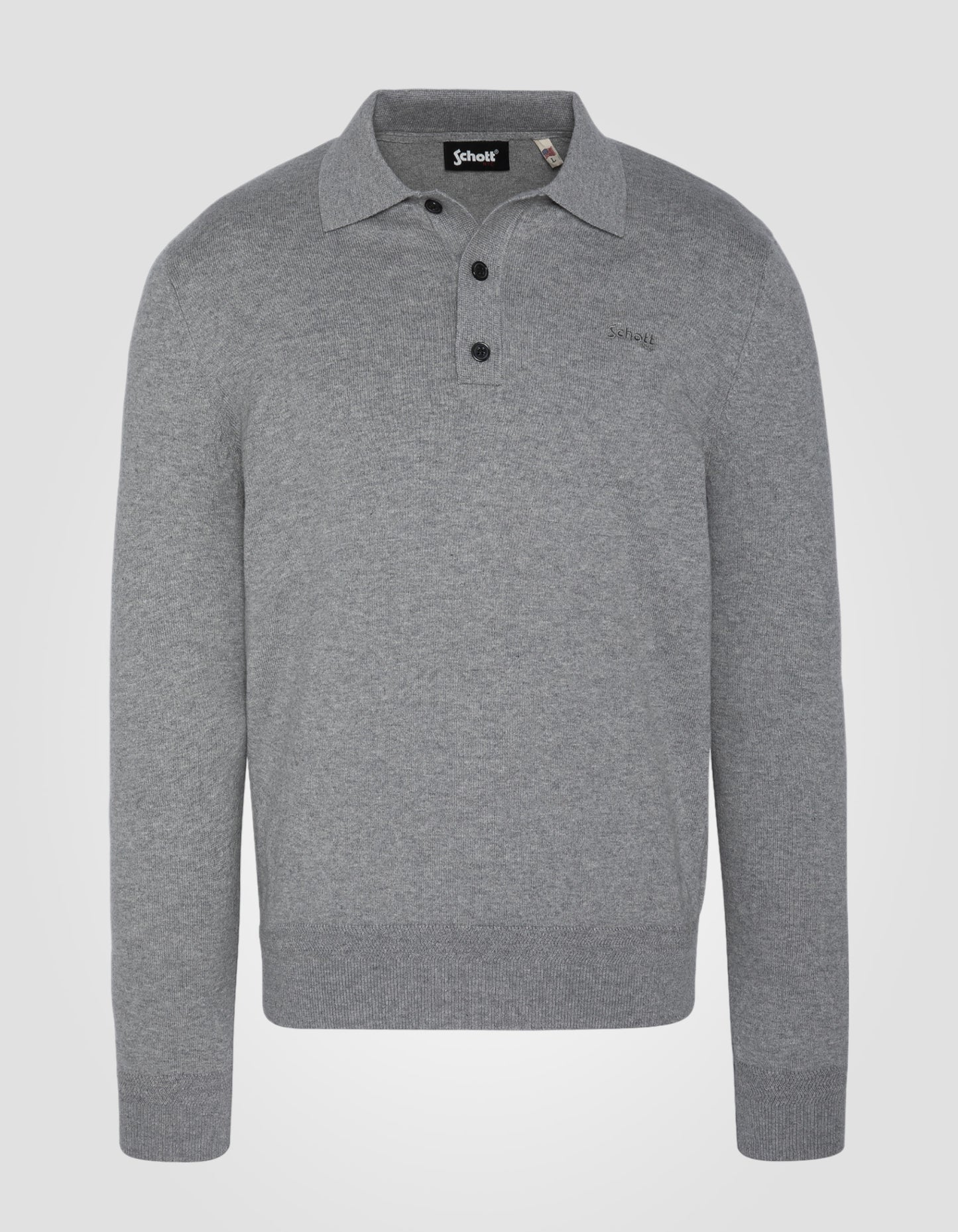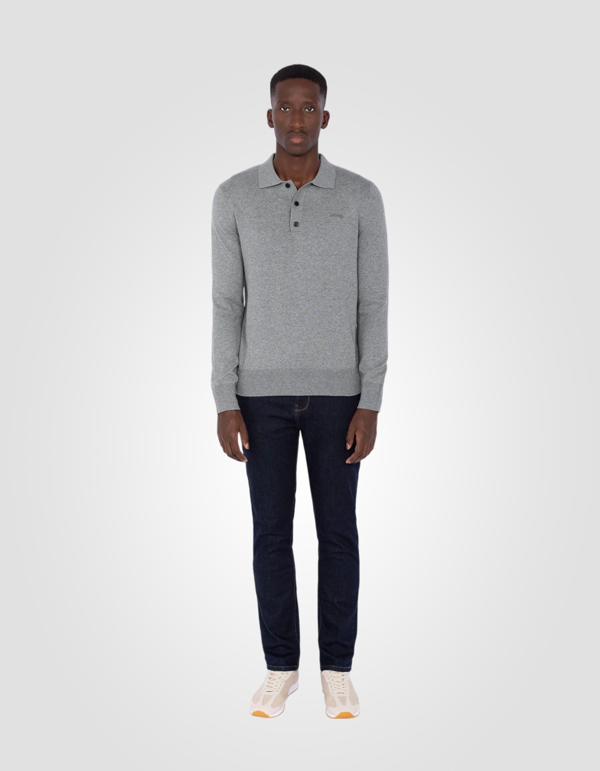Pull col polo gris chiné en maille fine - GRIS CHINÉ