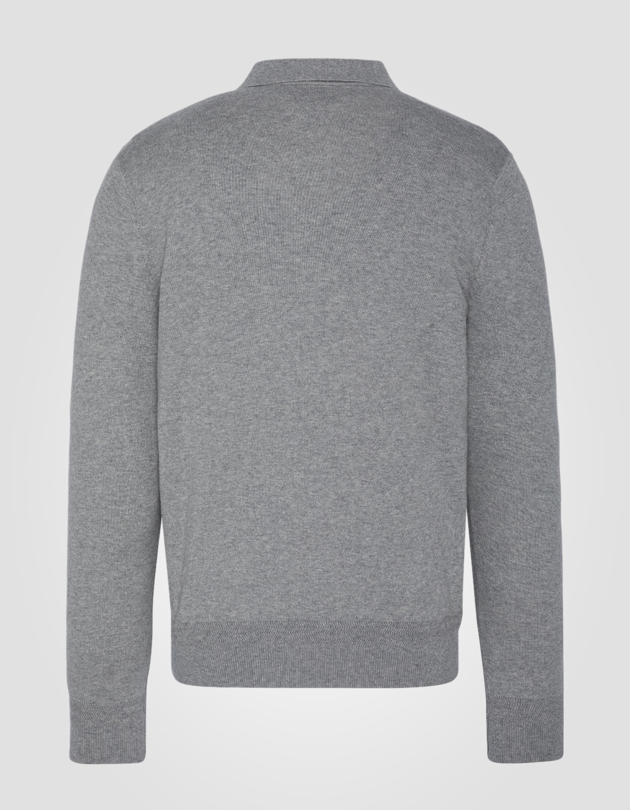 Pull col polo gris chiné en maille fine - GRIS CHINÉ