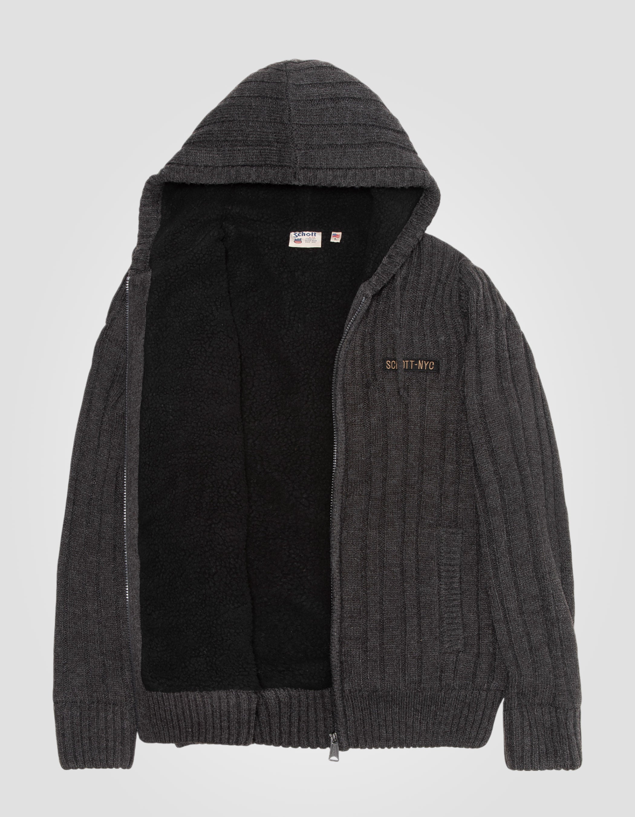 Gilet à capuche anthracite chiné doublé sherpa