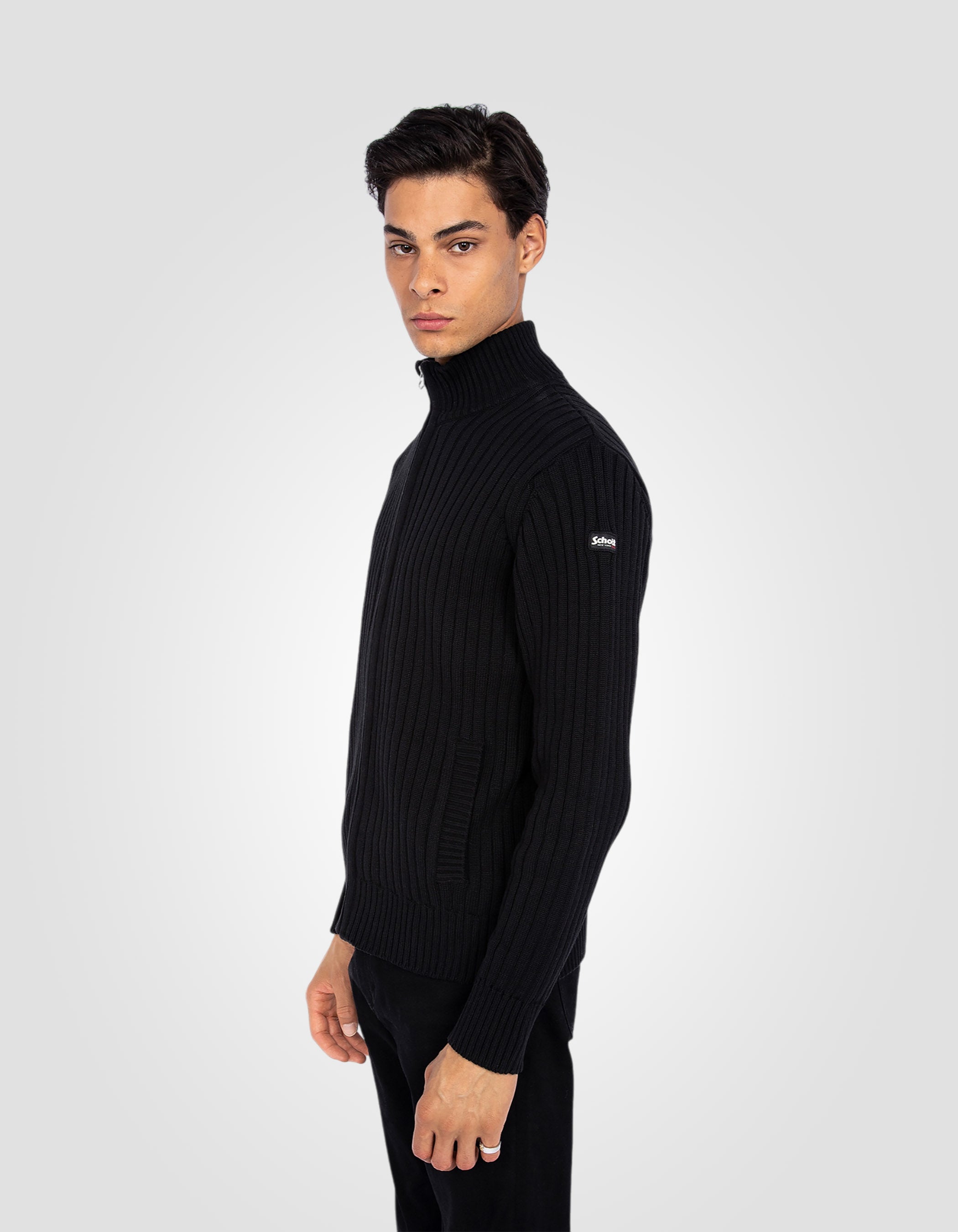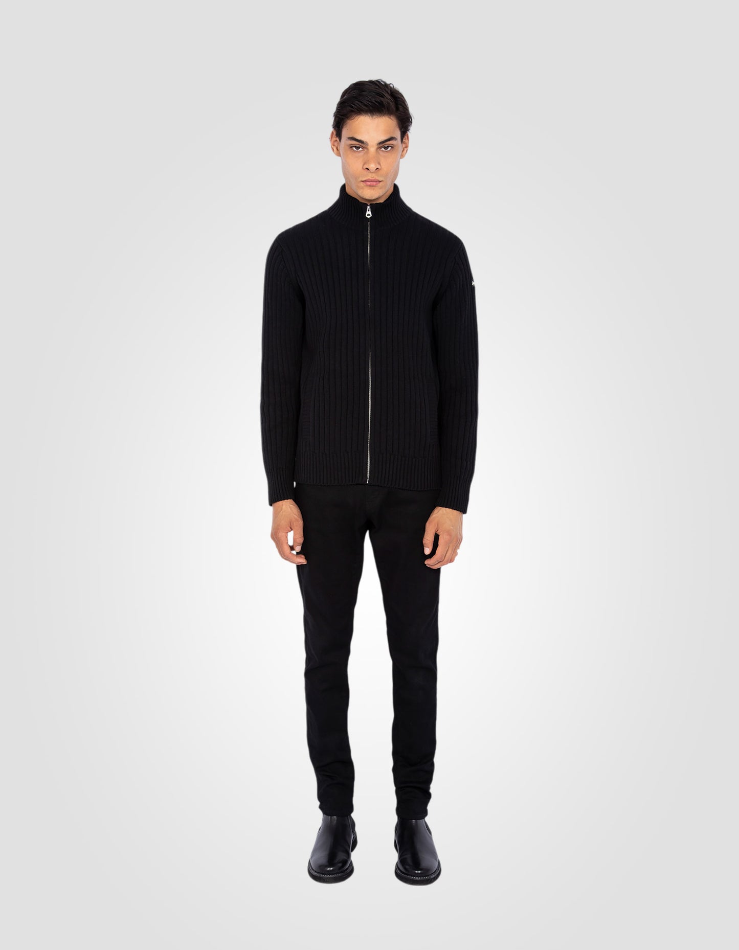 Ce cardigan zippé en mailles côtelées est fabriqué à partir de fils recyclés.