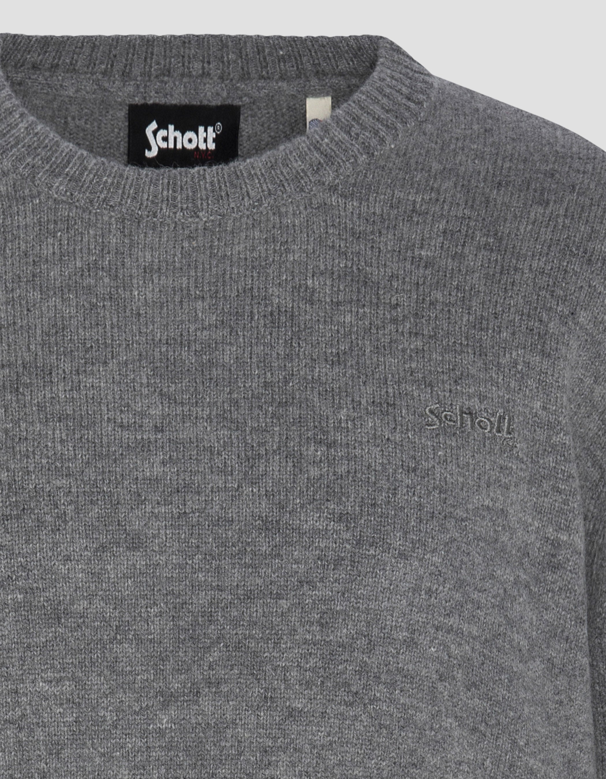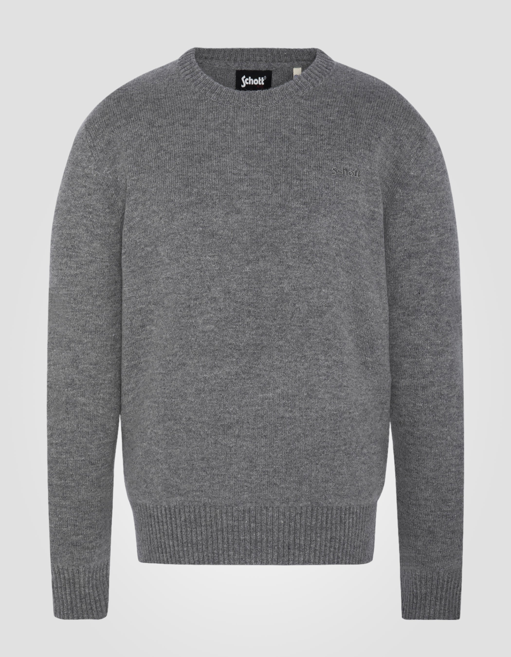 Pull col rond gris chiné en lambswool - GRIS CHINÉ