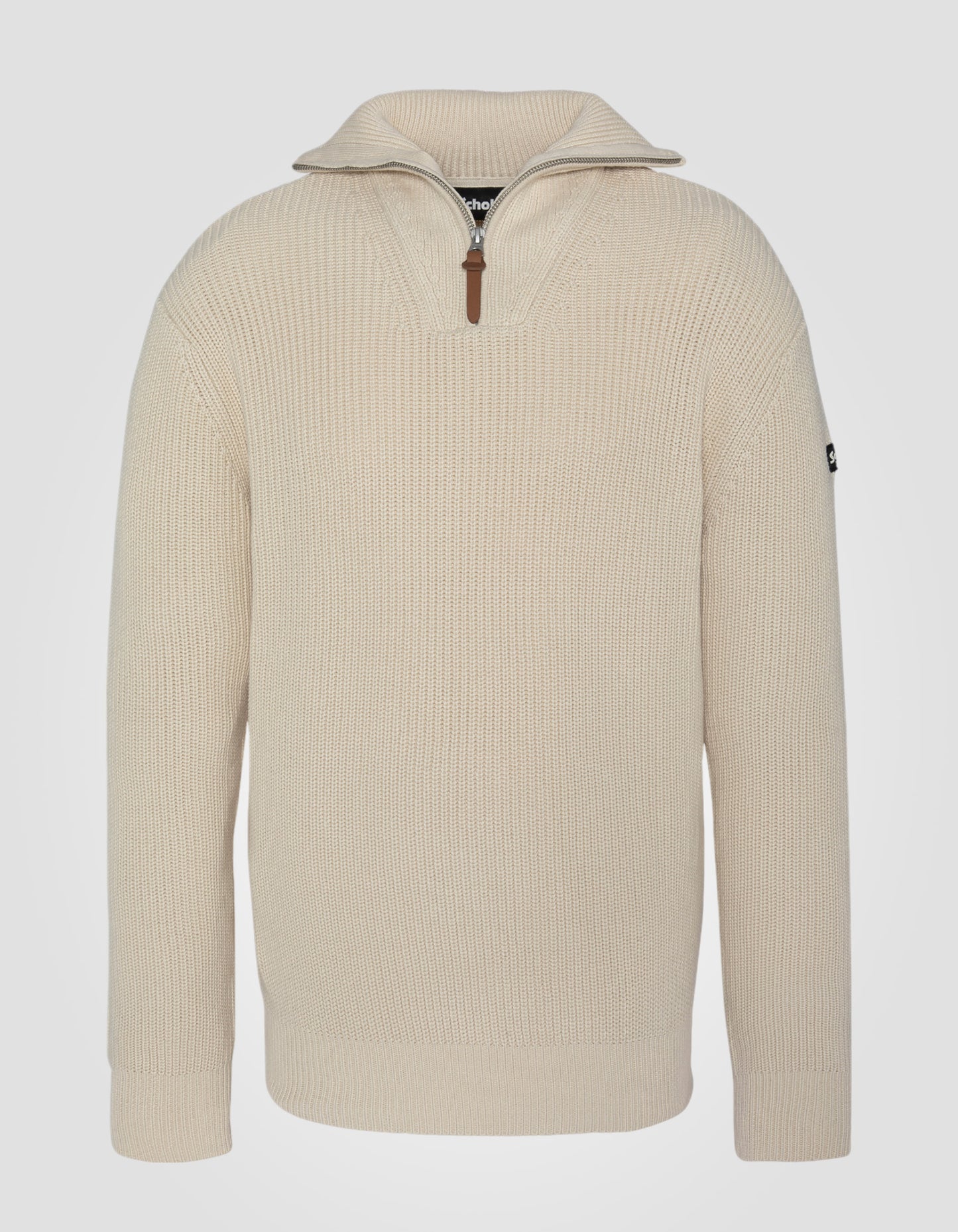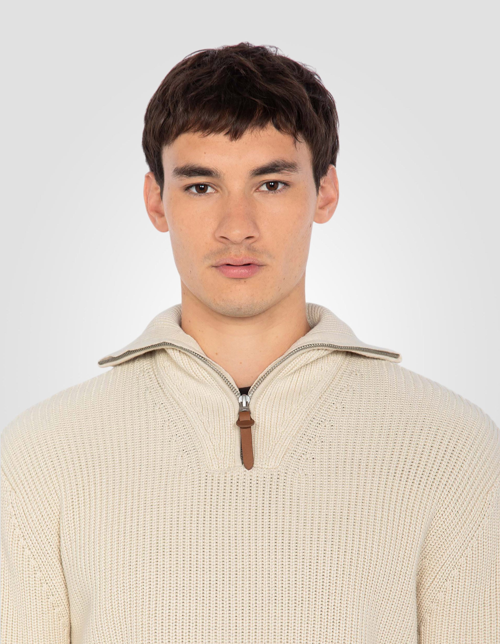 Pull camionneur blanc en maille côtelée - BLANC CASSÉ