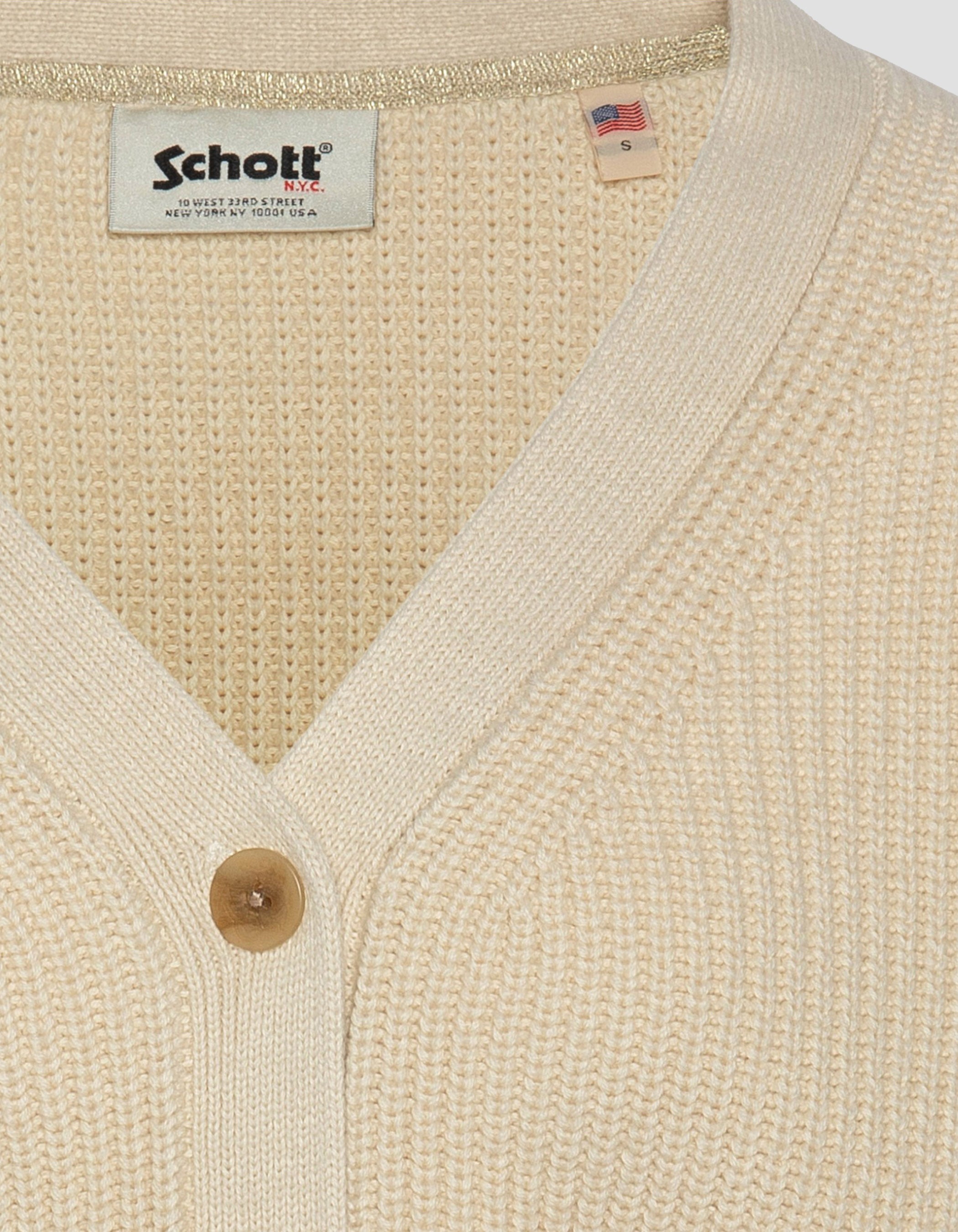 Cardigan court blanc en maille côtelée - BLANC CASSÉ